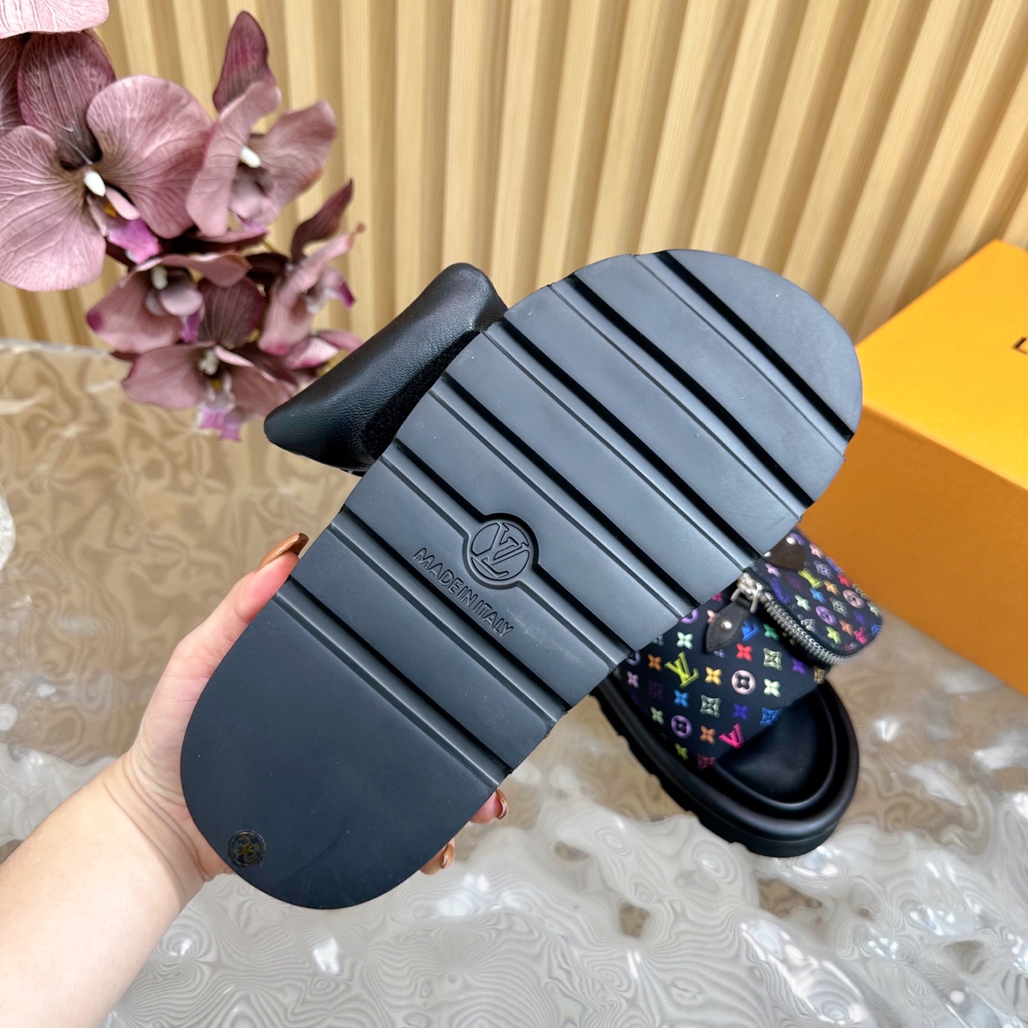 这款鞋子是AAAAA 1:1 质量 (非常棒). 使用了和原版一模一样的材料. 商标部分也保持了和路易威登/Louis Vuitton一样. 图片拍摄是实物鞋子拍摄, 您所收到的实物保证和我们图片一模一样.