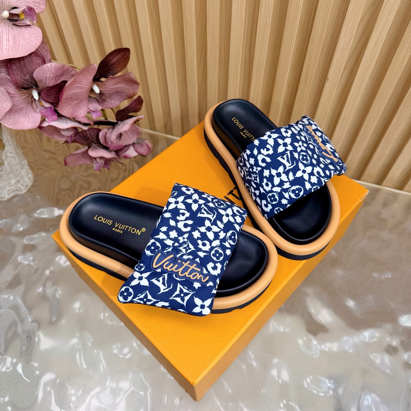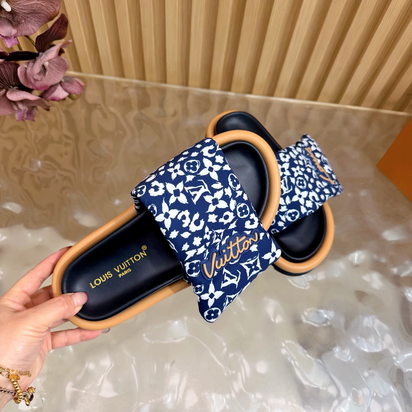 这款鞋子是AAAAA 1:1 质量 (非常棒). 使用了和原版一模一样的材料. 商标部分也保持了和路易威登/Louis Vuitton一样. 图片拍摄是实物鞋子拍摄, 您所收到的实物保证和我们图片一模一样.