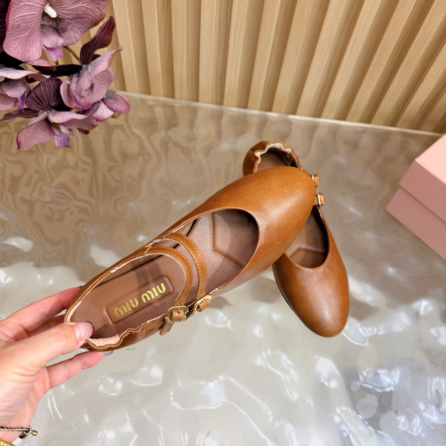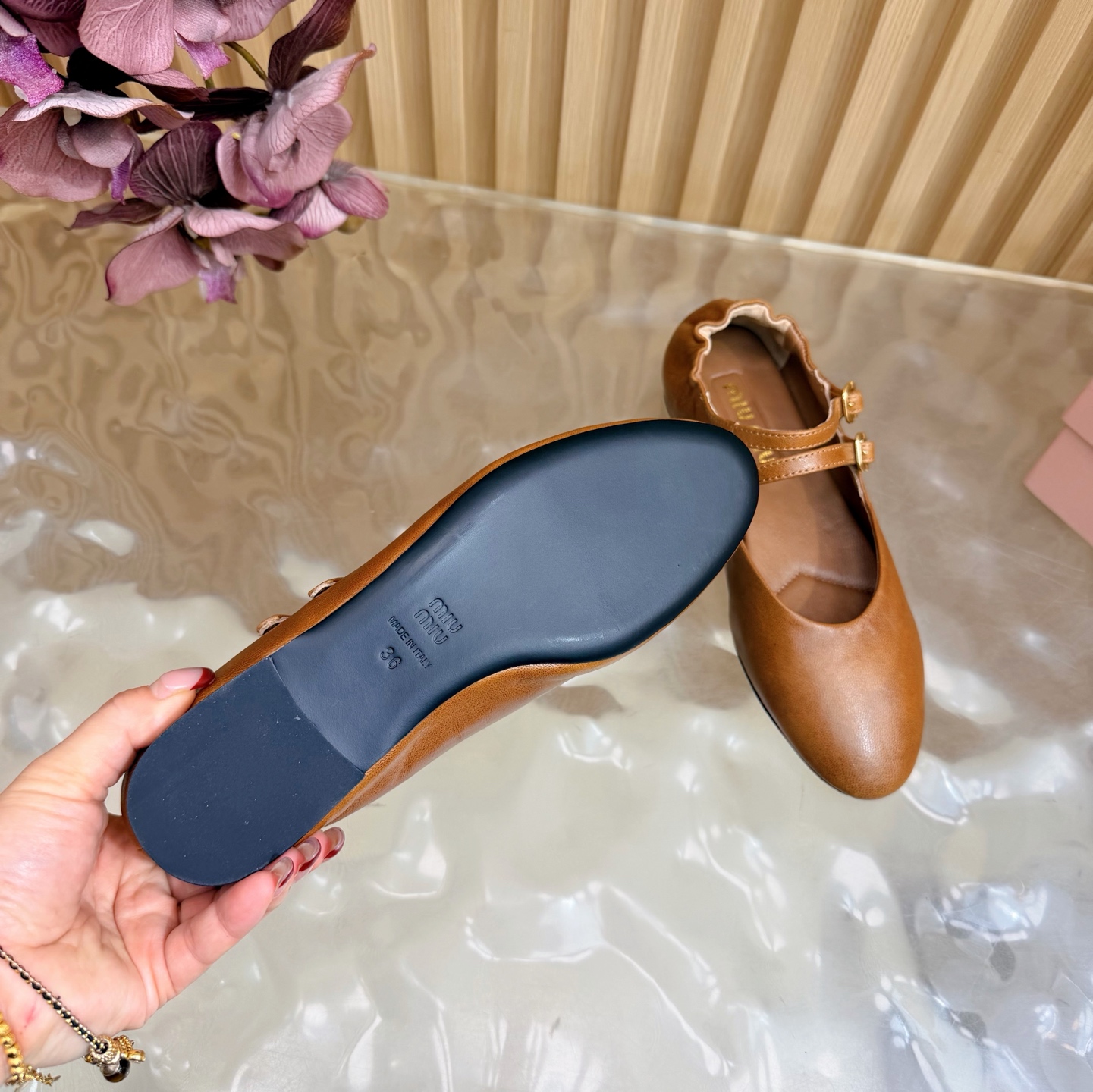 这款鞋子是AAAAA 1:1 质量 (非常棒). 使用了和原版一模一样的材料. 商标部分也保持了和缪缪/Miu Miu一样. 图片拍摄是实物鞋子拍摄, 您所收到的实物保证和我们图片一模一样.