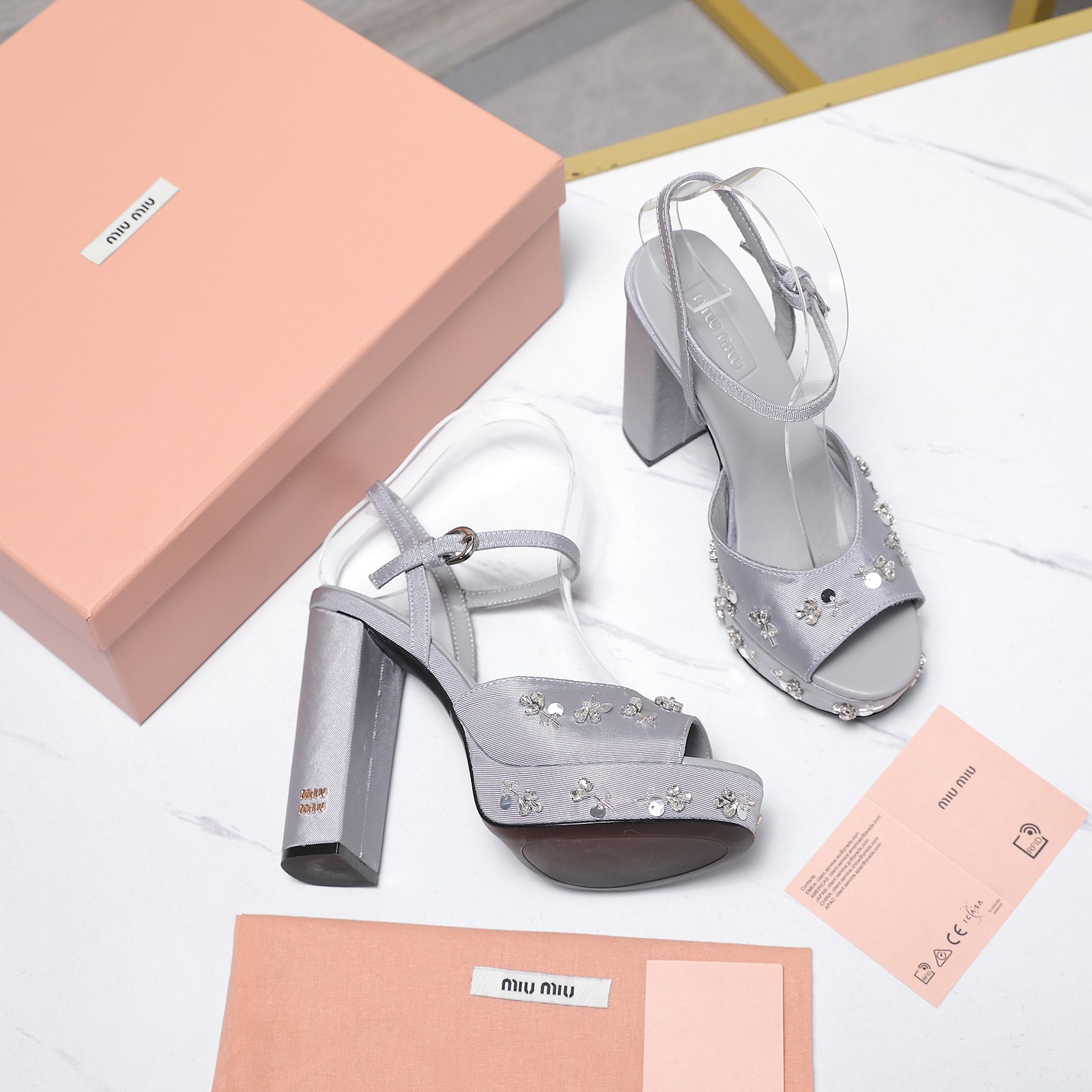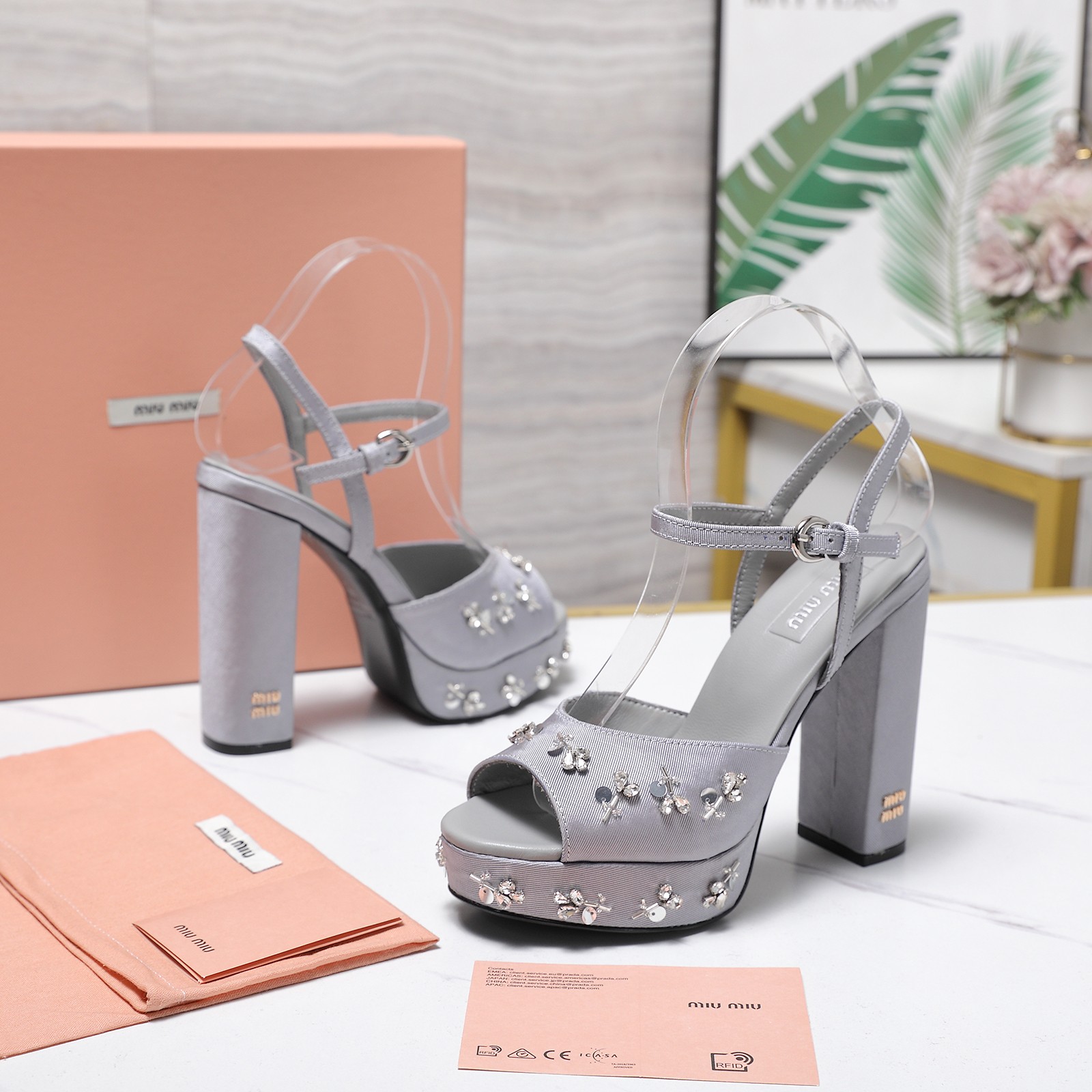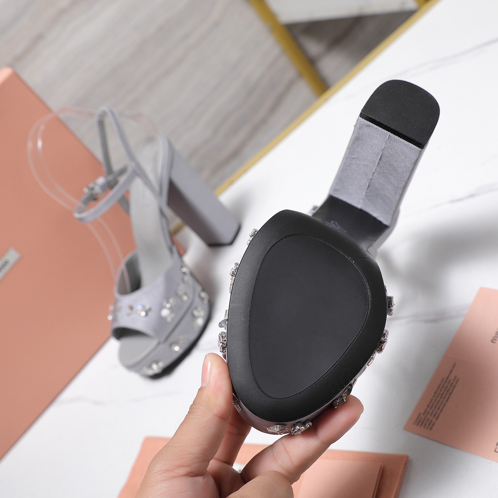 这款鞋子是AAAAA 1:1 质量 (非常棒). 使用了和原版一模一样的材料. 商标部分也保持了和缪缪/Miu Miu一样. 图片拍摄是实物鞋子拍摄, 您所收到的实物保证和我们图片一模一样.