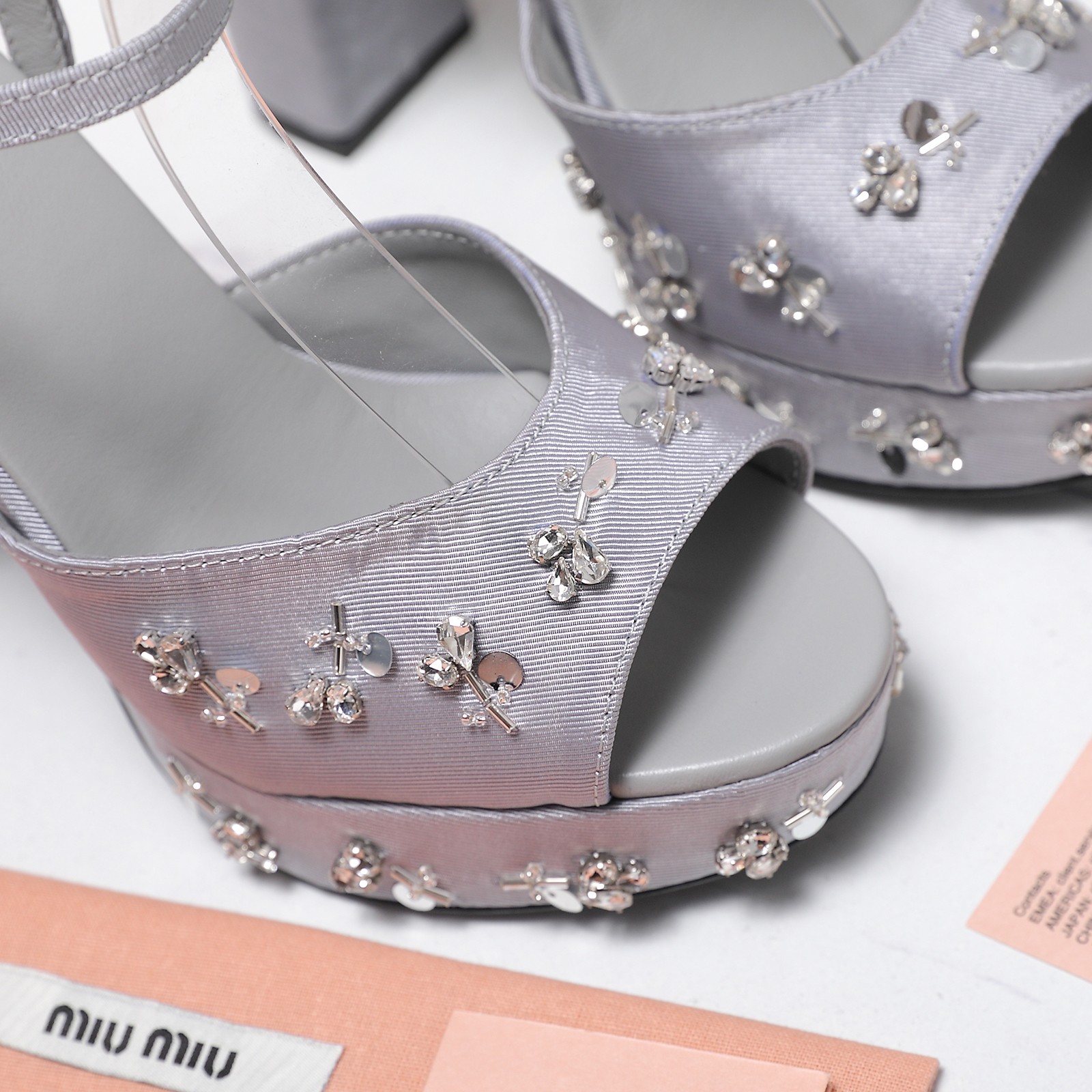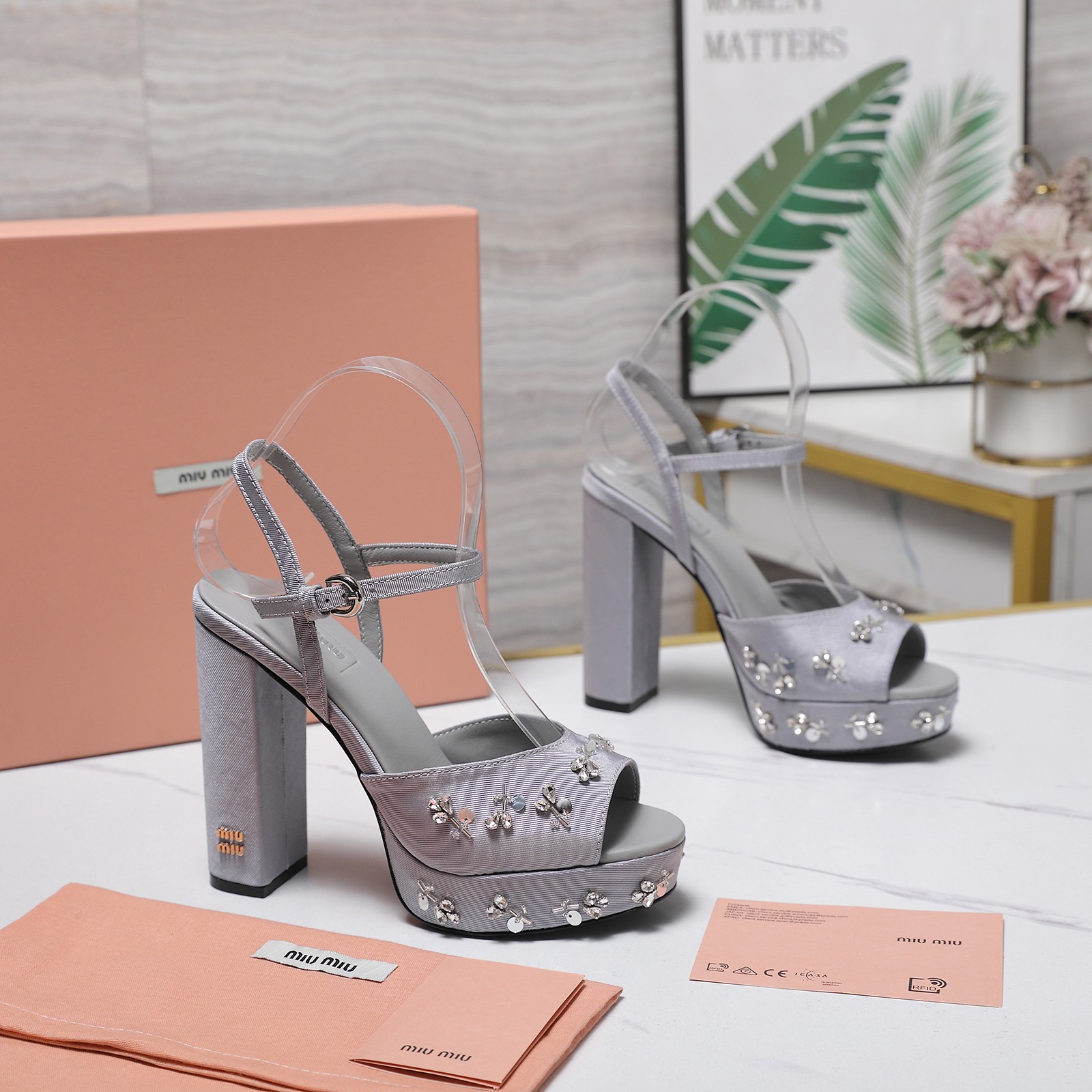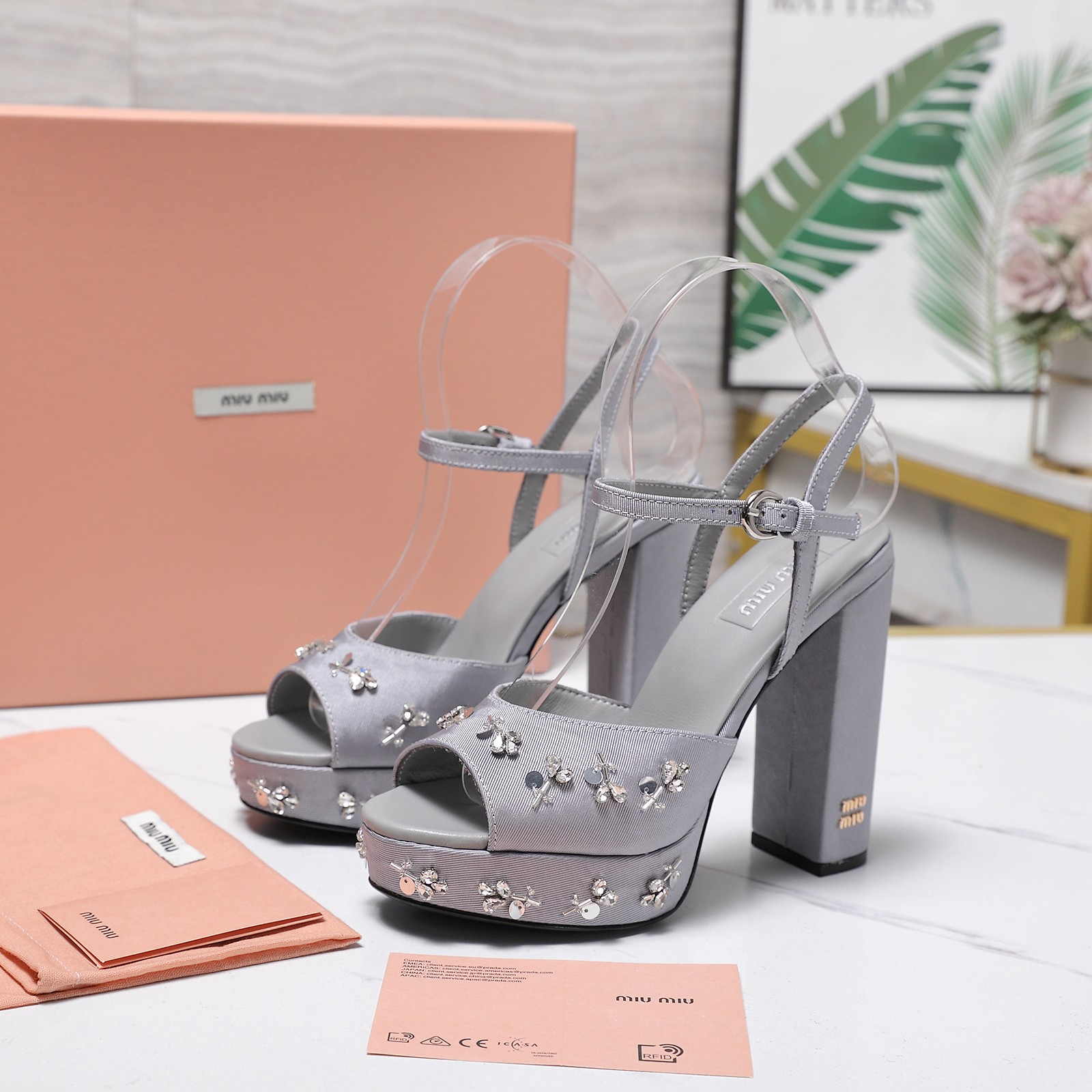 这款鞋子是AAAAA 1:1 质量 (非常棒). 使用了和原版一模一样的材料. 商标部分也保持了和缪缪/Miu Miu一样. 图片拍摄是实物鞋子拍摄, 您所收到的实物保证和我们图片一模一样.