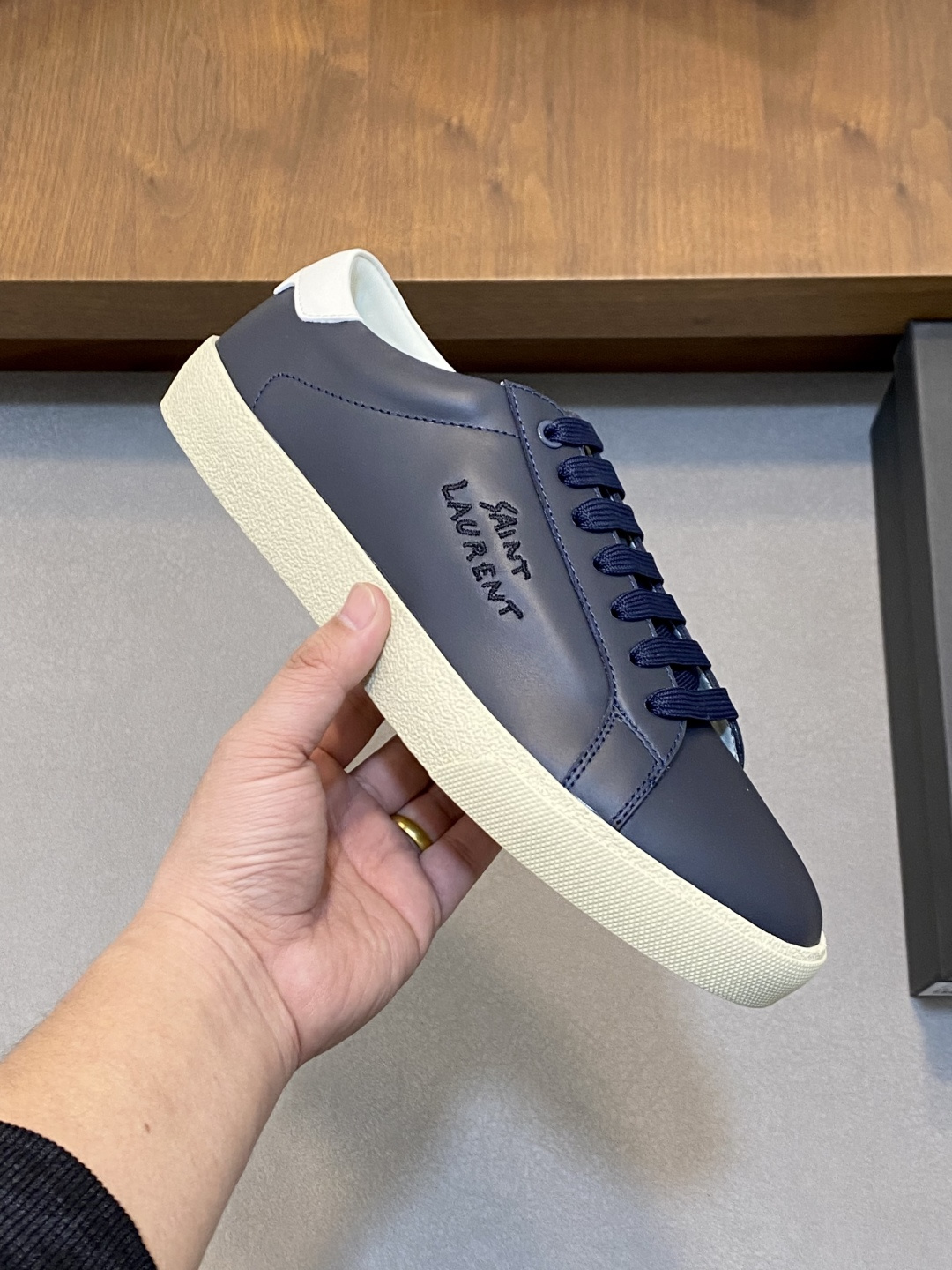 这款鞋子是AAAAA 1:1 质量 (非常棒). 使用了和原版一模一样的材料. 商标部分也保持了和圣罗兰/Saint Laurent一样. 图片拍摄是实物鞋子拍摄, 您所收到的实物保证和我们图片一模一样.