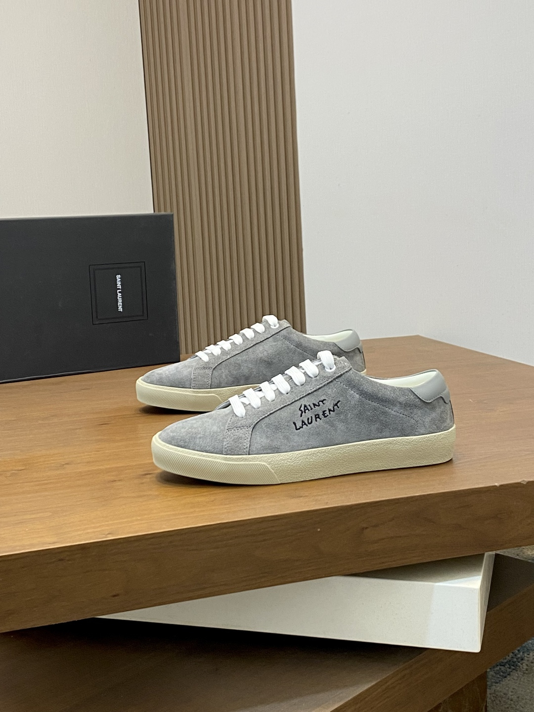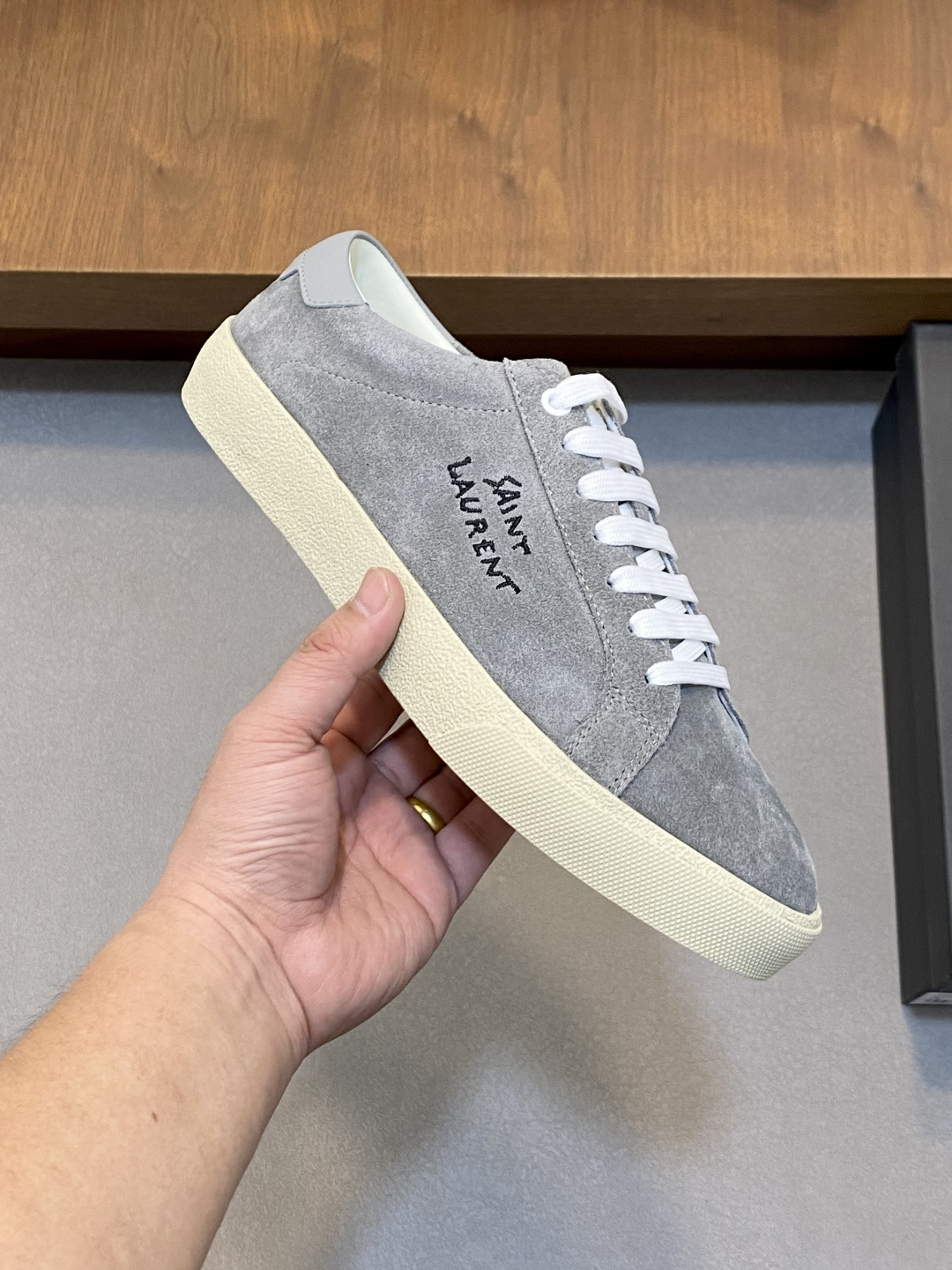 这款鞋子是AAAAA 1:1 质量 (非常棒). 使用了和原版一模一样的材料. 商标部分也保持了和圣罗兰/Saint Laurent一样. 图片拍摄是实物鞋子拍摄, 您所收到的实物保证和我们图片一模一样.
