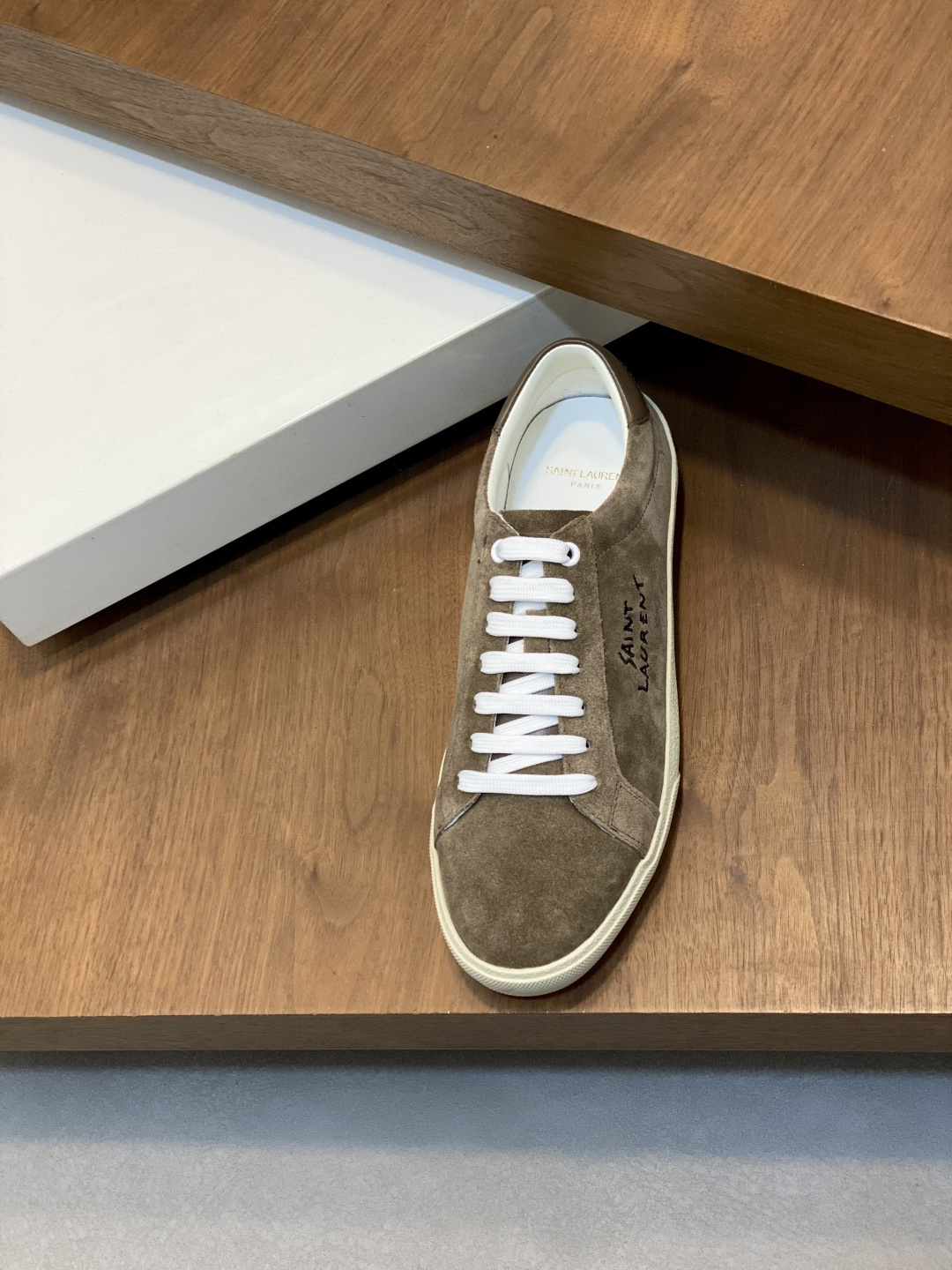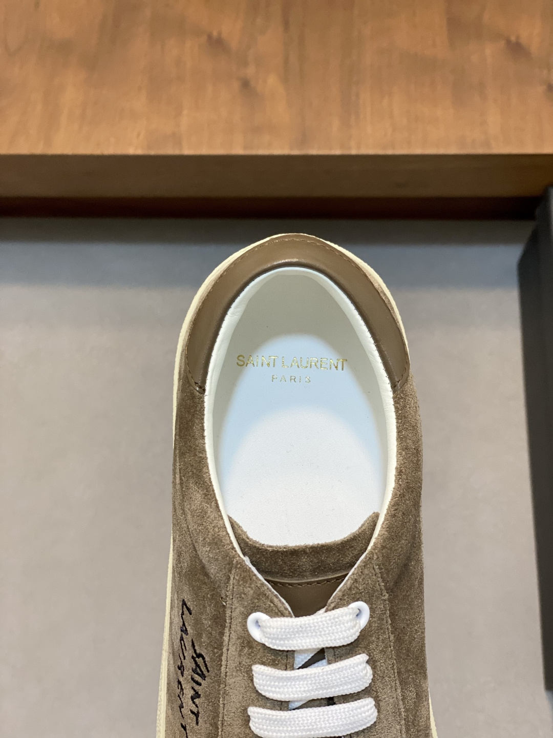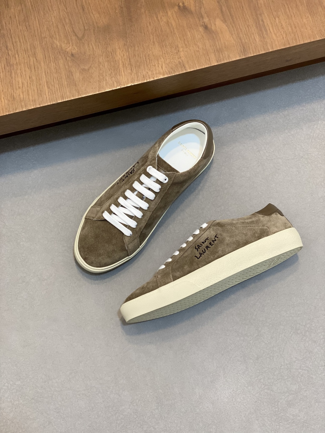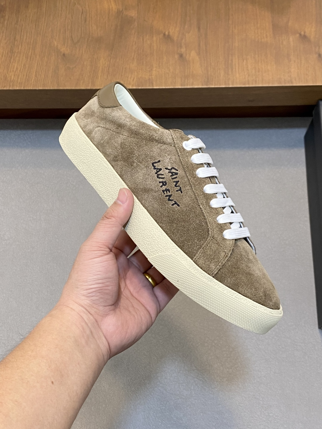 这款鞋子是AAAAA 1:1 质量 (非常棒). 使用了和原版一模一样的材料. 商标部分也保持了和圣罗兰/Saint Laurent一样. 图片拍摄是实物鞋子拍摄, 您所收到的实物保证和我们图片一模一样.
