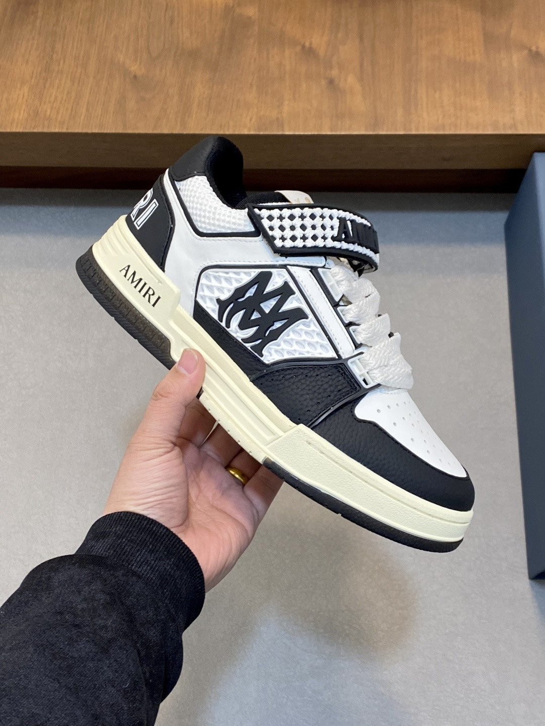 这款鞋子是AAAAA 1:1 质量 (非常棒). 使用了和原版一模一样的材料. 商标部分也保持了和AMIRI一样. 图片拍摄是实物鞋子拍摄, 您所收到的实物保证和我们图片一模一样.
