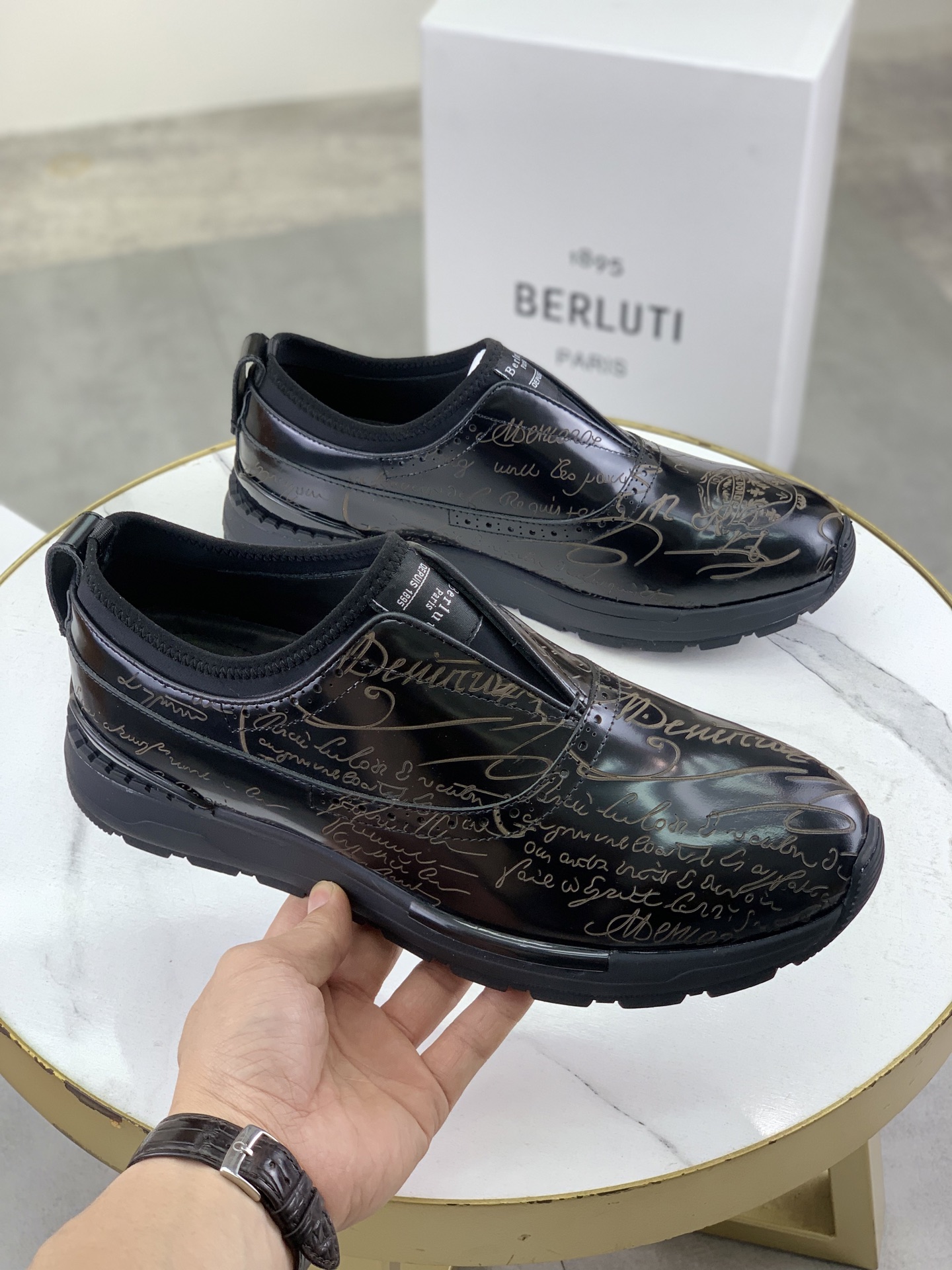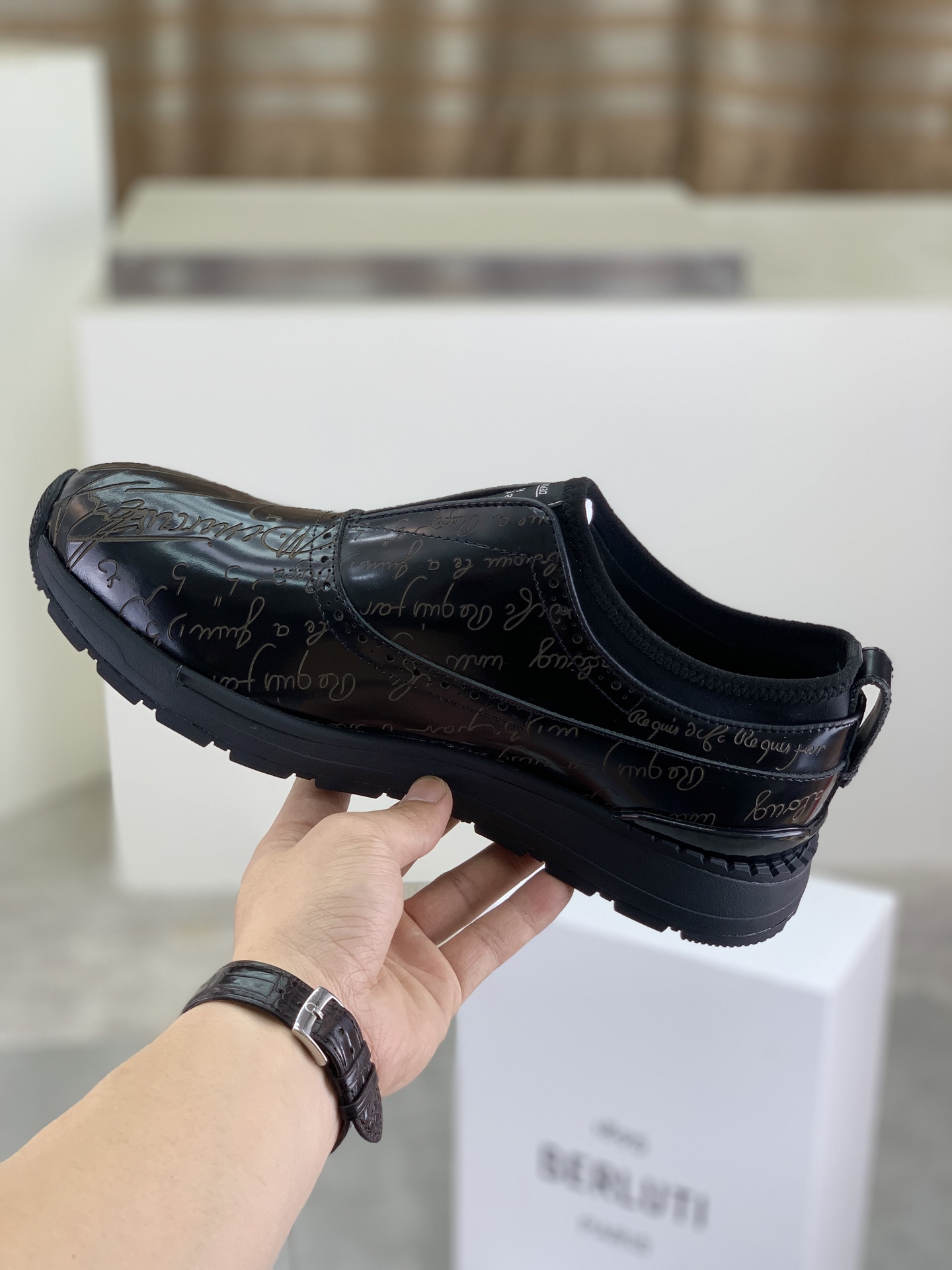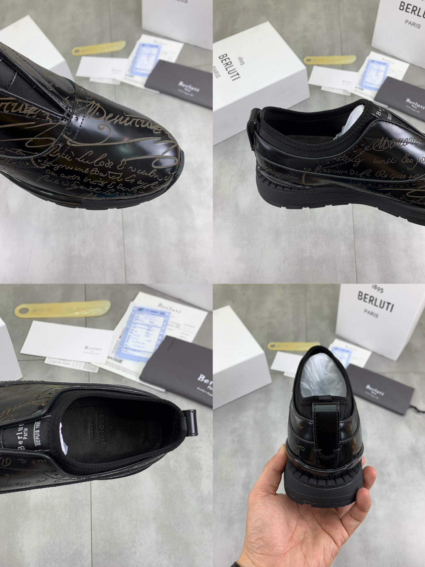 这款鞋子是AAAAA 1:1 质量 (非常棒). 使用了和原版一模一样的材料. 商标部分也保持了和Berluti一样. 图片拍摄是实物鞋子拍摄, 您所收到的实物保证和我们图片一模一样.
