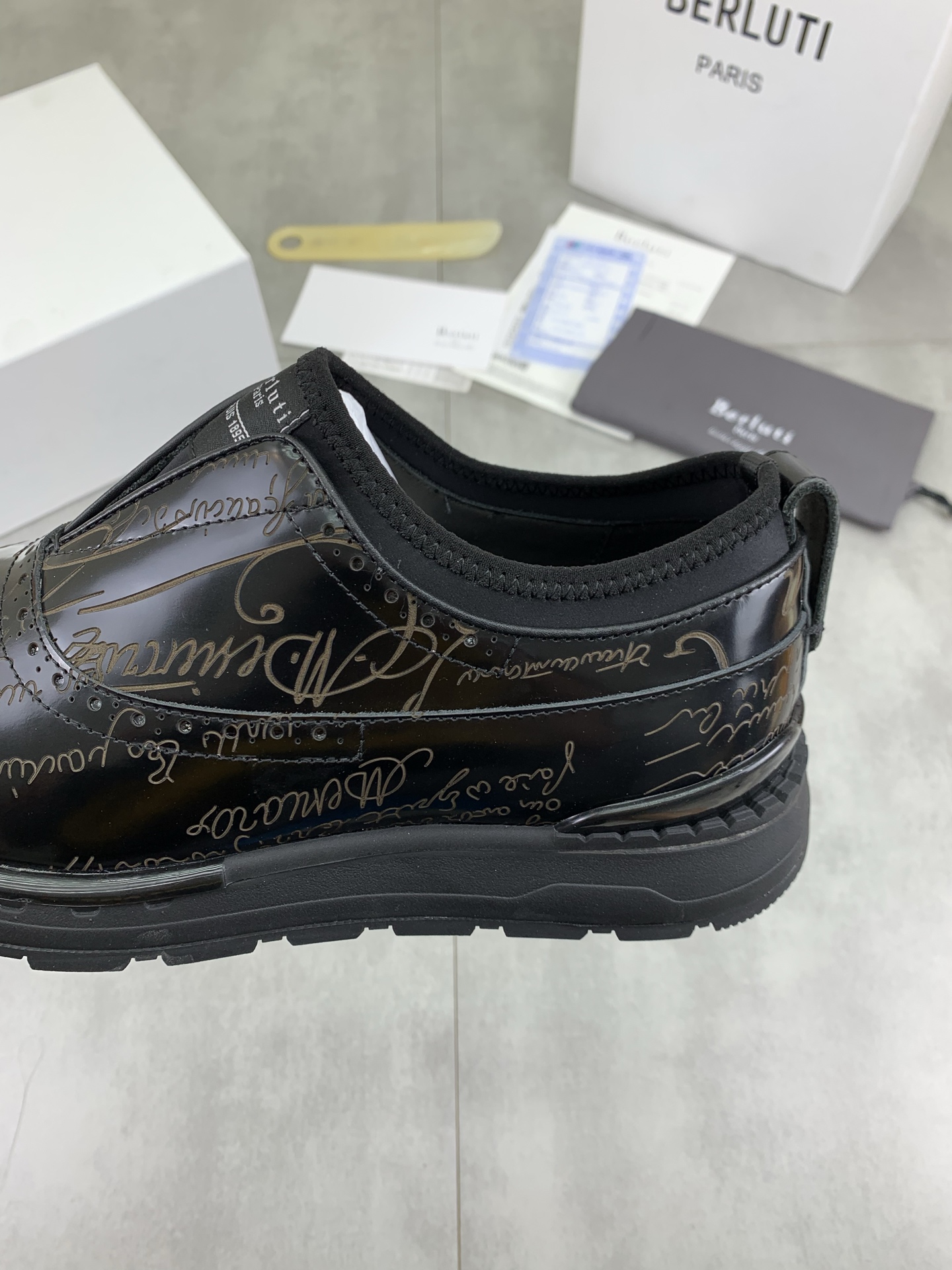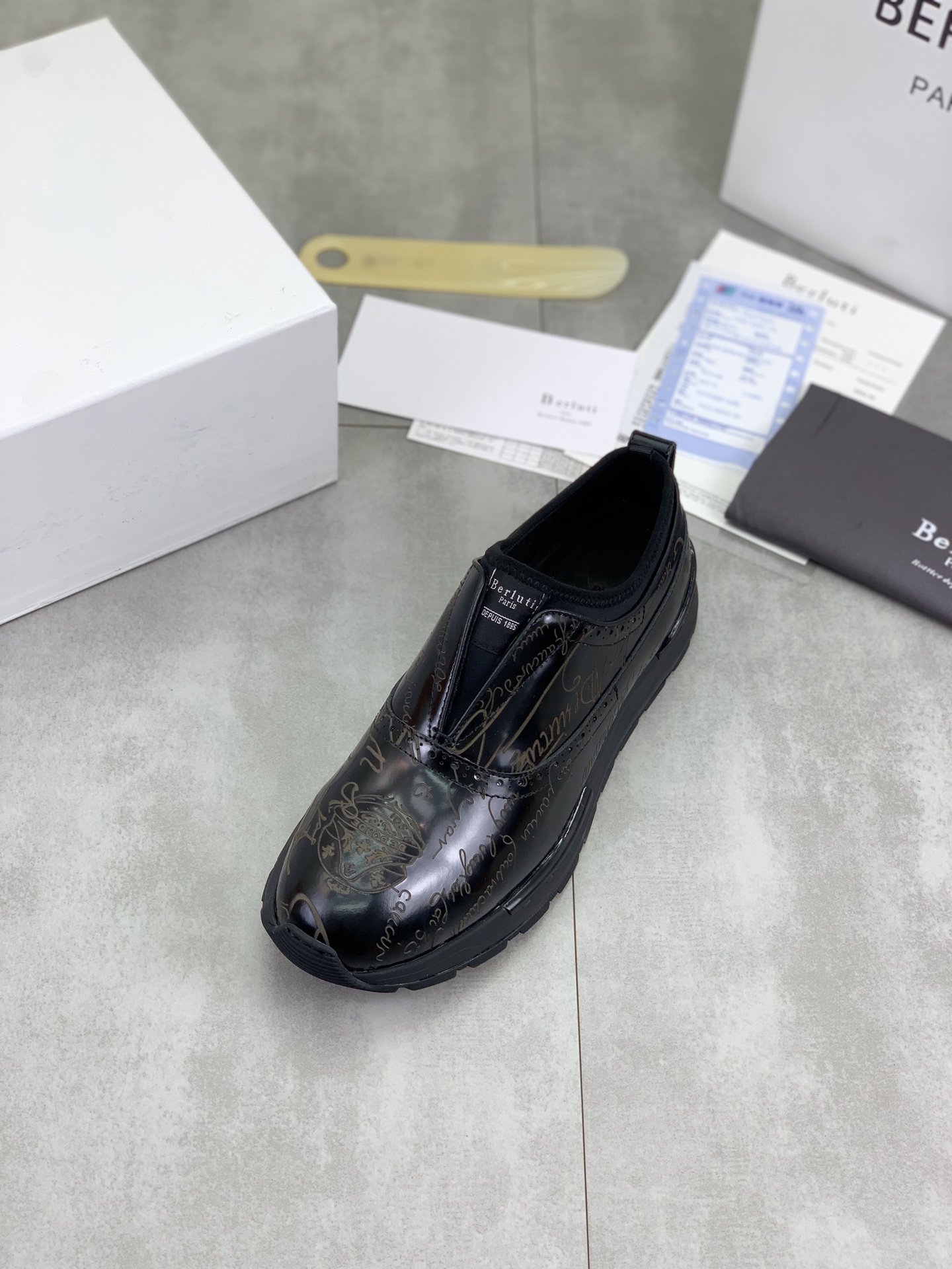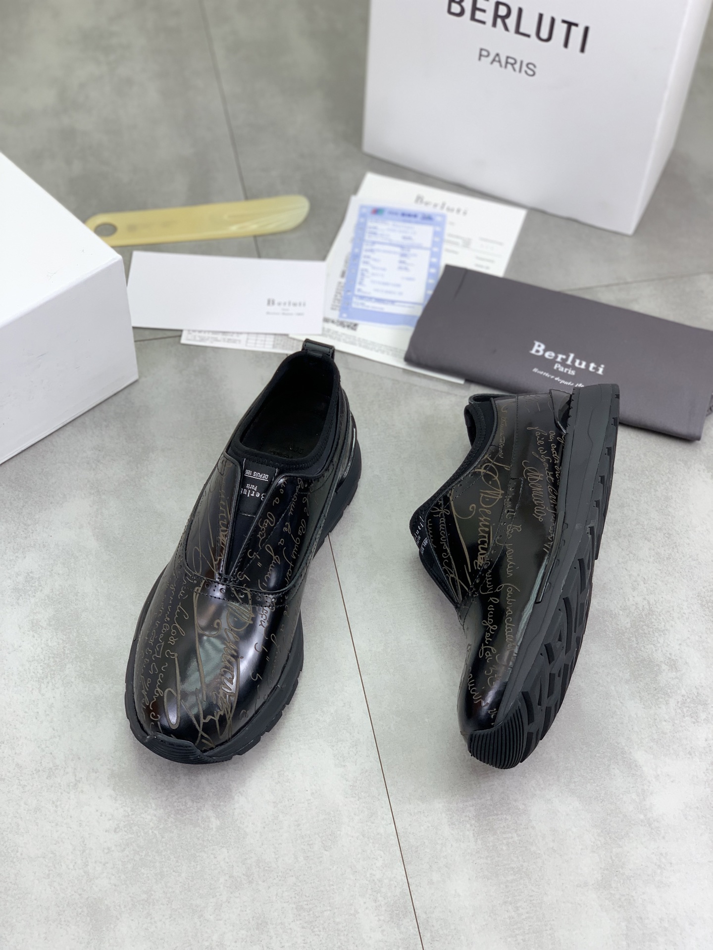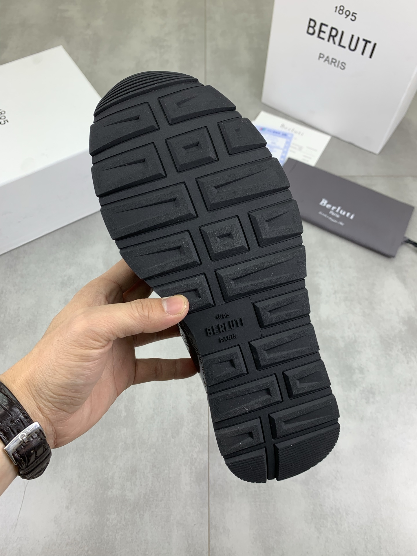 这款鞋子是AAAAA 1:1 质量 (非常棒). 使用了和原版一模一样的材料. 商标部分也保持了和Berluti一样. 图片拍摄是实物鞋子拍摄, 您所收到的实物保证和我们图片一模一样.