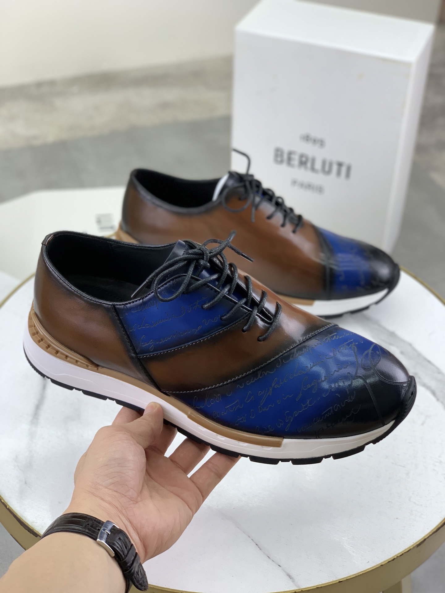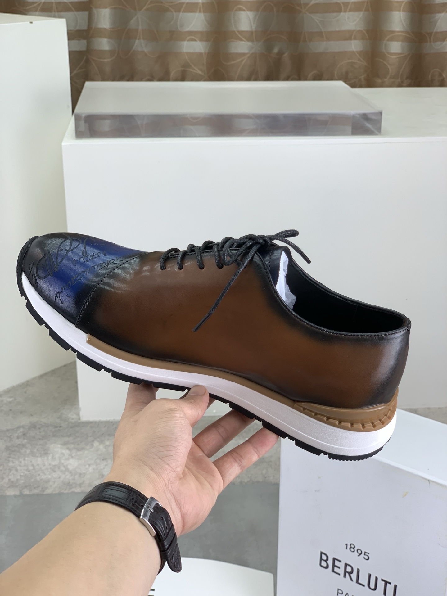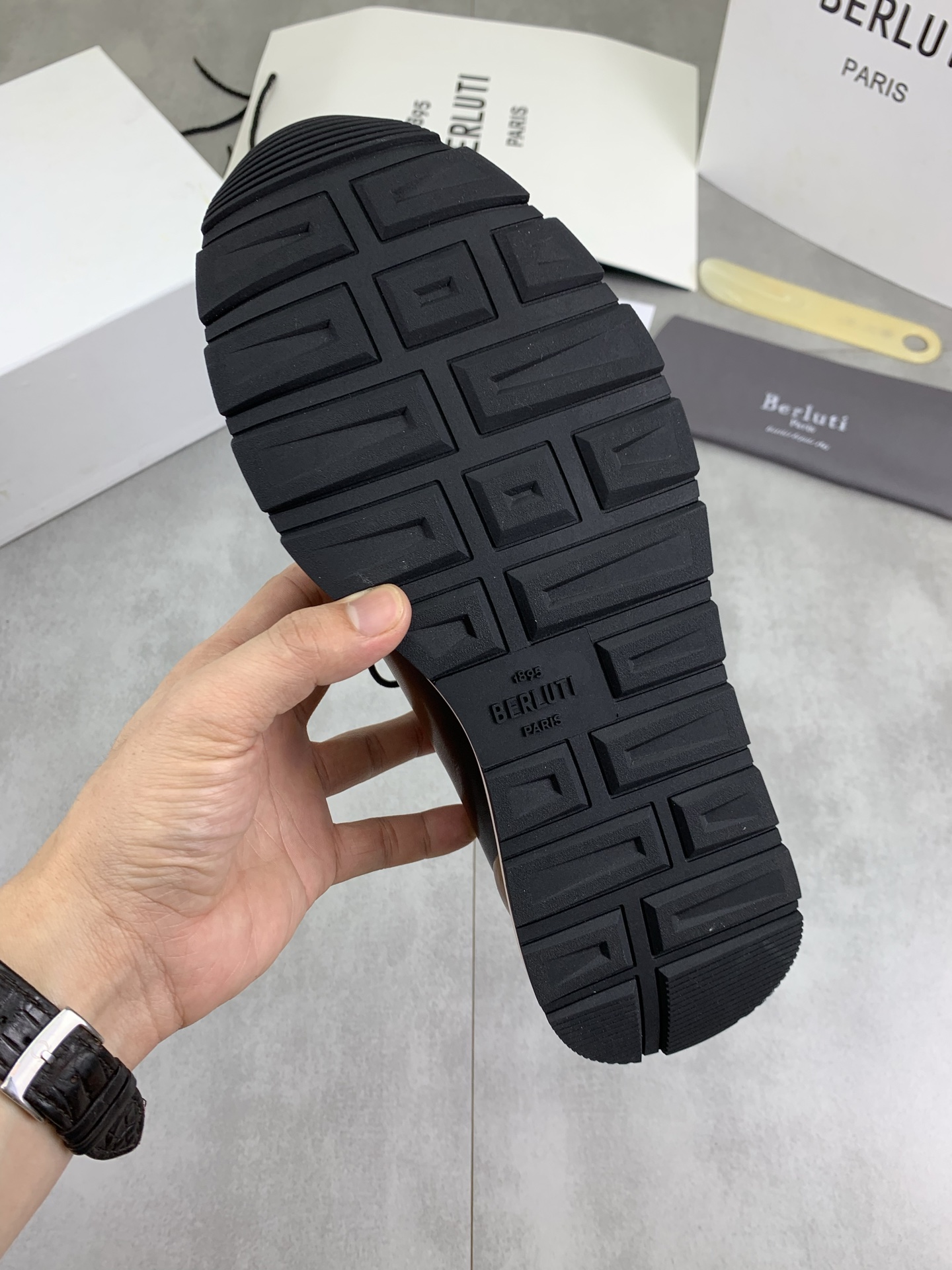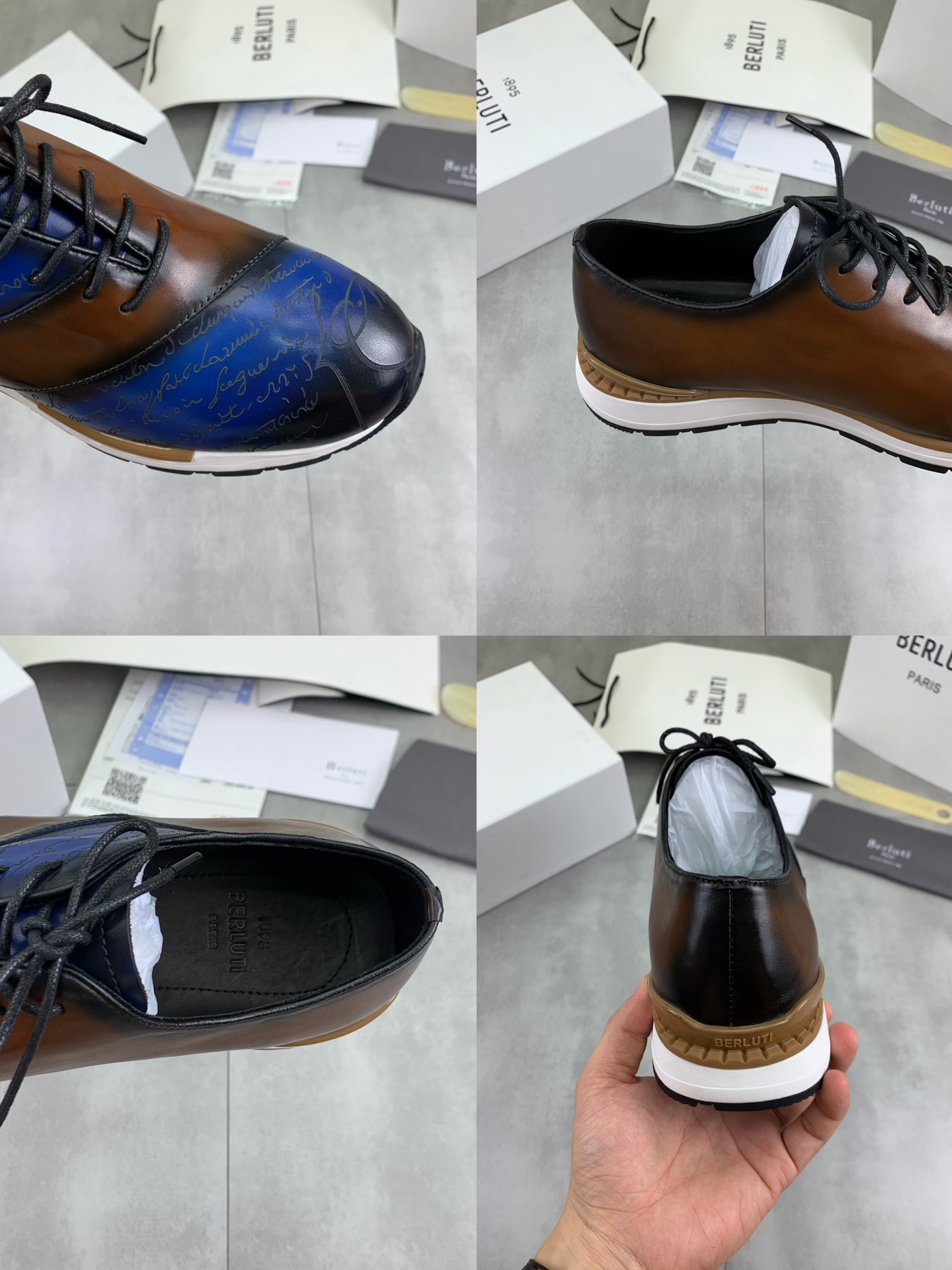 这款鞋子是AAAAA 1:1 质量 (非常棒). 使用了和原版一模一样的材料. 商标部分也保持了和Berluti一样. 图片拍摄是实物鞋子拍摄, 您所收到的实物保证和我们图片一模一样.