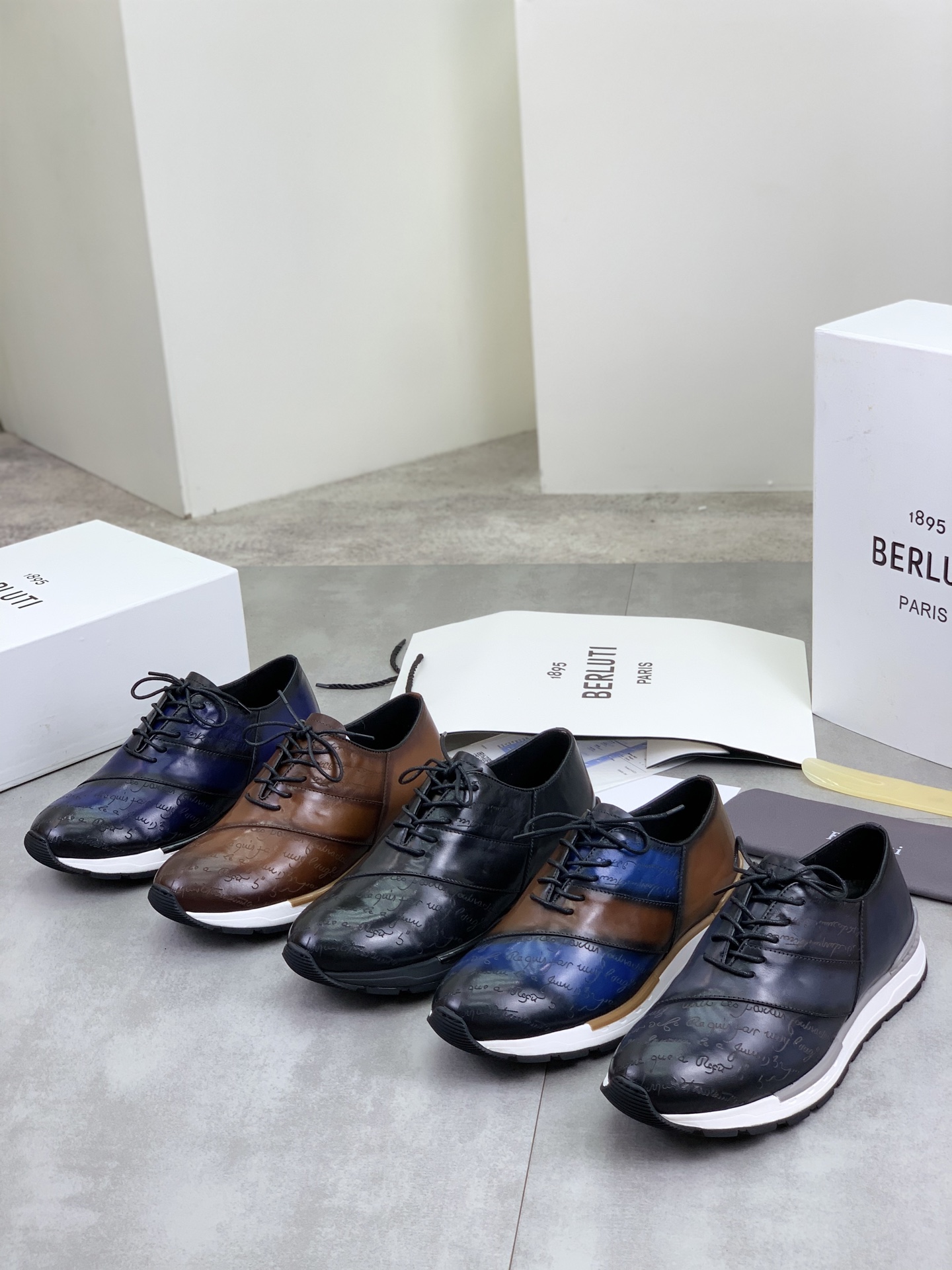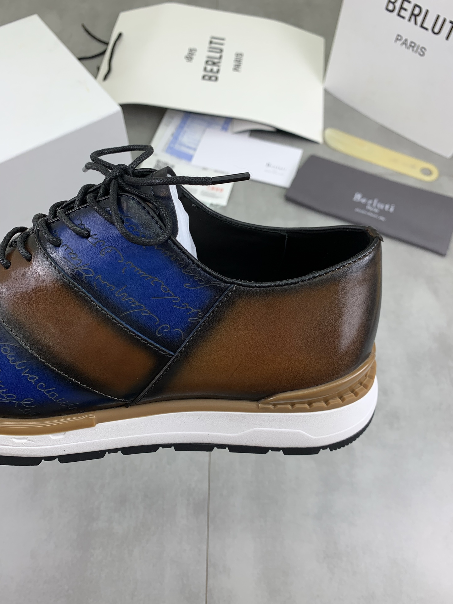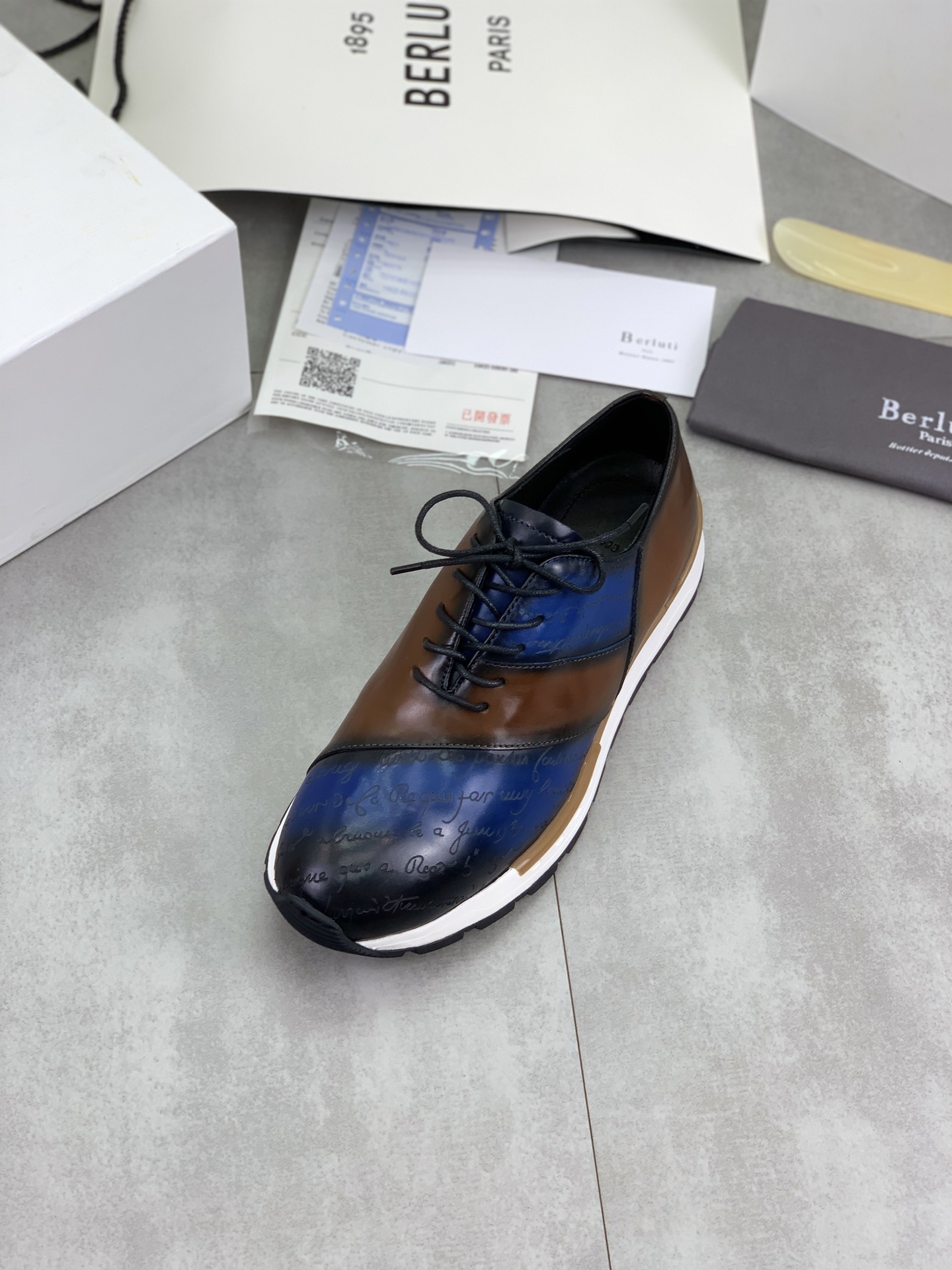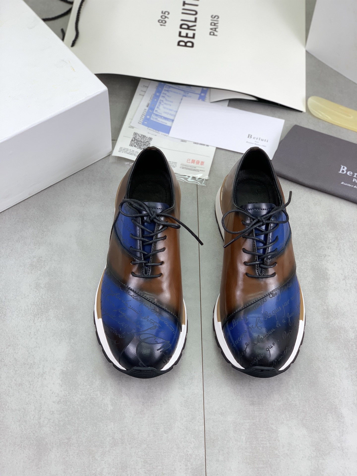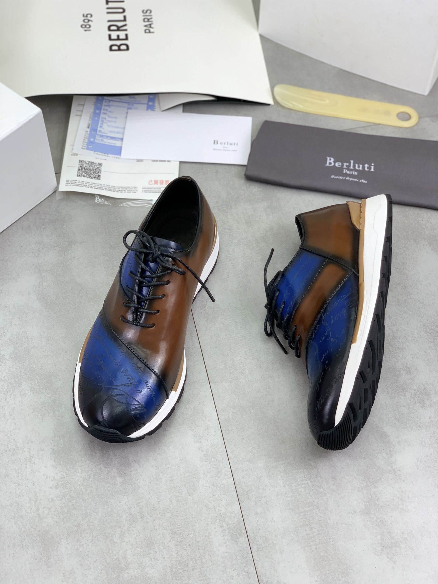 这款鞋子是AAAAA 1:1 质量 (非常棒). 使用了和原版一模一样的材料. 商标部分也保持了和Berluti一样. 图片拍摄是实物鞋子拍摄, 您所收到的实物保证和我们图片一模一样.