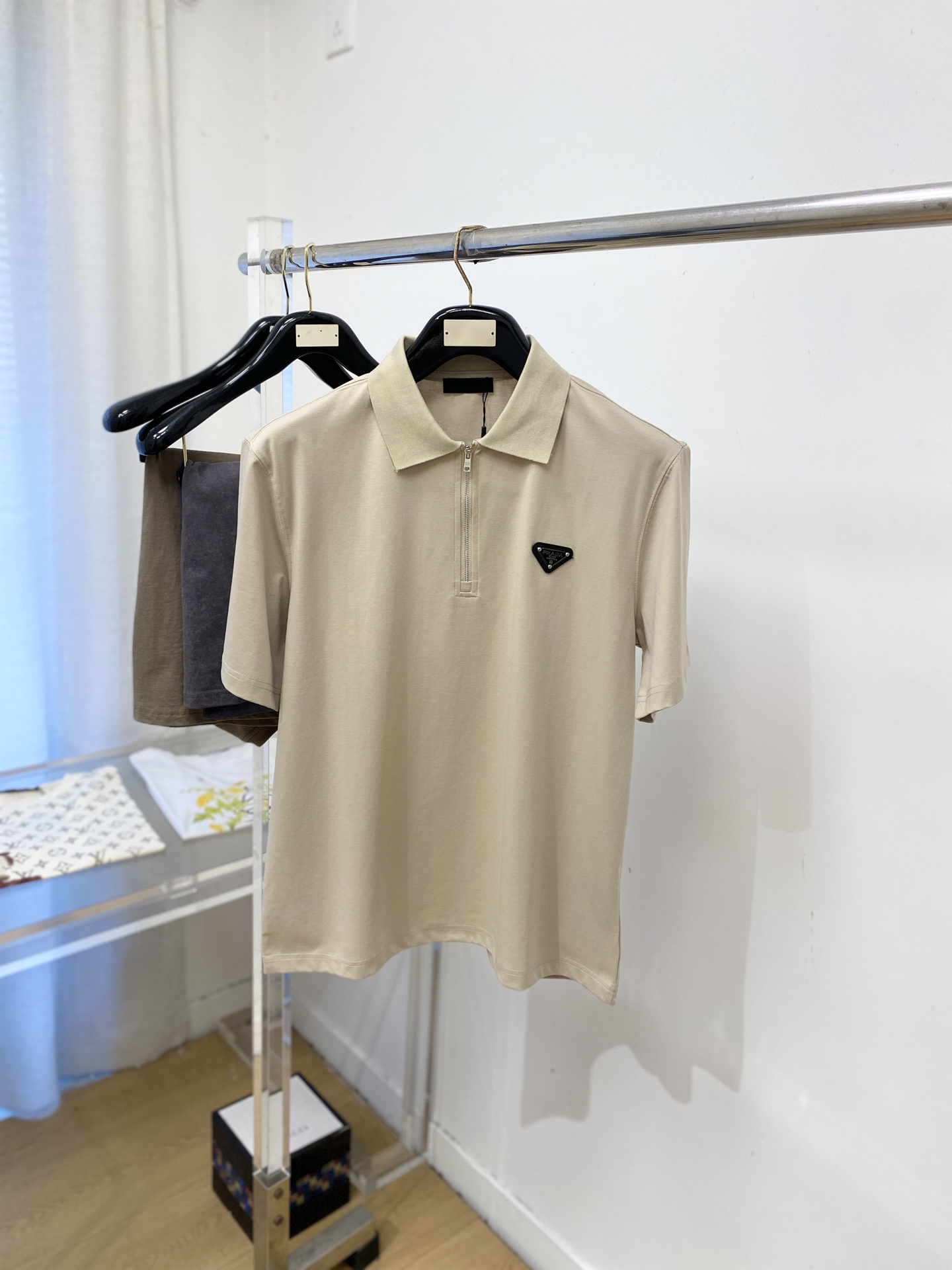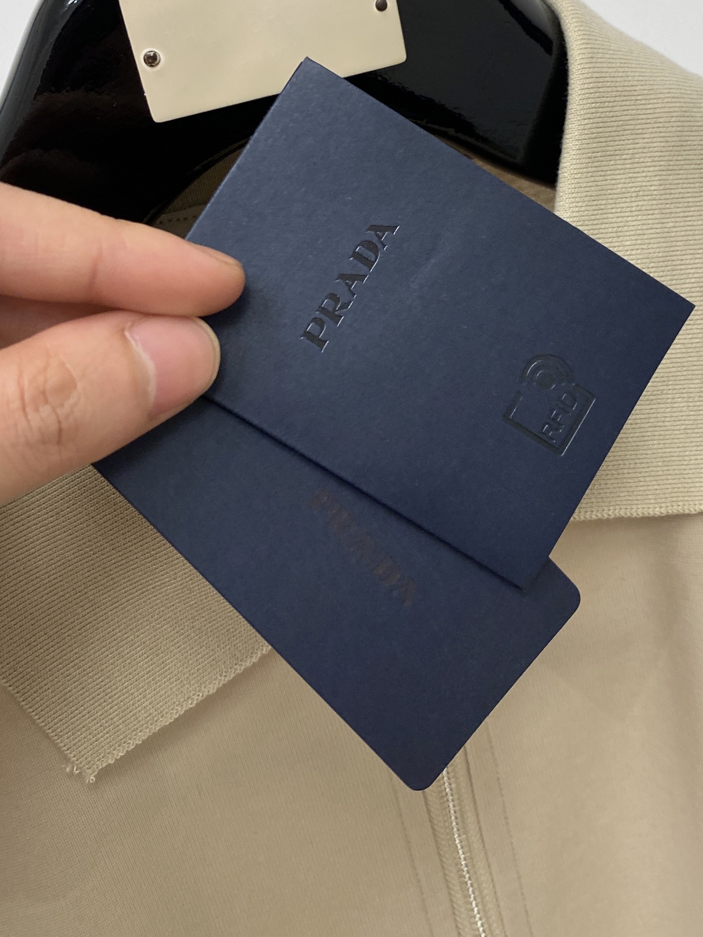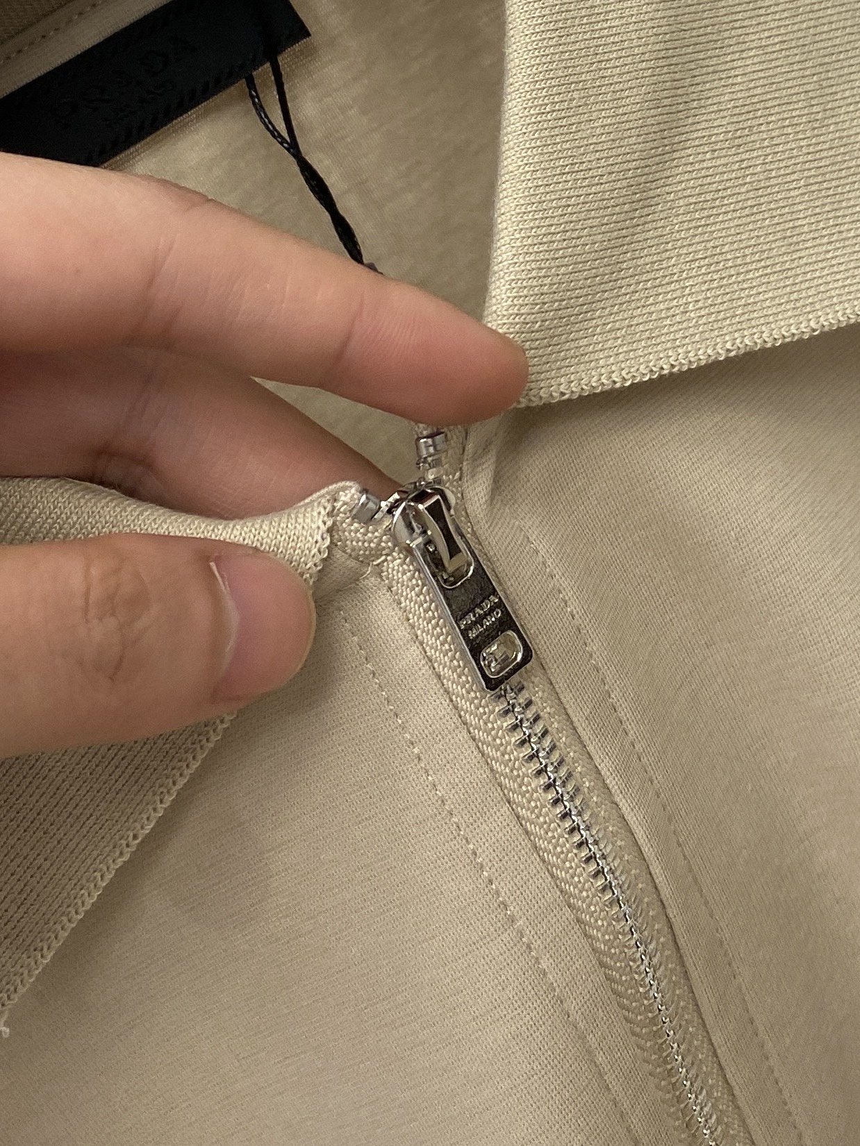这款衣服是AAAAA 1:1 质量 (非常棒). 使用了和原版一模一样的材料. 商标部分也保持了和普拉达/Prada一样. 图片拍摄是实物衣服拍摄, 您所收到的实物保证和我们图片一模一样.