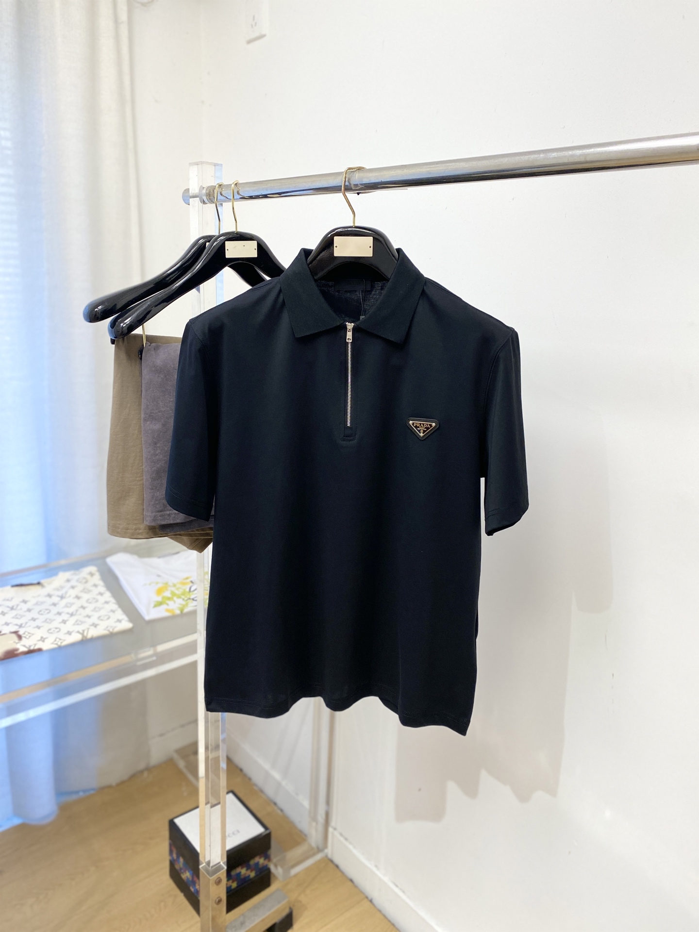 这款衣服是AAAAA 1:1 质量 (非常棒). 使用了和原版一模一样的材料. 商标部分也保持了和普拉达/Prada一样. 图片拍摄是实物衣服拍摄, 您所收到的实物保证和我们图片一模一样.
