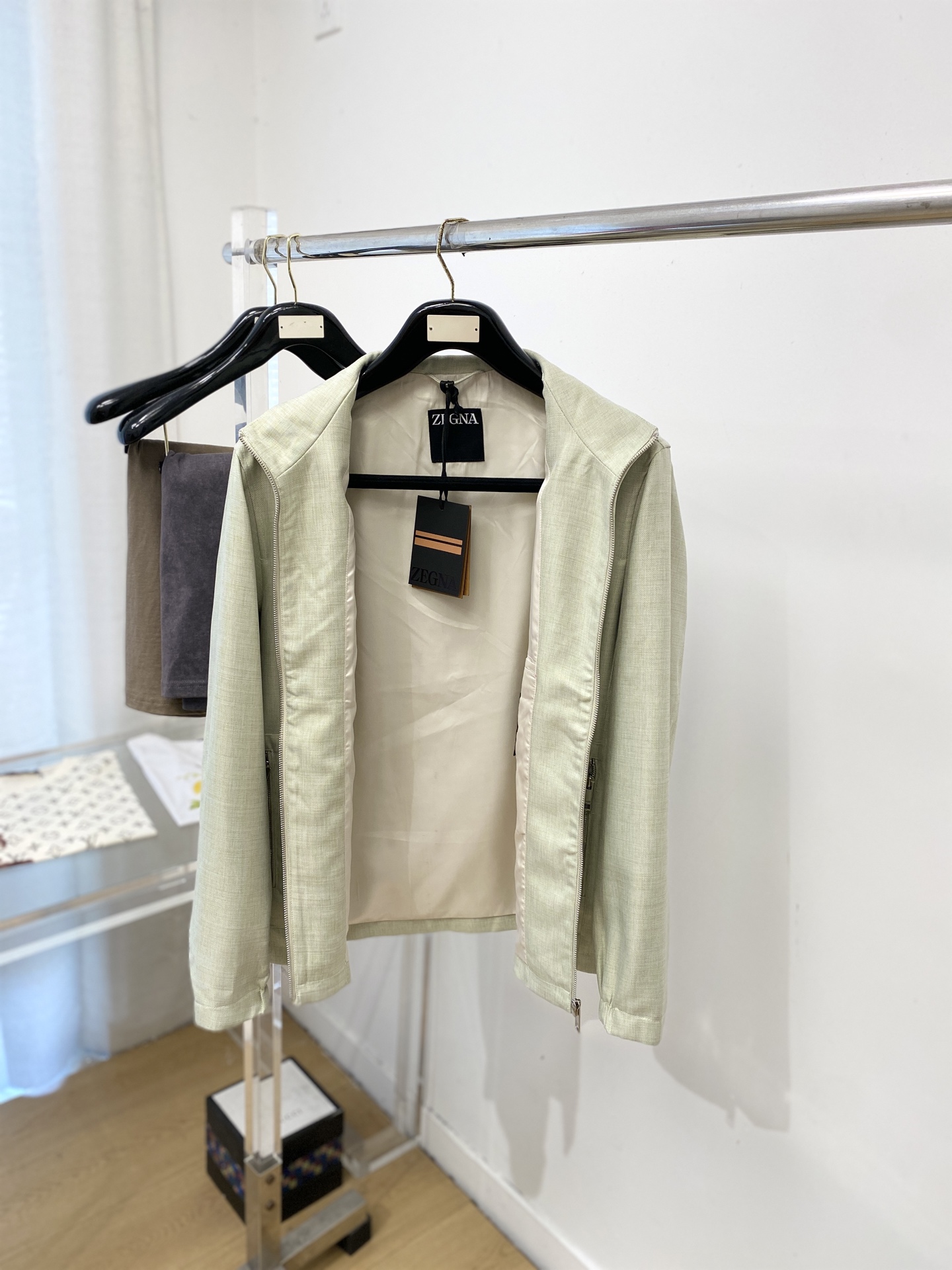这款衣服是AAAAA 1:1 质量 (非常棒). 使用了和原版一模一样的材料. 商标部分也保持了和杰尼亚/Zegna一样. 图片拍摄是实物衣服拍摄, 您所收到的实物保证和我们图片一模一样.