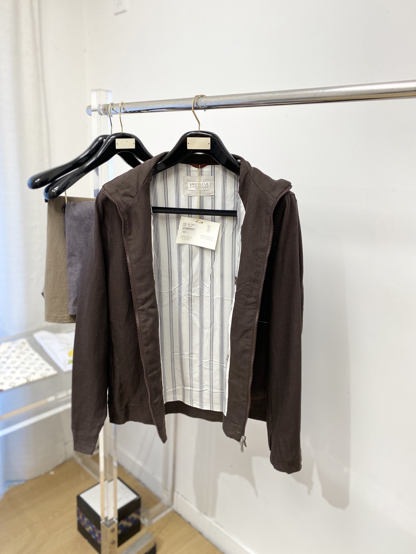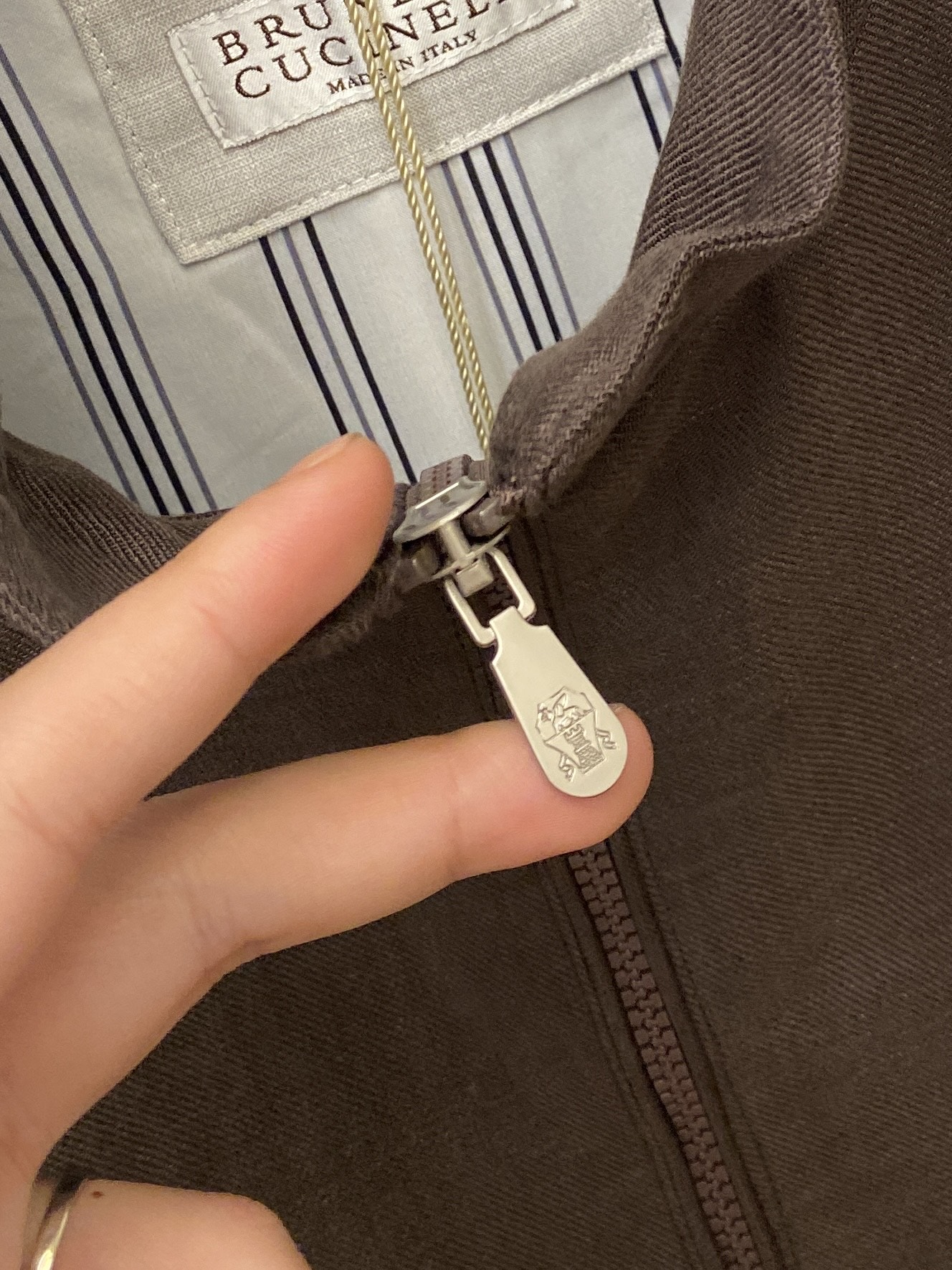 这款衣服是AAAAA 1:1 质量 (非常棒). 使用了和原版一模一样的材料. 商标部分也保持了和Brunello Cucinelli一样. 图片拍摄是实物衣服拍摄, 您所收到的实物保证和我们图片一模一样.