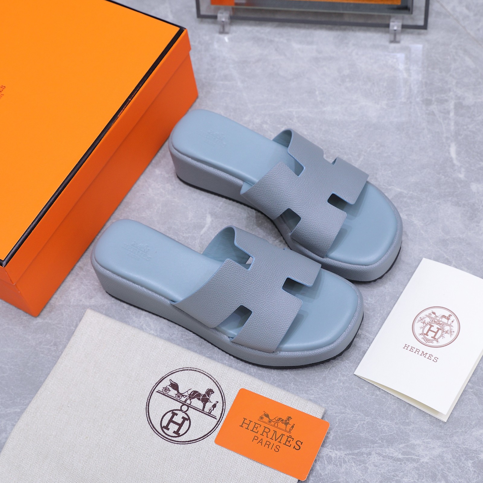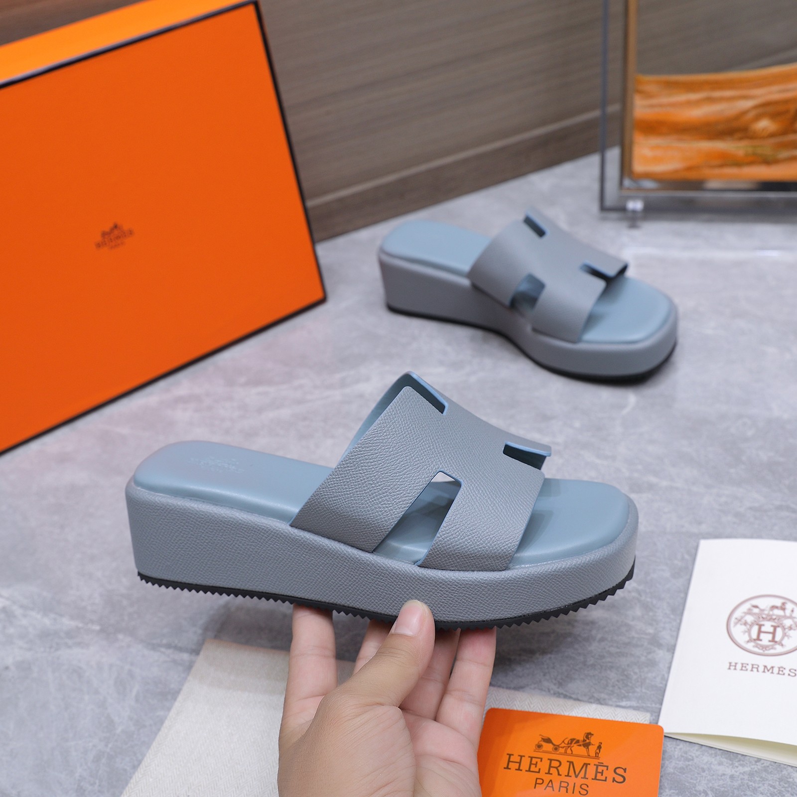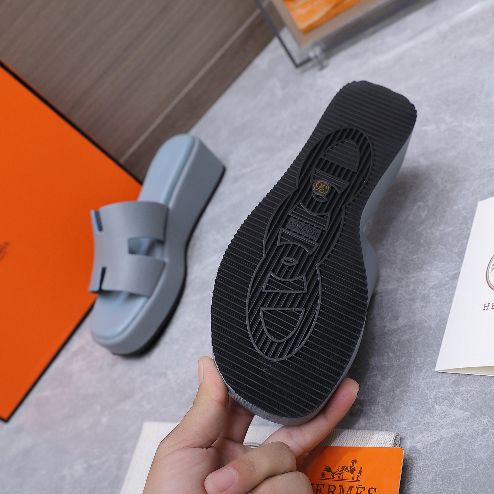 这款鞋子是AAAAA 1:1 质量 (非常棒). 使用了和原版一模一样的材料. 商标部分也保持了和爱马仕/Hermes一样. 图片拍摄是实物鞋子拍摄, 您所收到的实物保证和我们图片一模一样.