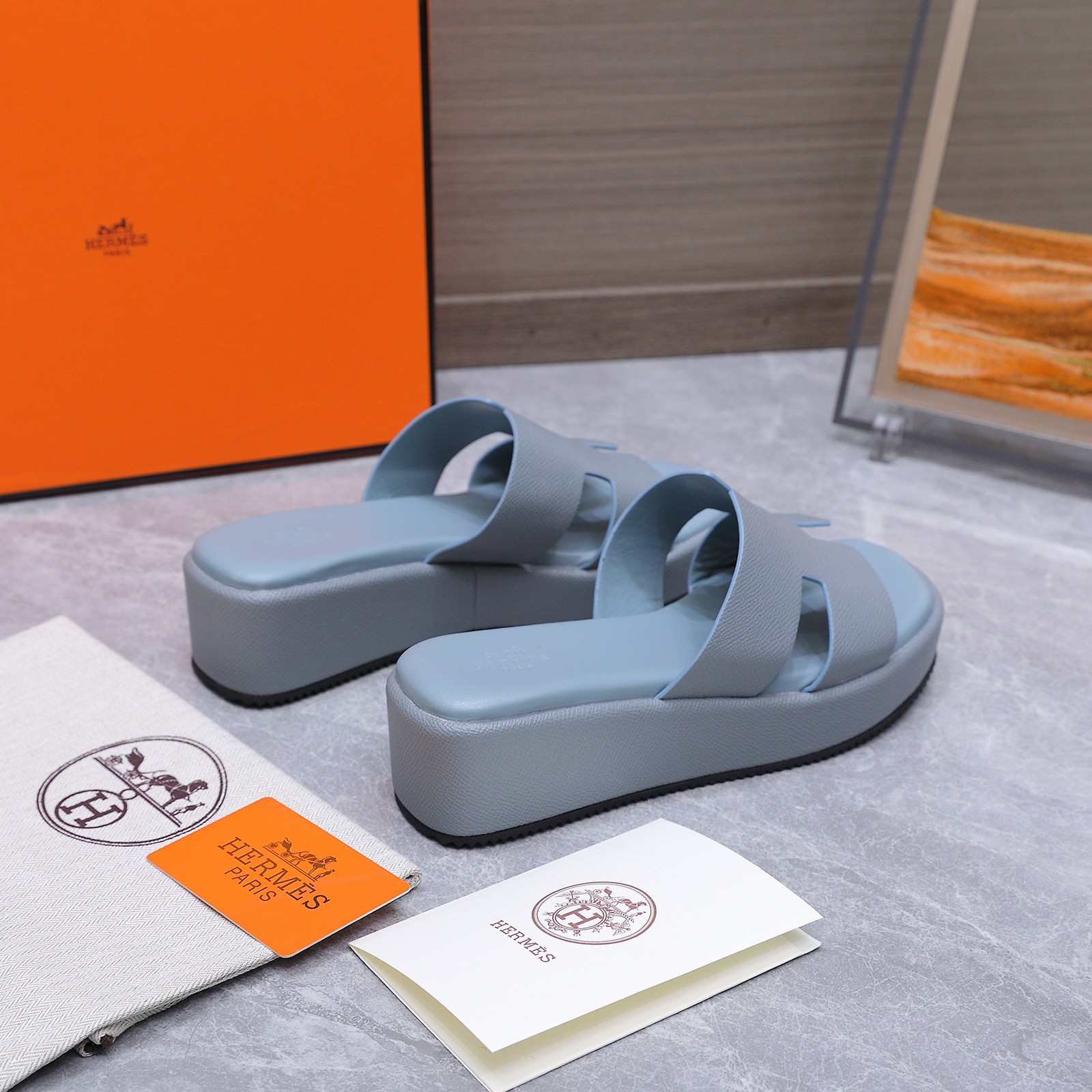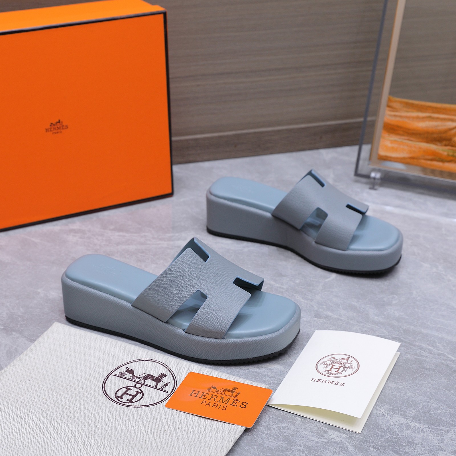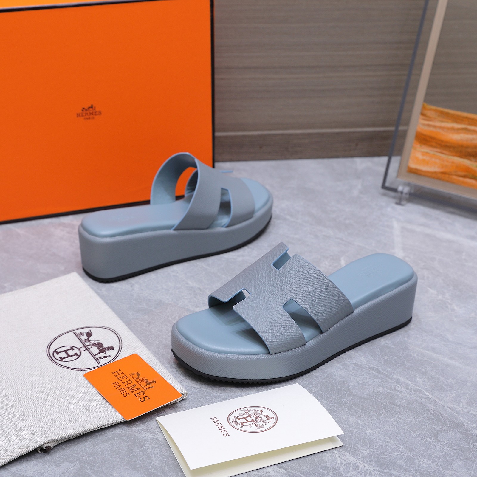 这款鞋子是AAAAA 1:1 质量 (非常棒). 使用了和原版一模一样的材料. 商标部分也保持了和爱马仕/Hermes一样. 图片拍摄是实物鞋子拍摄, 您所收到的实物保证和我们图片一模一样.