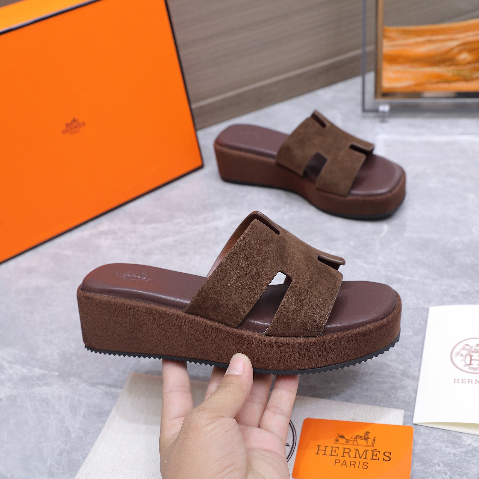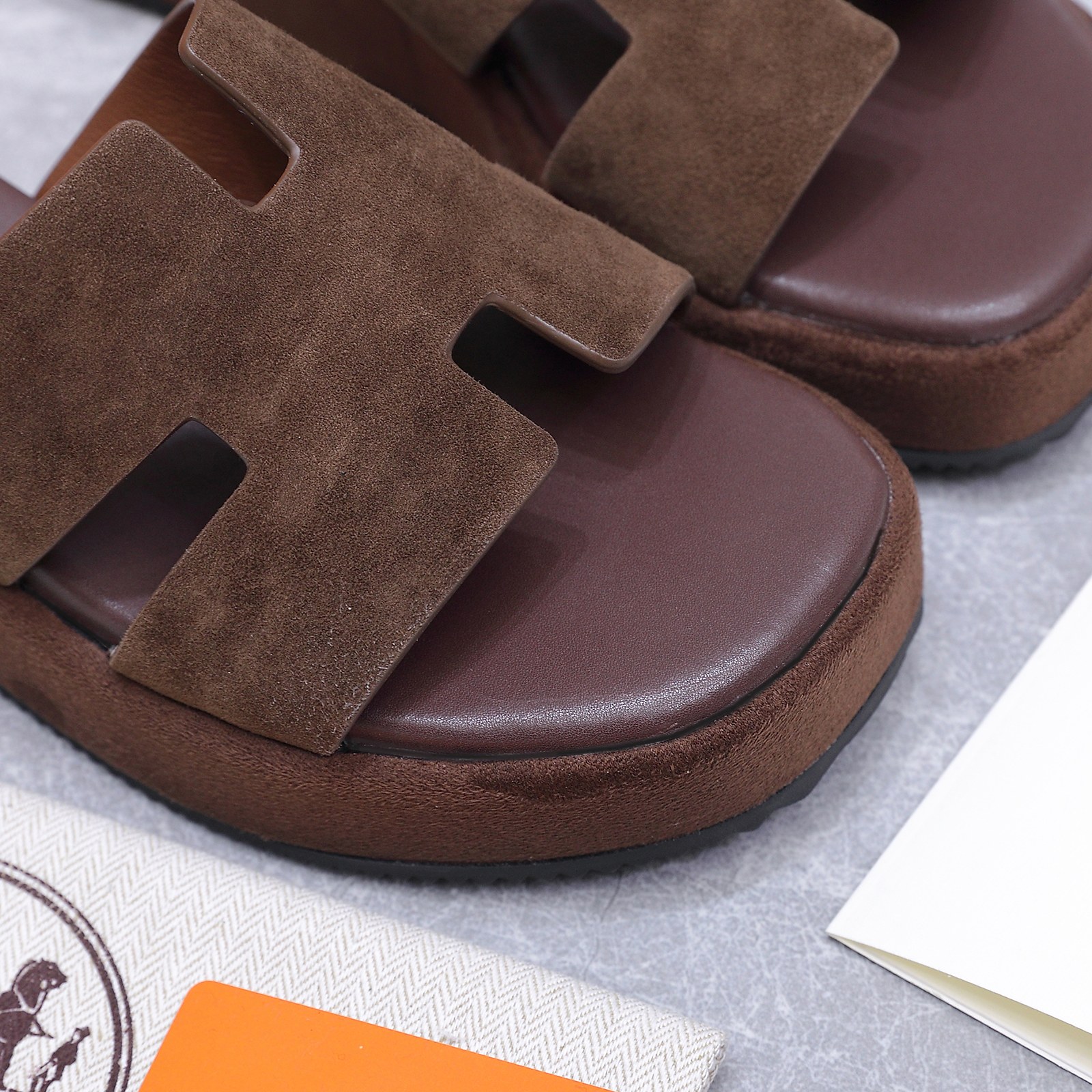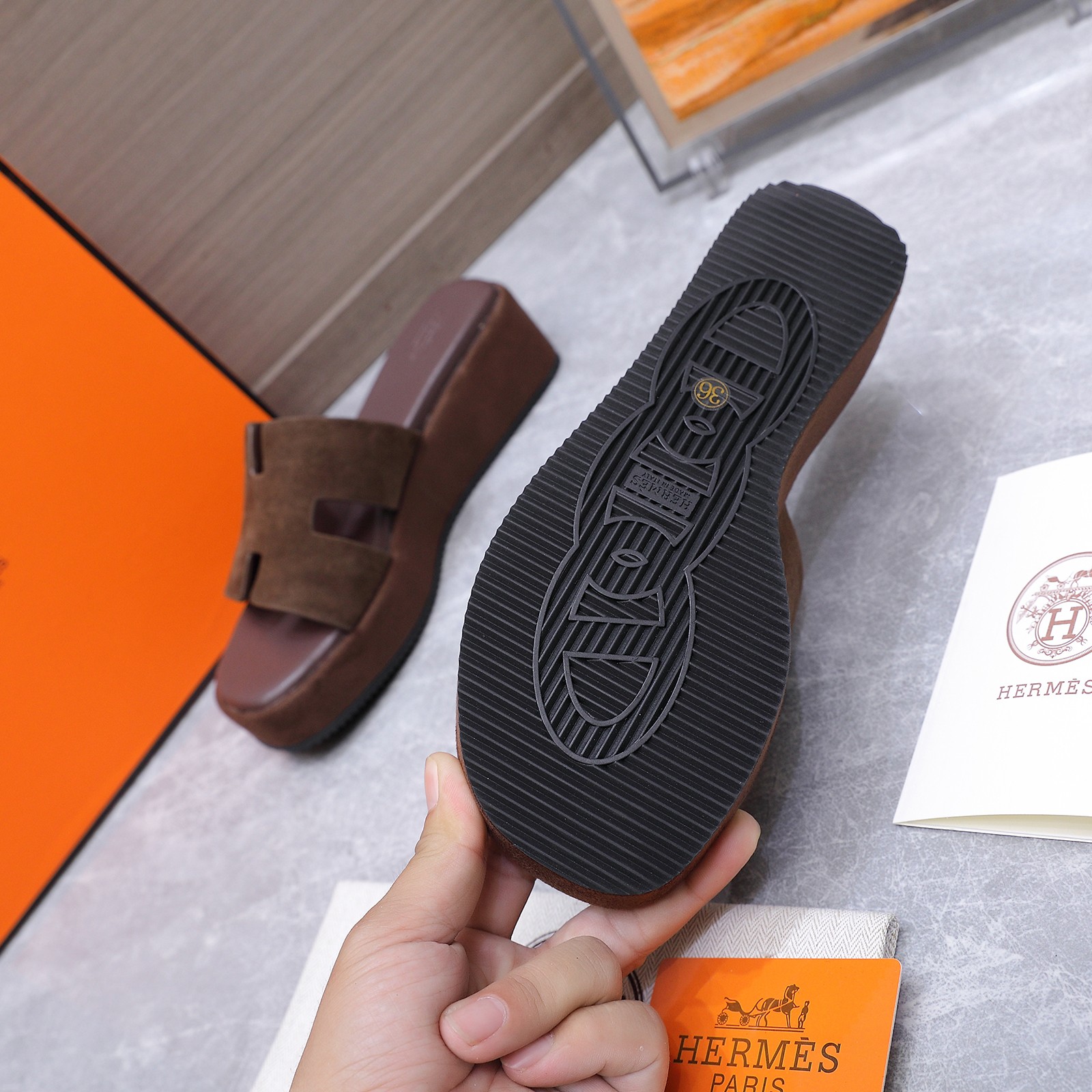这款鞋子是AAAAA 1:1 质量 (非常棒). 使用了和原版一模一样的材料. 商标部分也保持了和爱马仕/Hermes一样. 图片拍摄是实物鞋子拍摄, 您所收到的实物保证和我们图片一模一样.
