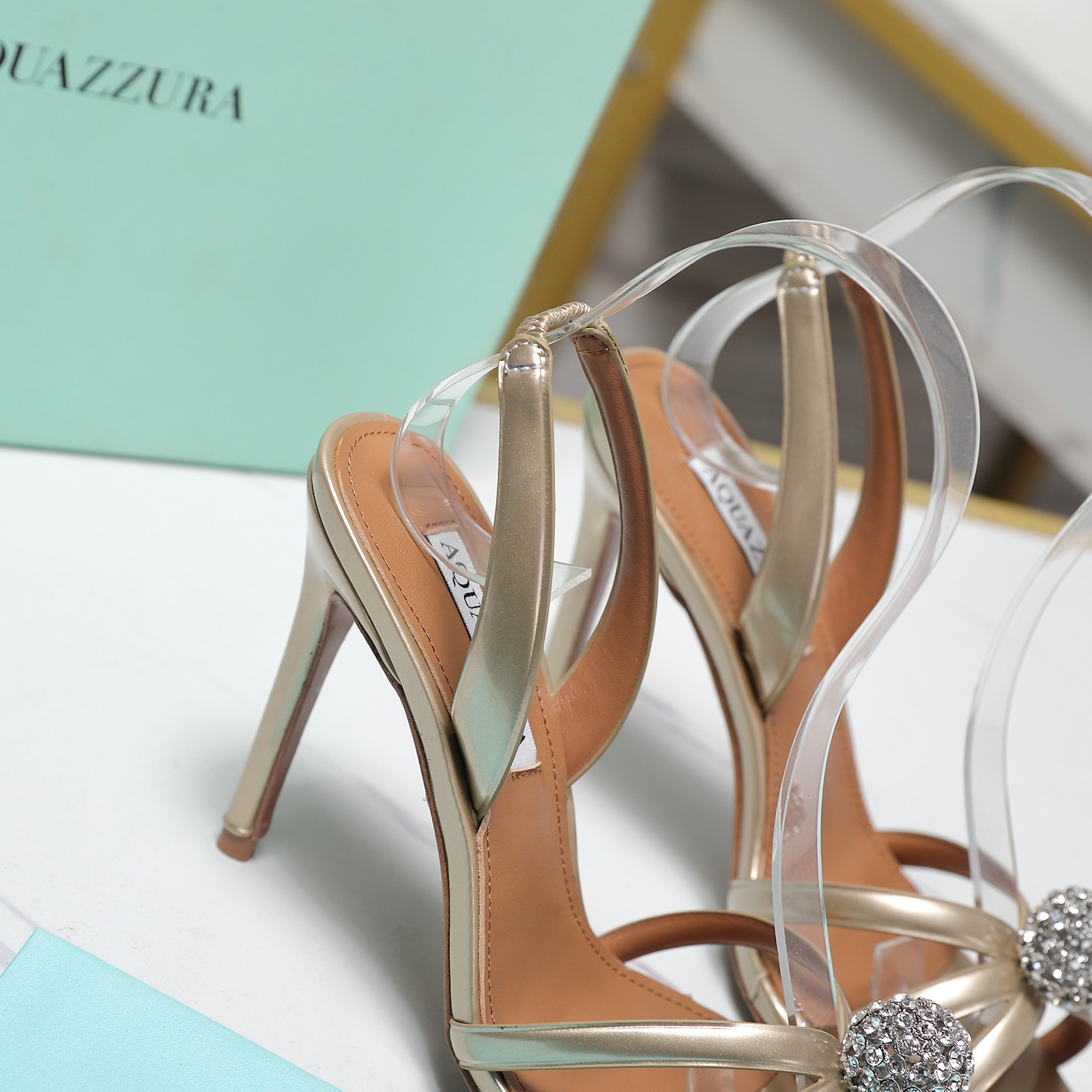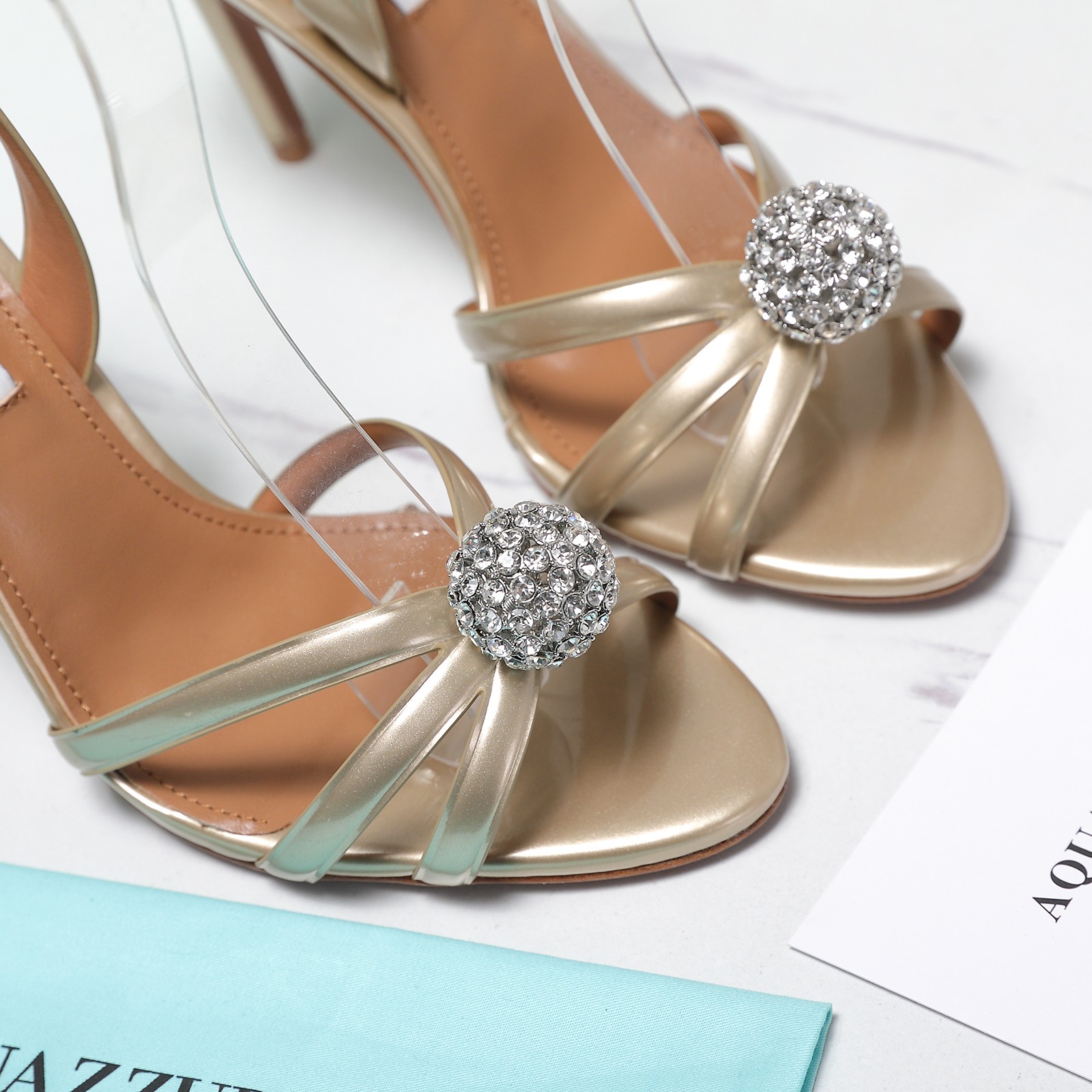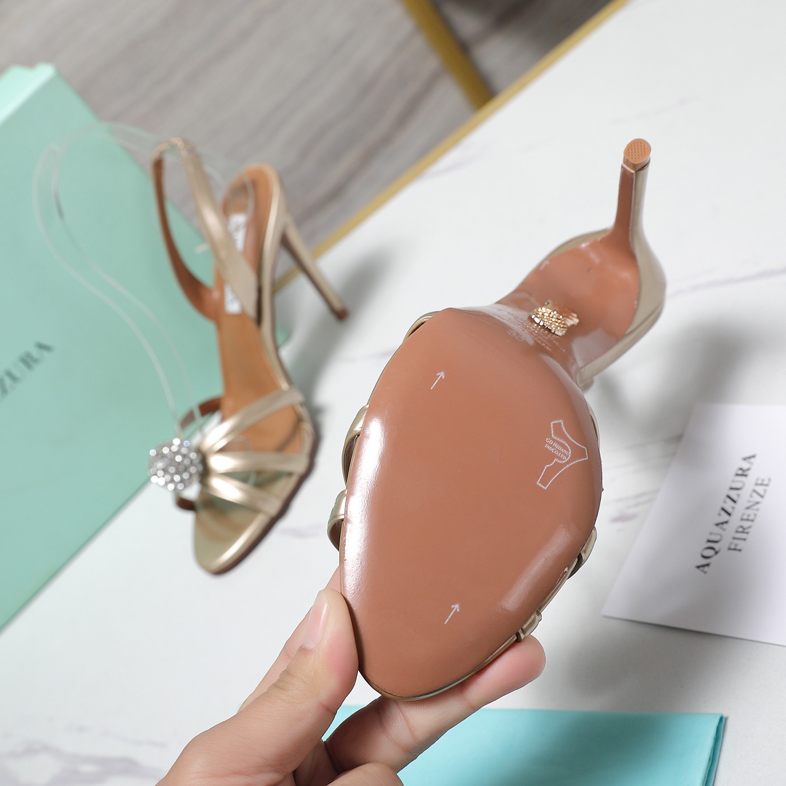 这款鞋子是AAAAA 1:1 质量 (非常棒). 使用了和原版一模一样的材料. 商标部分也保持了和Aquazzura一样. 图片拍摄是实物鞋子拍摄, 您所收到的实物保证和我们图片一模一样.
