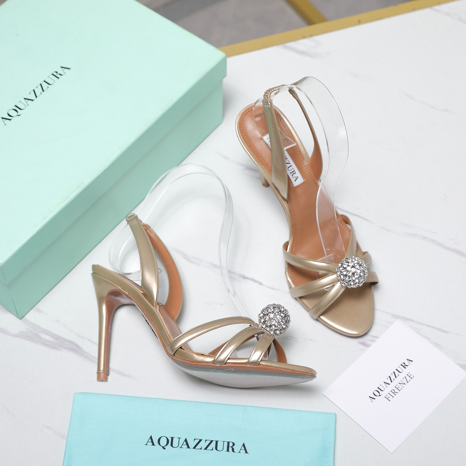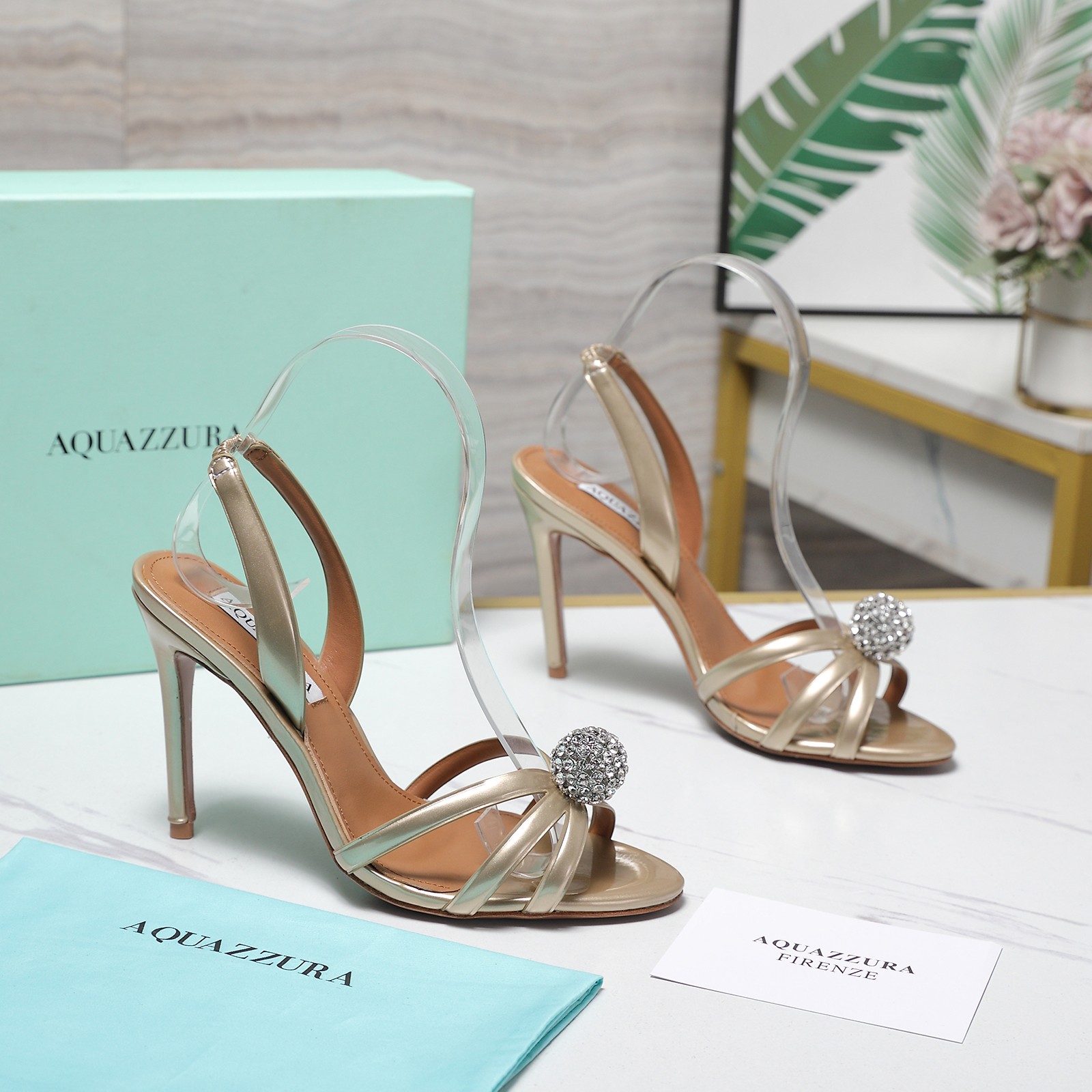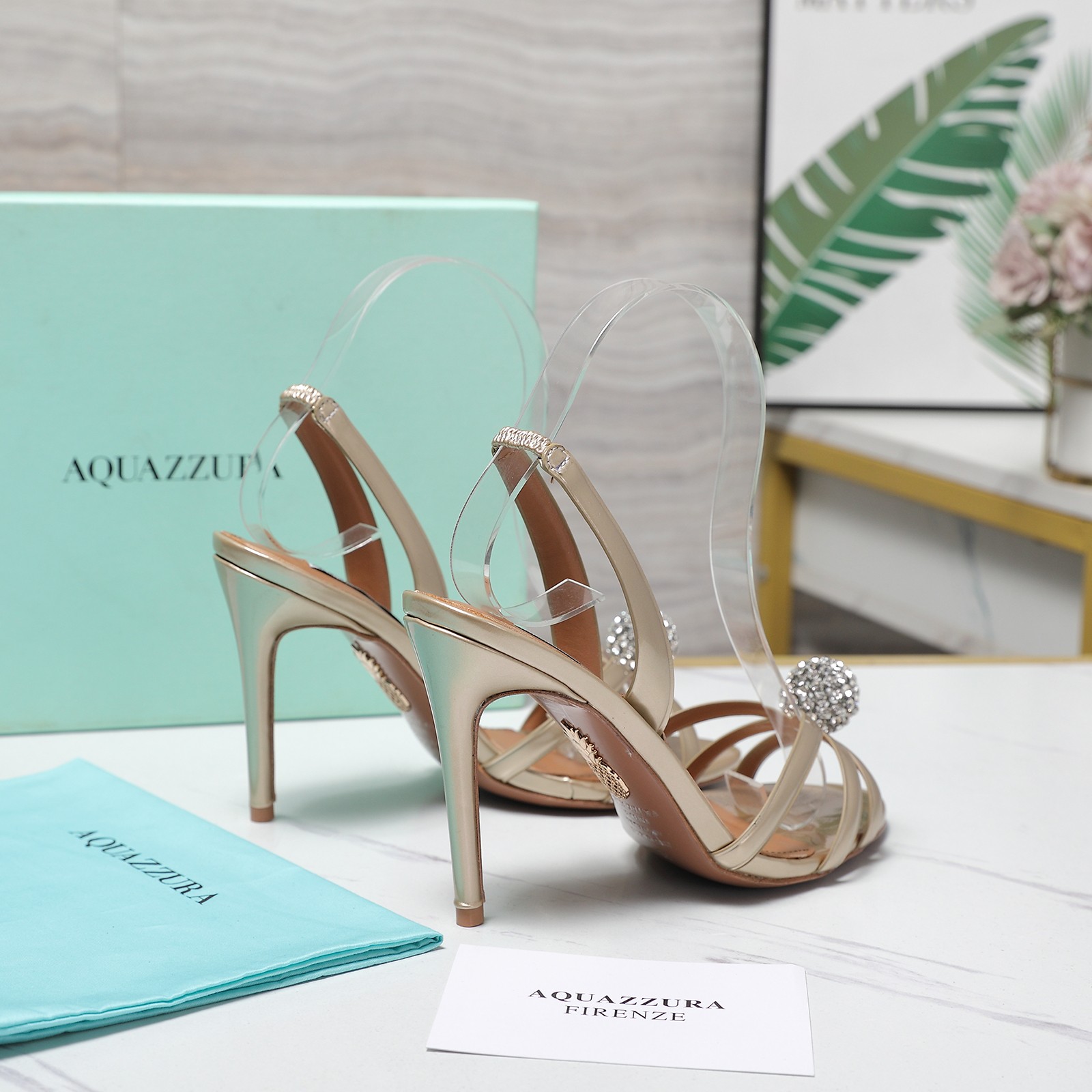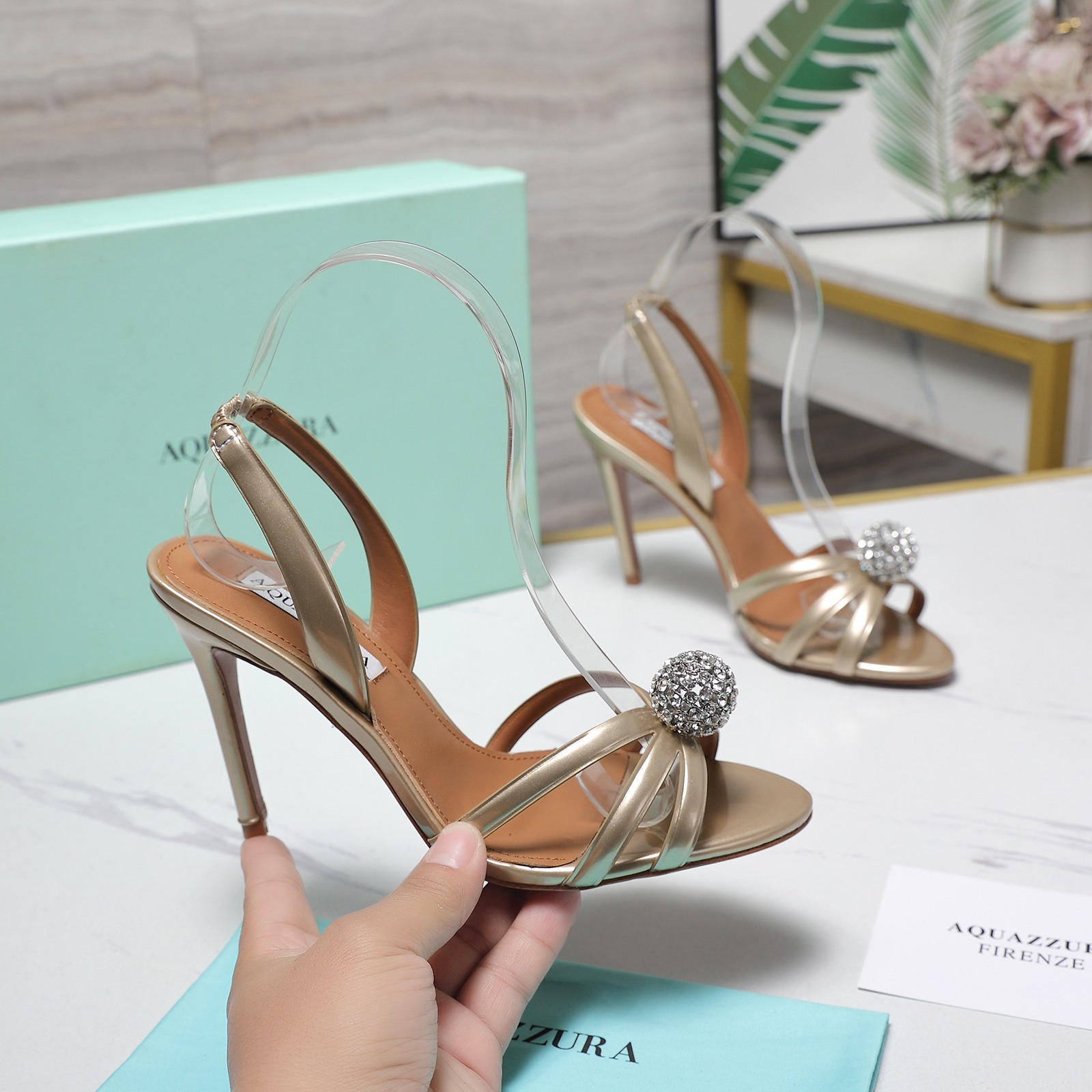 这款鞋子是AAAAA 1:1 质量 (非常棒). 使用了和原版一模一样的材料. 商标部分也保持了和Aquazzura一样. 图片拍摄是实物鞋子拍摄, 您所收到的实物保证和我们图片一模一样.