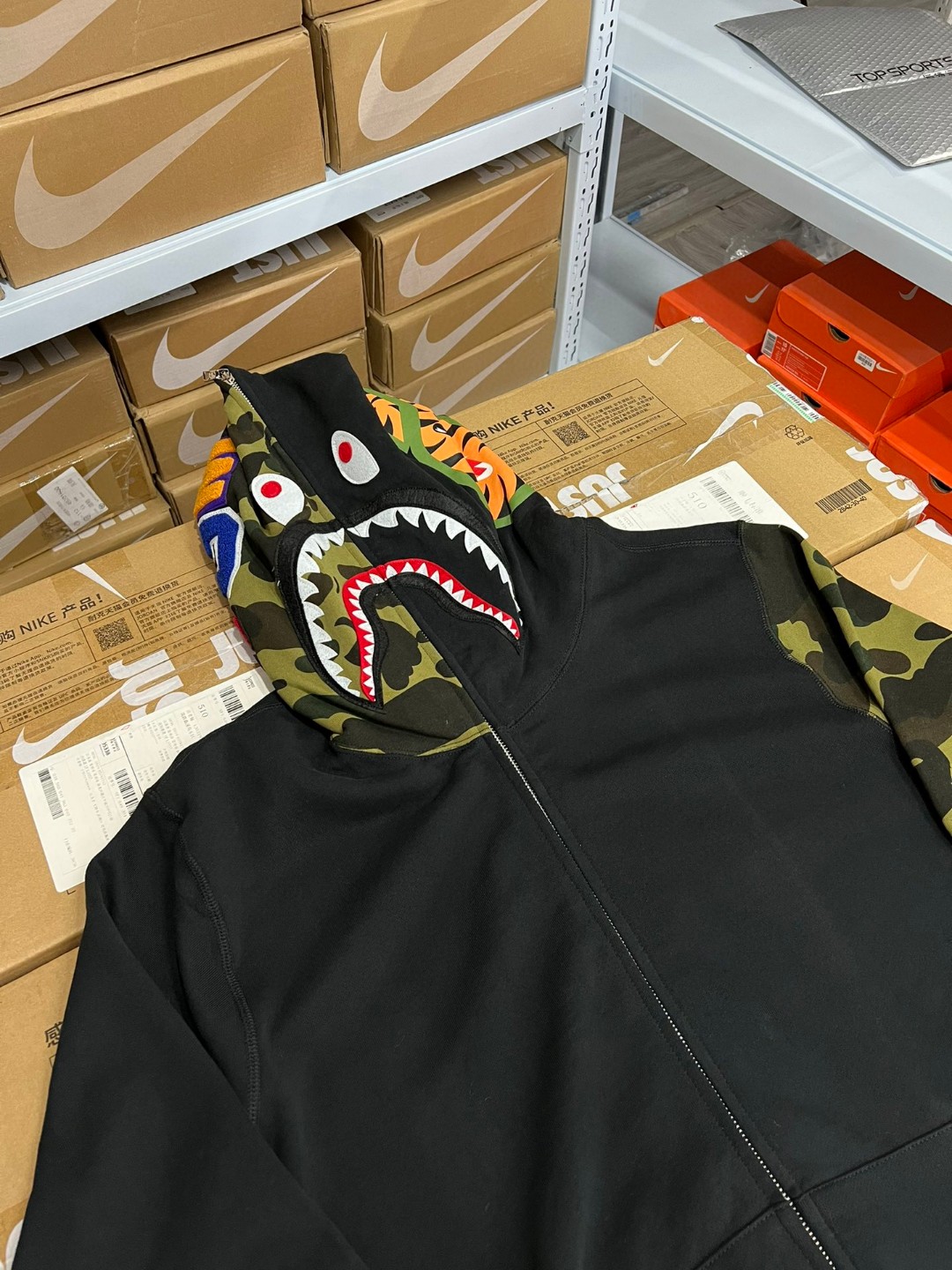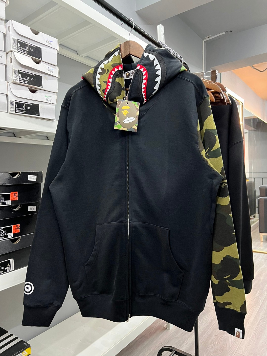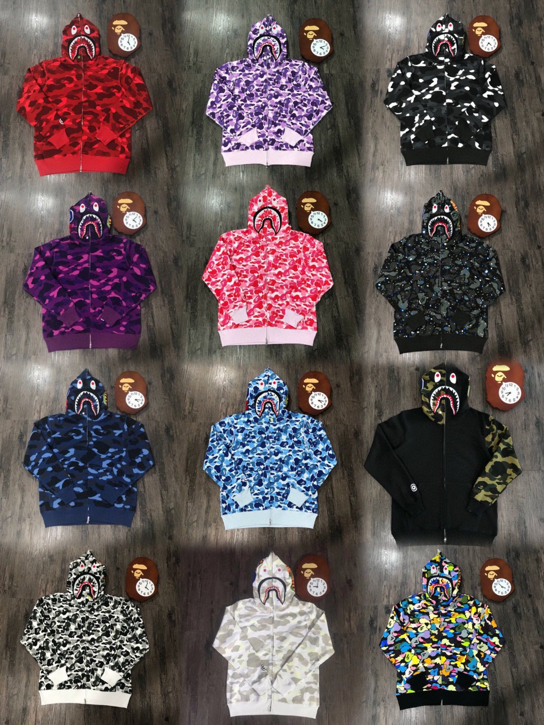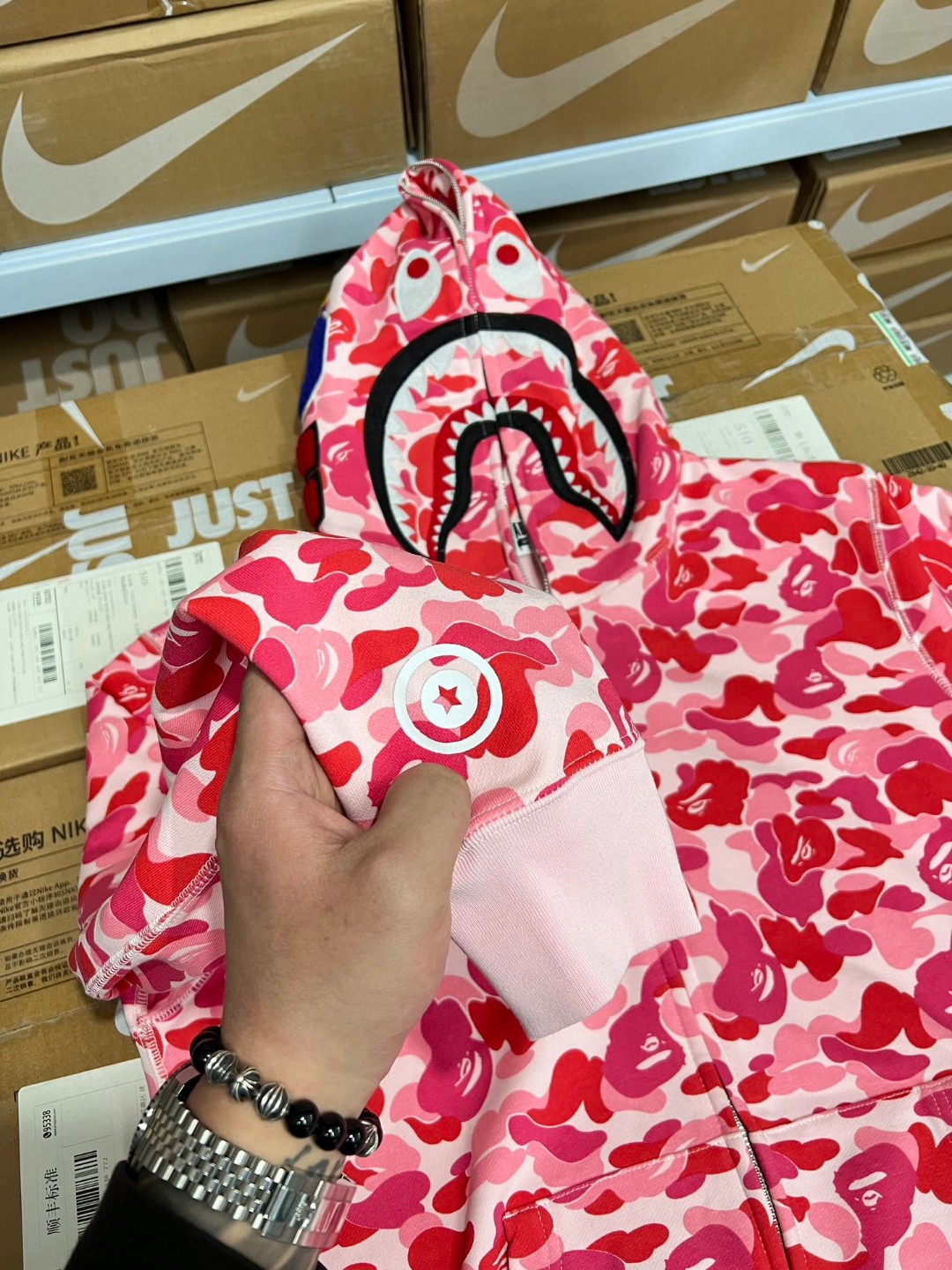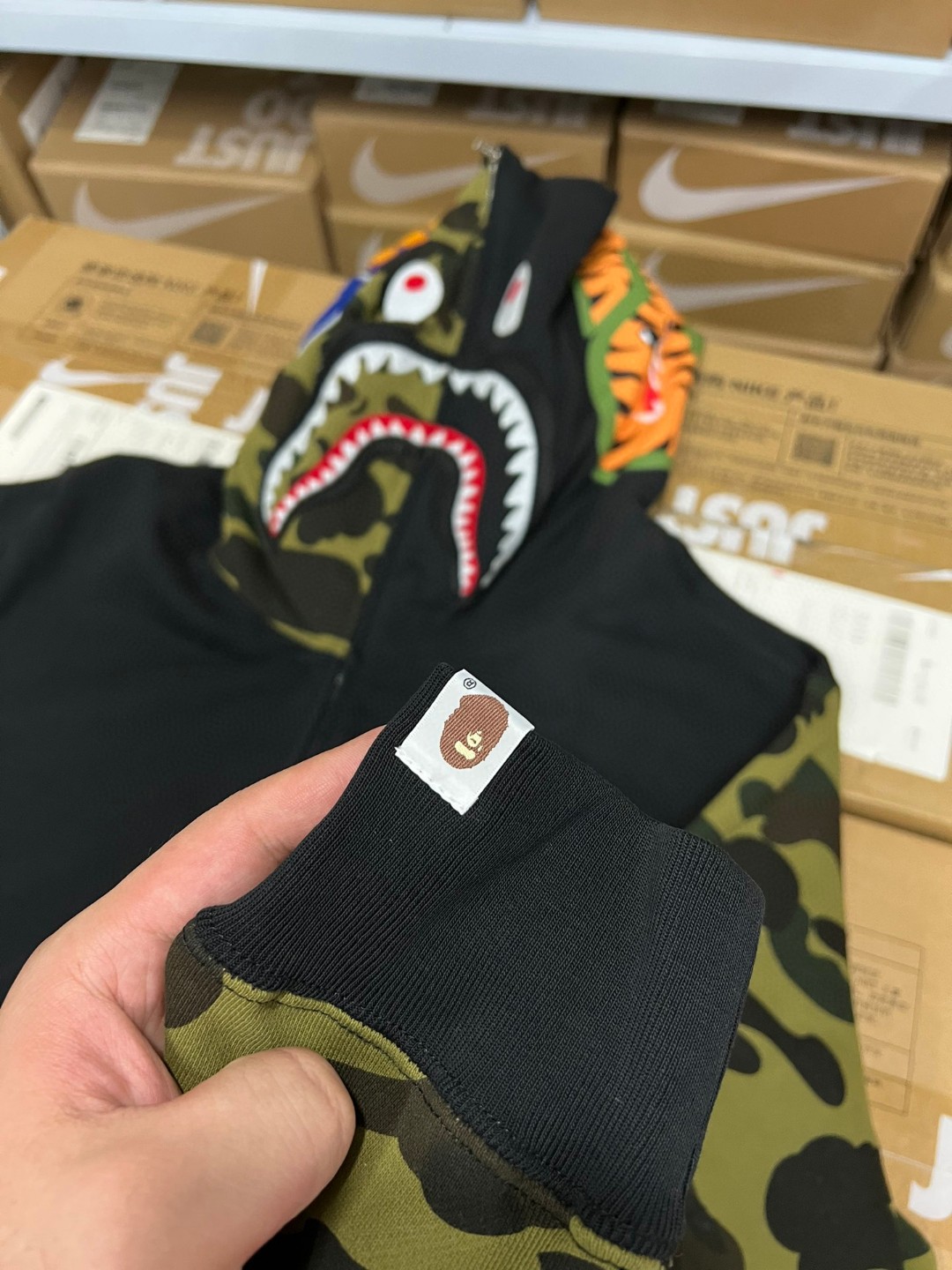 这款衣服是AAAAA 1:1 质量 (非常棒). 使用了和原版一模一样的材料. 商标部分也保持了和Bape一样. 图片拍摄是实物衣服拍摄, 您所收到的实物保证和我们图片一模一样.