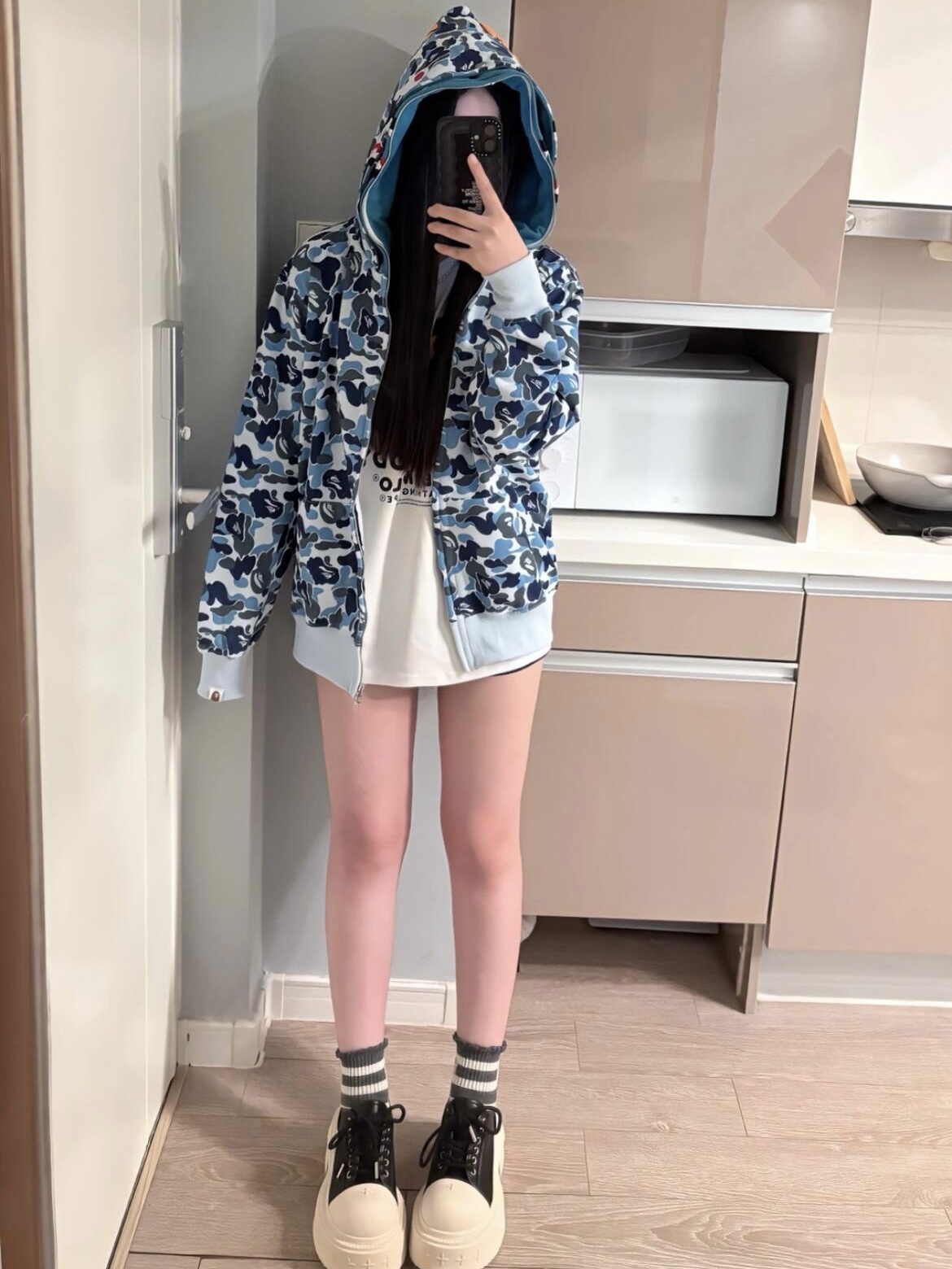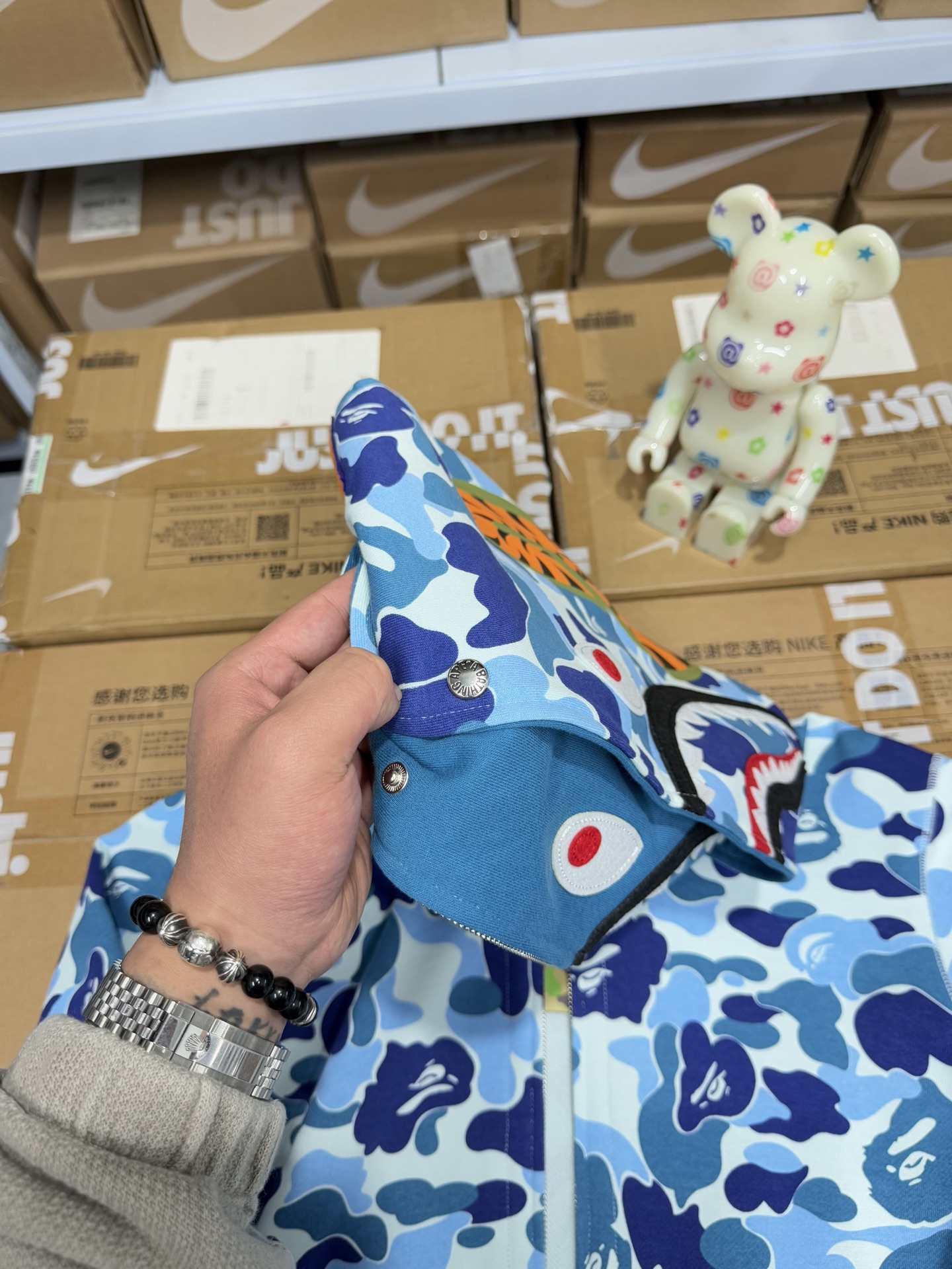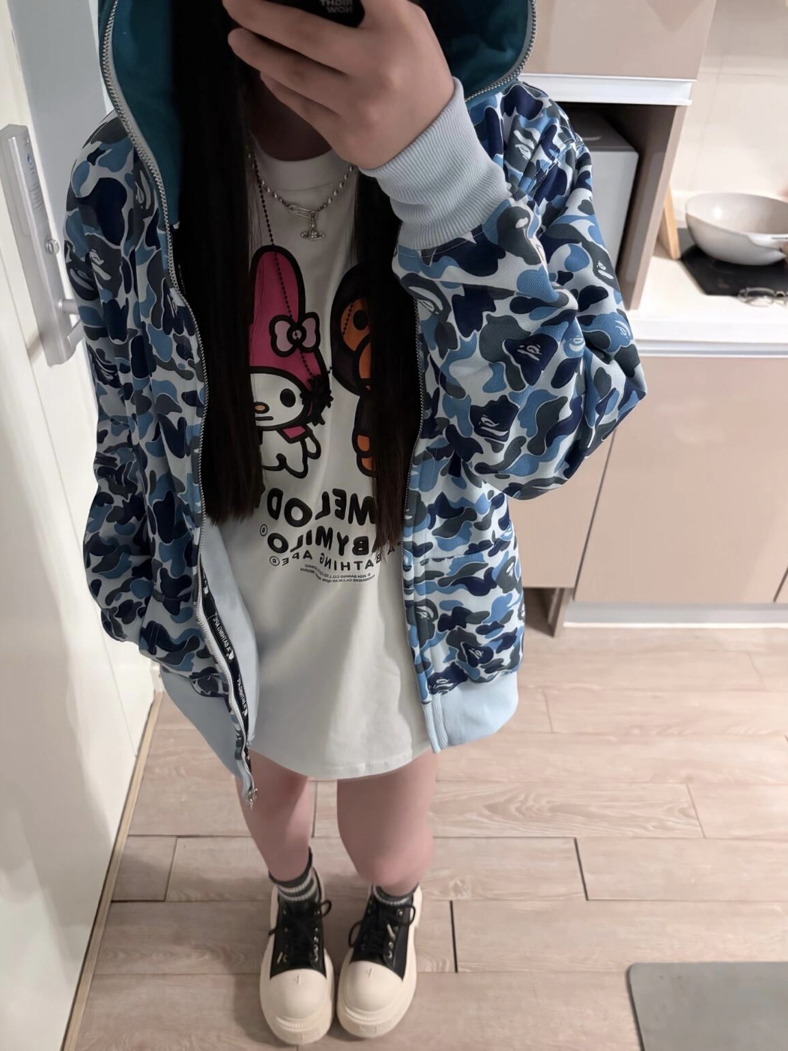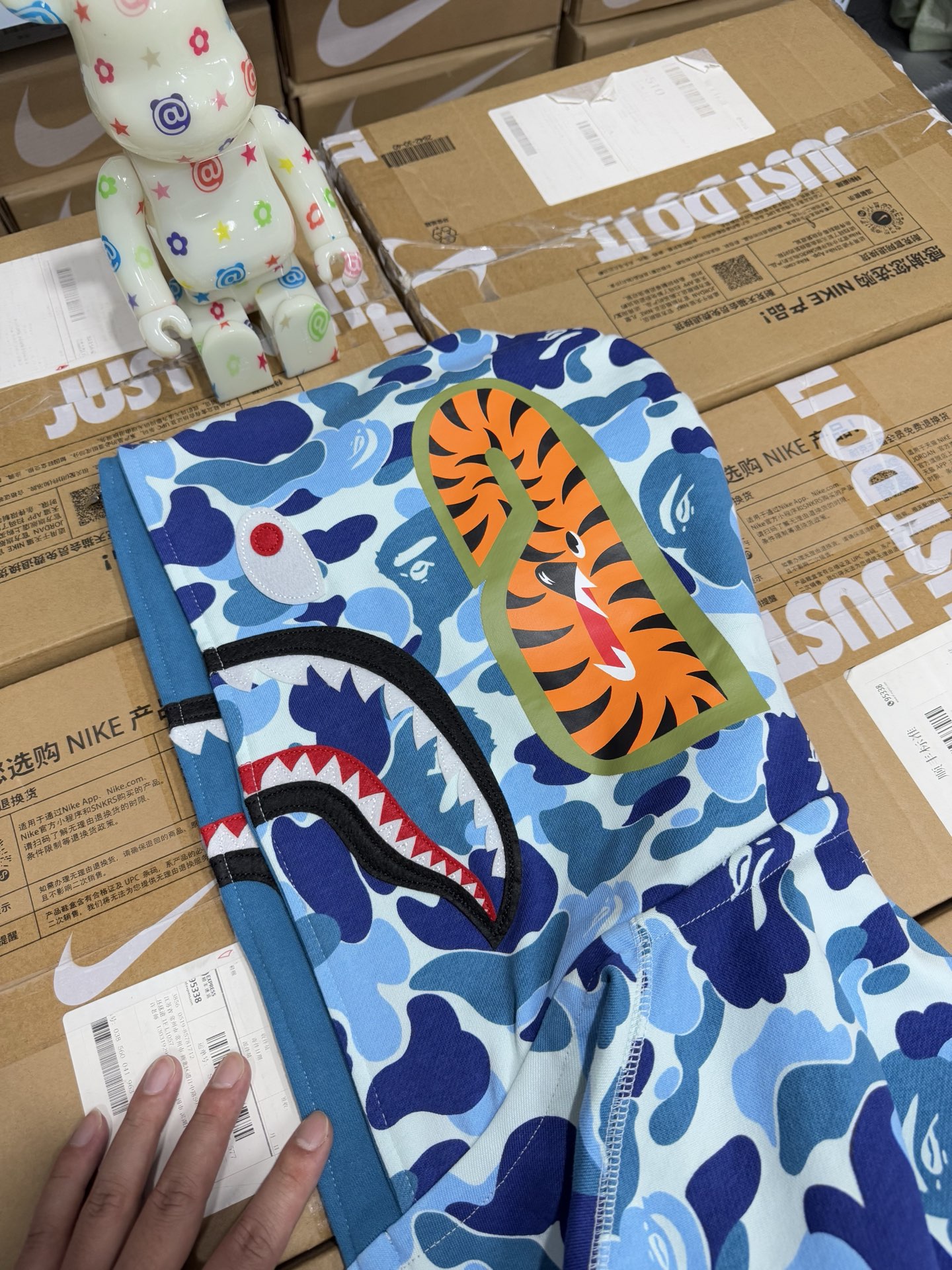 这款衣服是AAAAA 1:1 质量 (非常棒). 使用了和原版一模一样的材料. 商标部分也保持了和Bape一样. 图片拍摄是实物衣服拍摄, 您所收到的实物保证和我们图片一模一样.