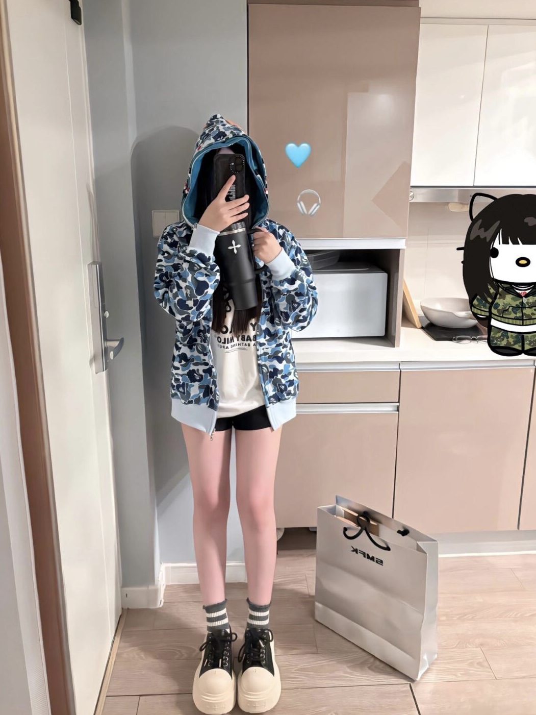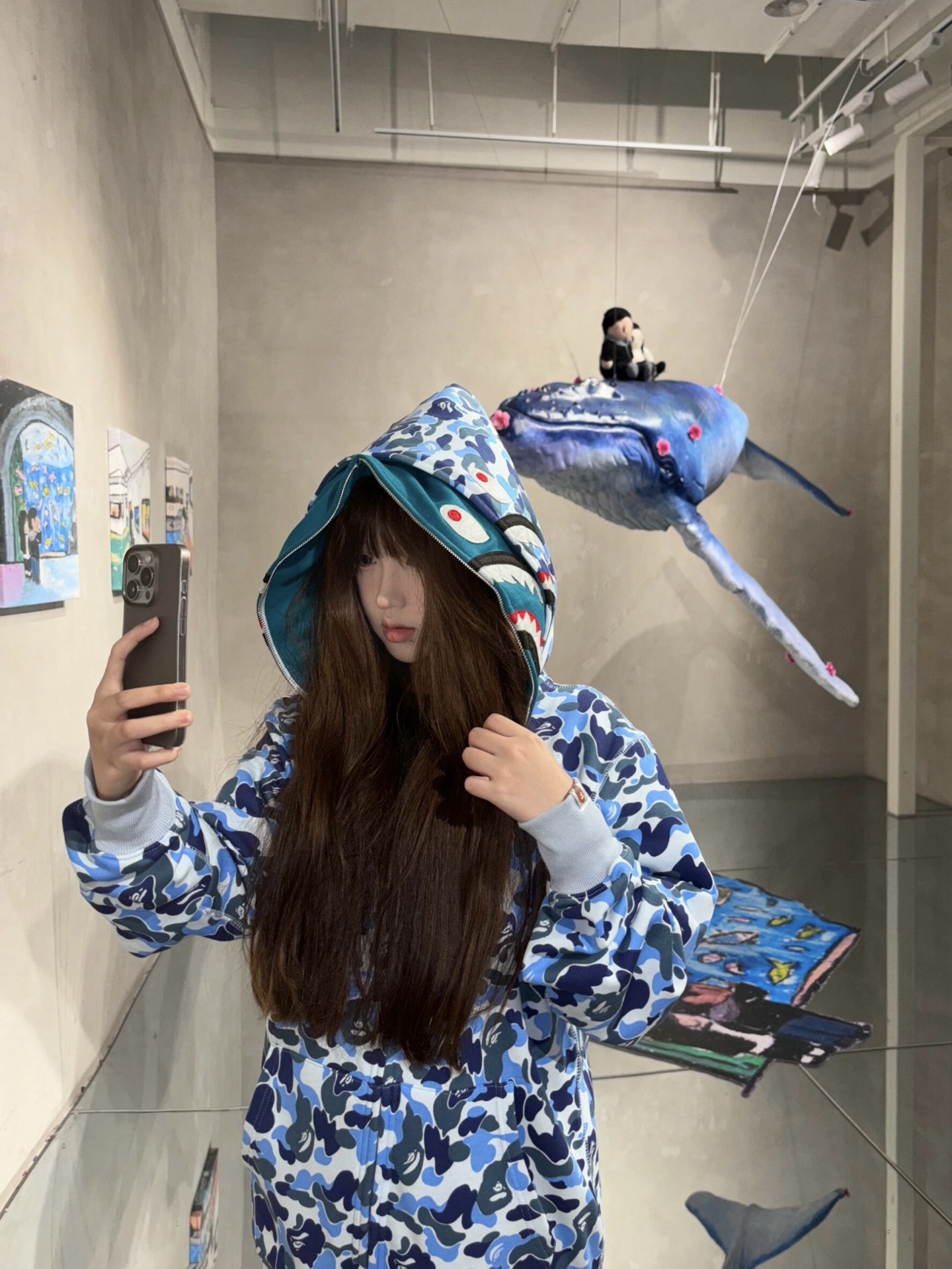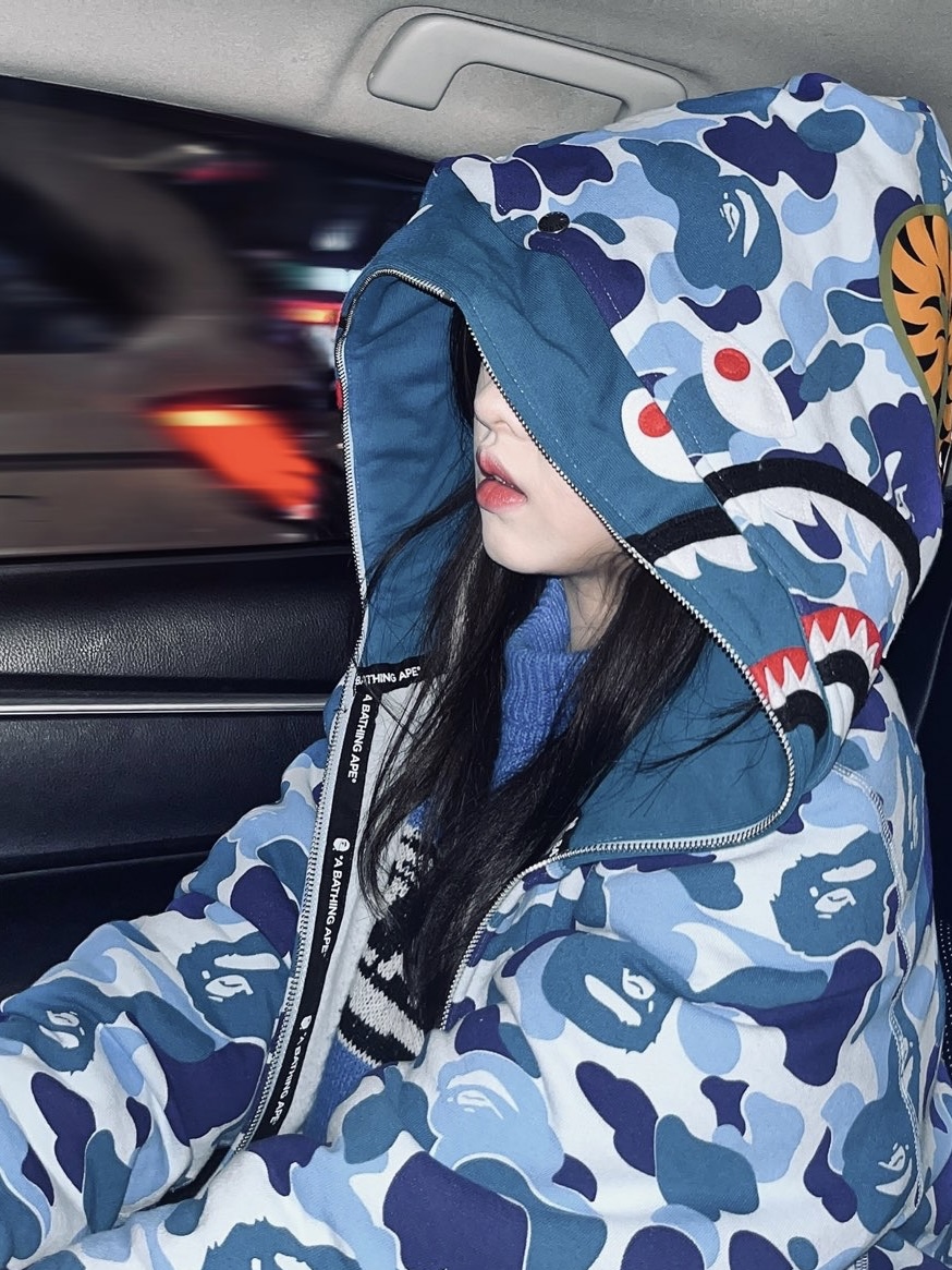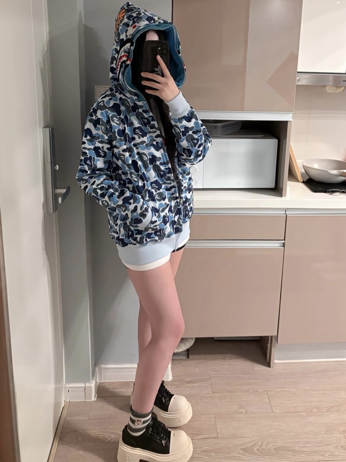这款衣服是AAAAA 1:1 质量 (非常棒). 使用了和原版一模一样的材料. 商标部分也保持了和Bape一样. 图片拍摄是实物衣服拍摄, 您所收到的实物保证和我们图片一模一样.