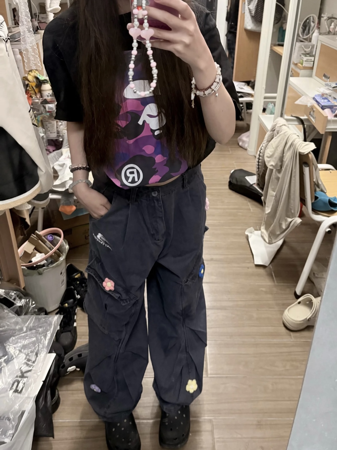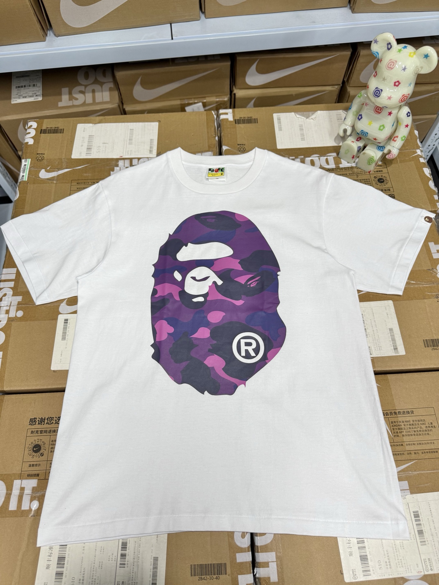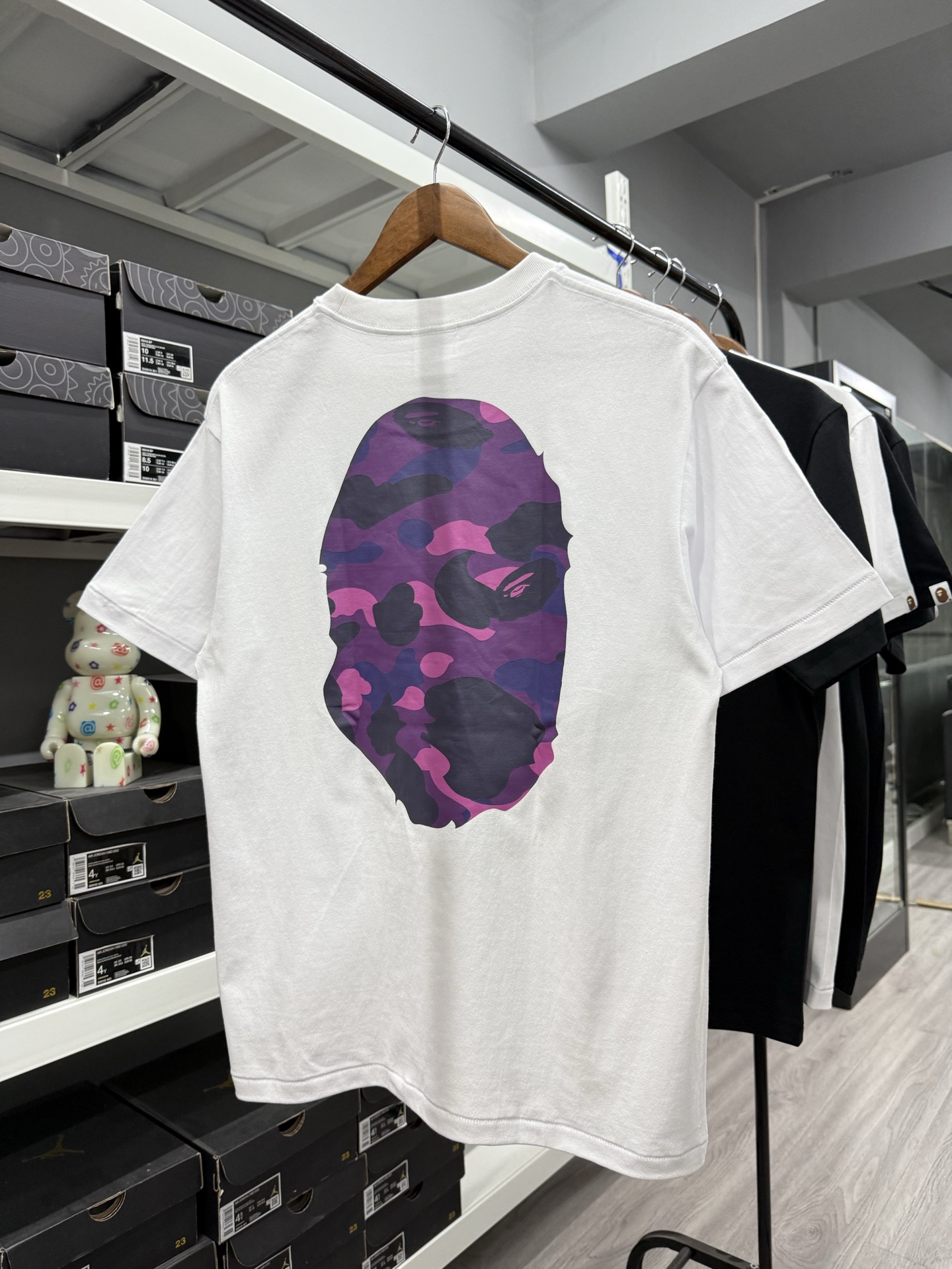 这款衣服是AAAAA 1:1 质量 (非常棒). 使用了和原版一模一样的材料. 商标部分也保持了和Bape一样. 图片拍摄是实物衣服拍摄, 您所收到的实物保证和我们图片一模一样.