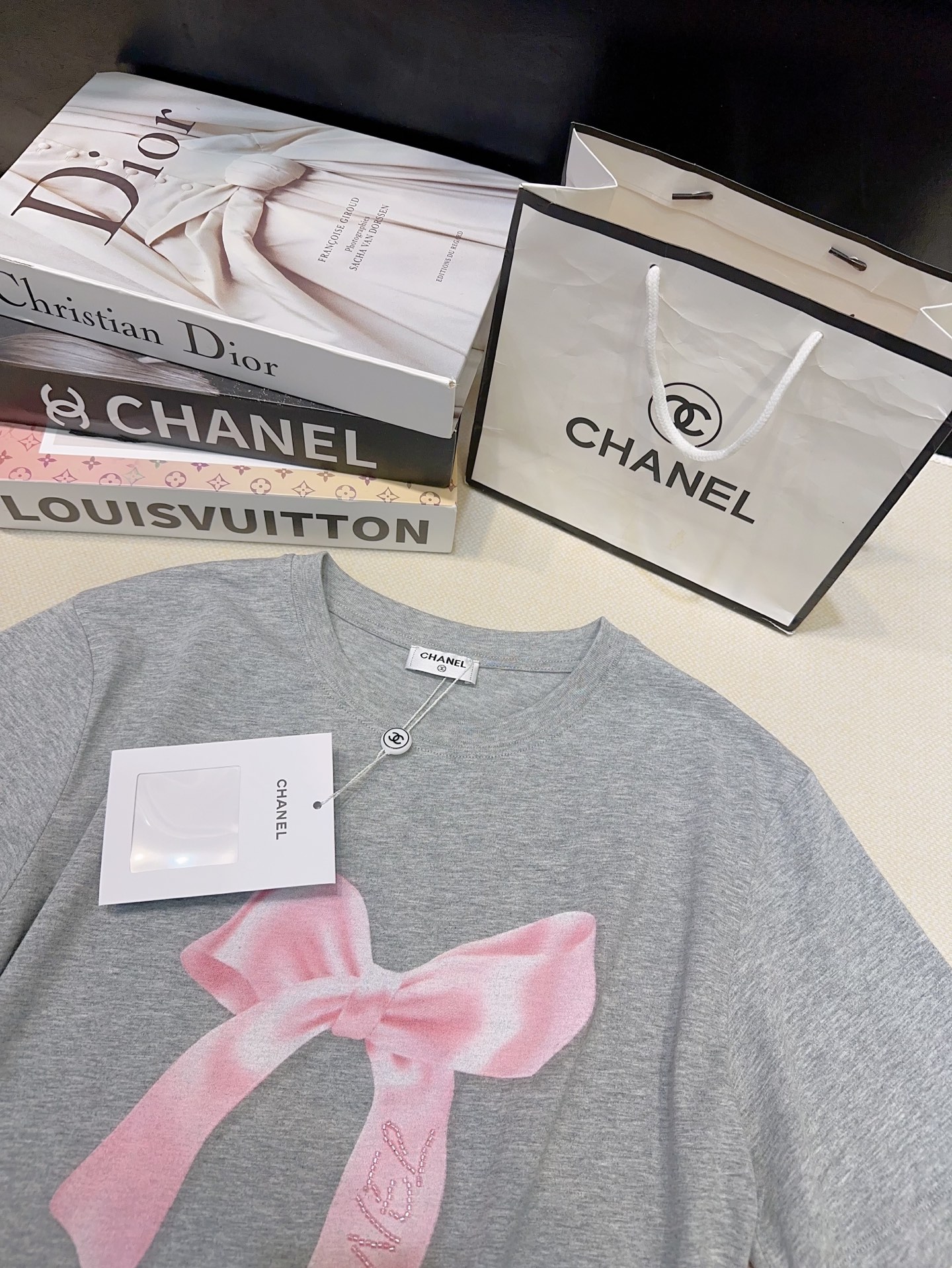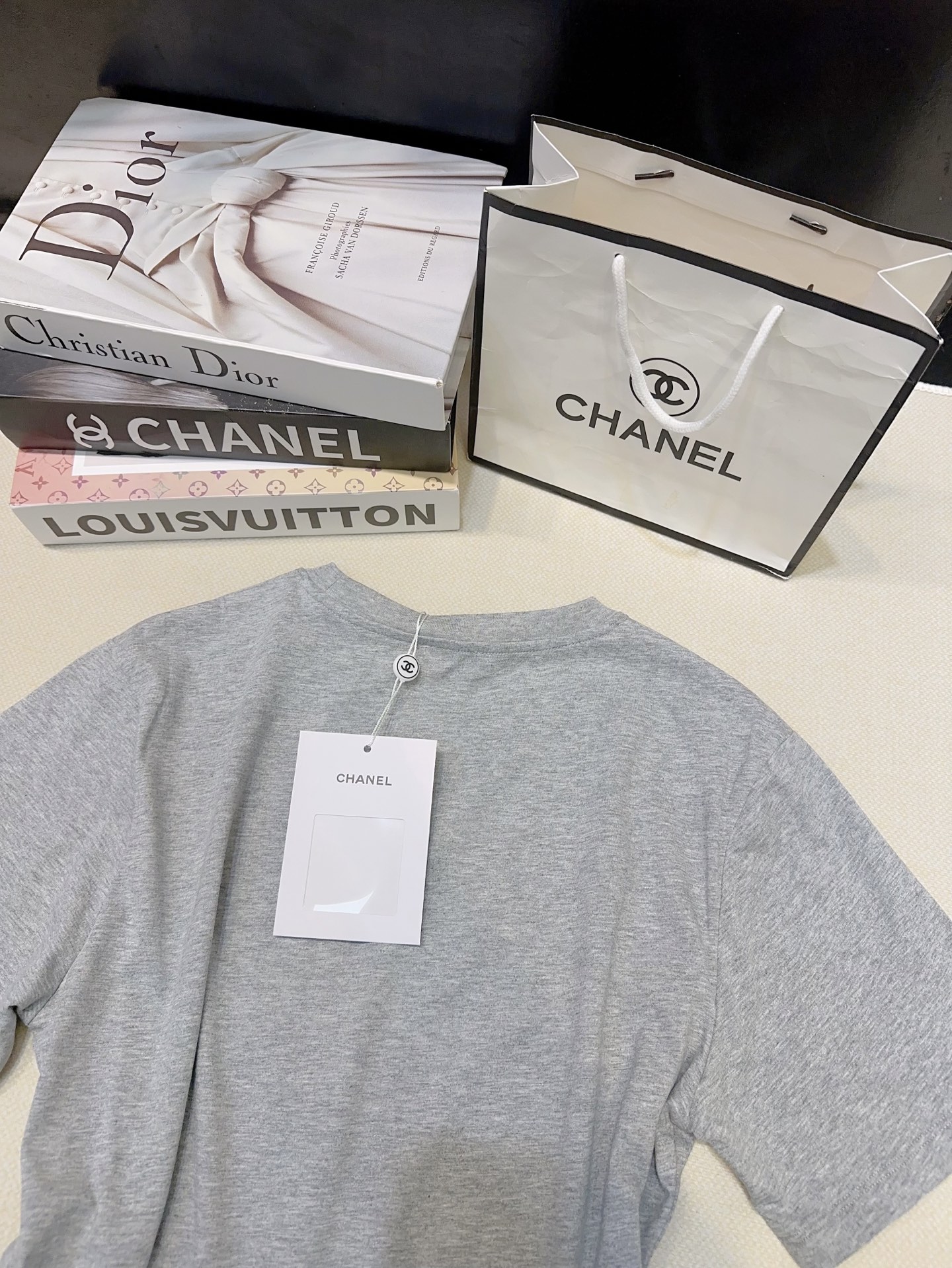 这款衣服是AAAAA 1:1 质量 (非常棒). 使用了和原版一模一样的材料. 商标部分也保持了和香奈儿/Chanel一样. 图片拍摄是实物衣服拍摄, 您所收到的实物保证和我们图片一模一样.