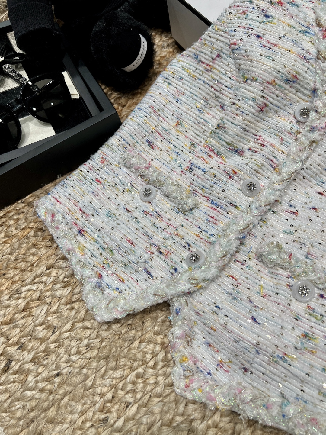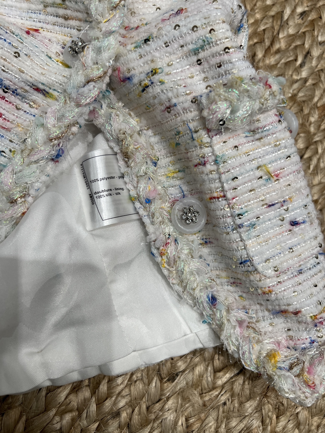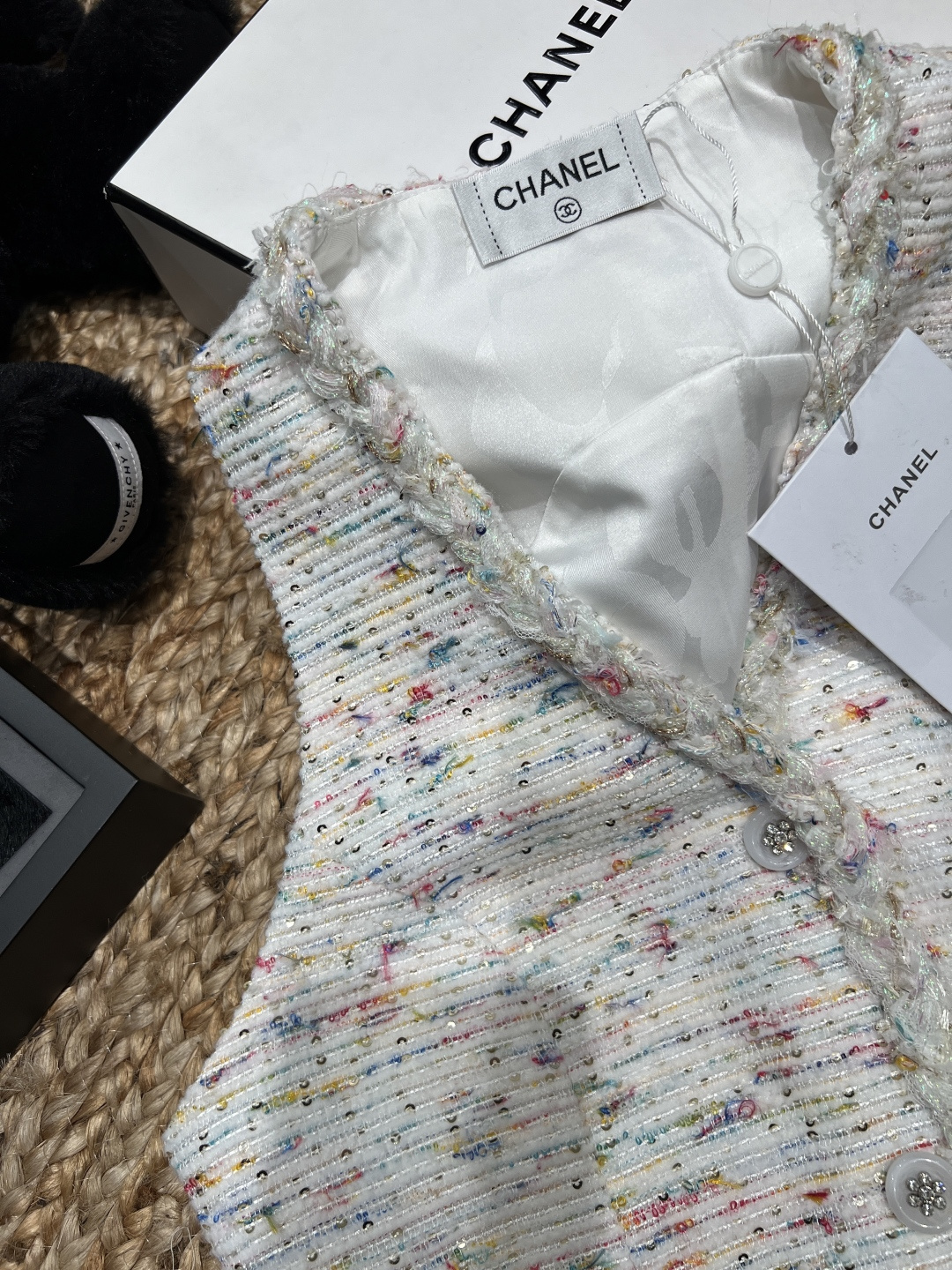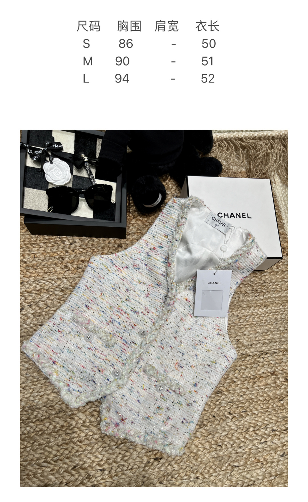 这款衣服是AAAAA 1:1 质量 (非常棒). 使用了和原版一模一样的材料. 商标部分也保持了和香奈儿/Chanel一样. 图片拍摄是实物衣服拍摄, 您所收到的实物保证和我们图片一模一样.