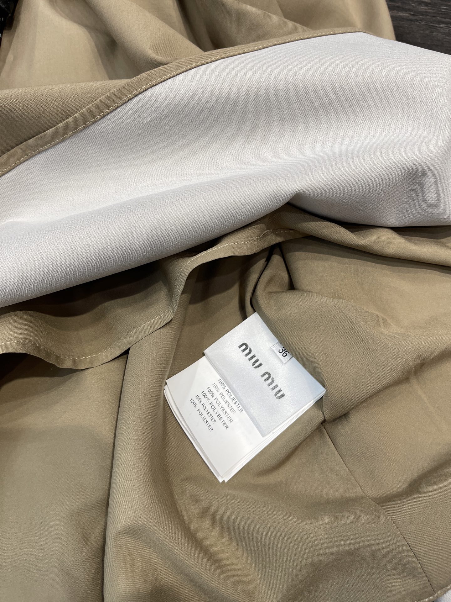 这款衣服是AAAAA 1:1 质量 (非常棒). 使用了和原版一模一样的材料. 商标部分也保持了和缪缪/Miu Miu一样. 图片拍摄是实物衣服拍摄, 您所收到的实物保证和我们图片一模一样.