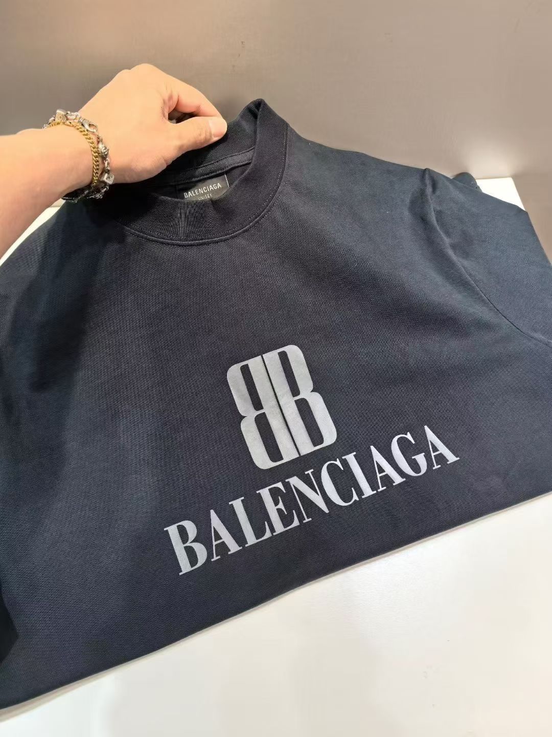 这款衣服是AAAAA 1:1 质量 (非常棒). 使用了和原版一模一样的材料. 商标部分也保持了和巴黎世家/Balenciaga一样. 图片拍摄是实物衣服拍摄, 您所收到的实物保证和我们图片一模一样.