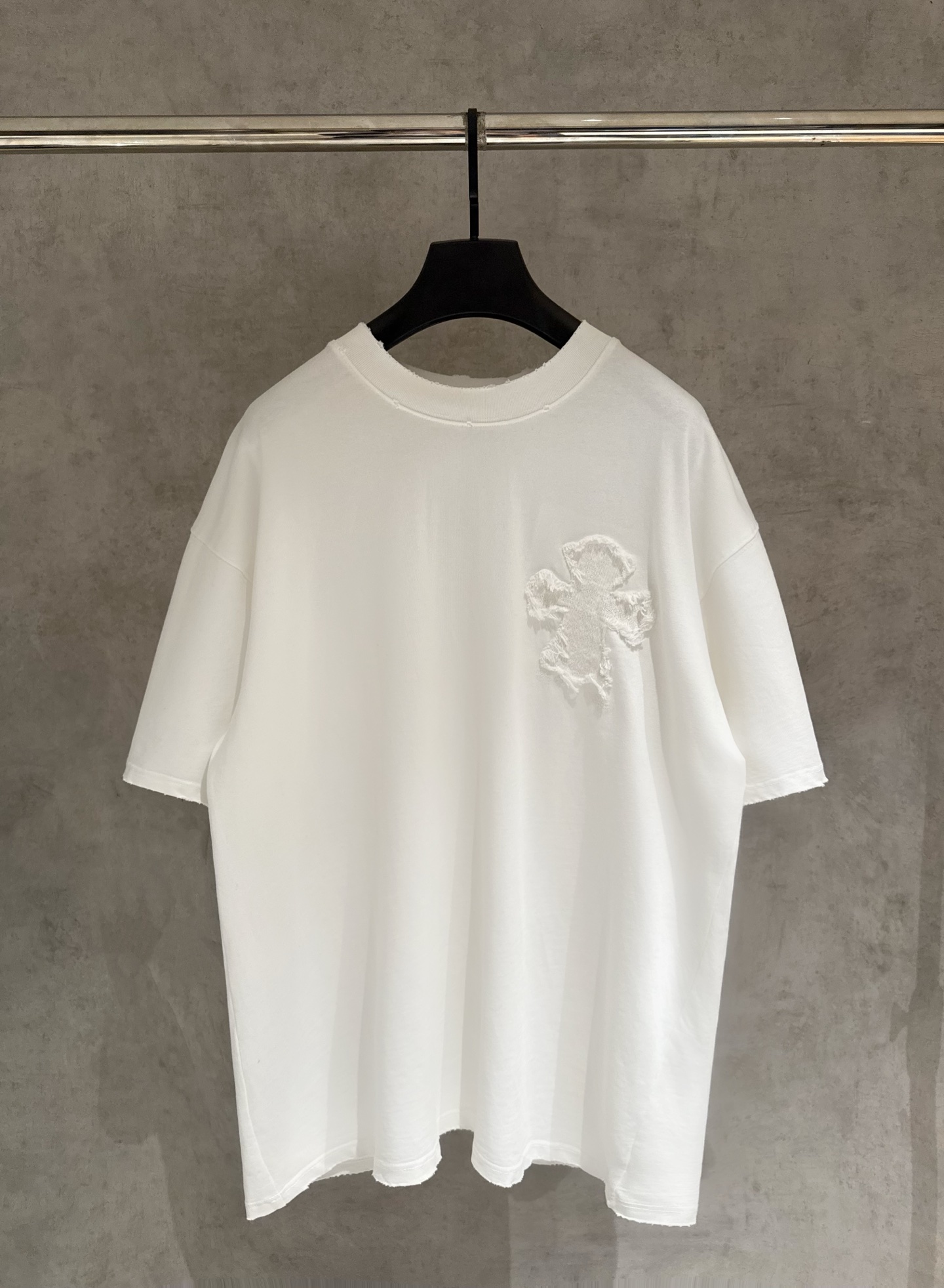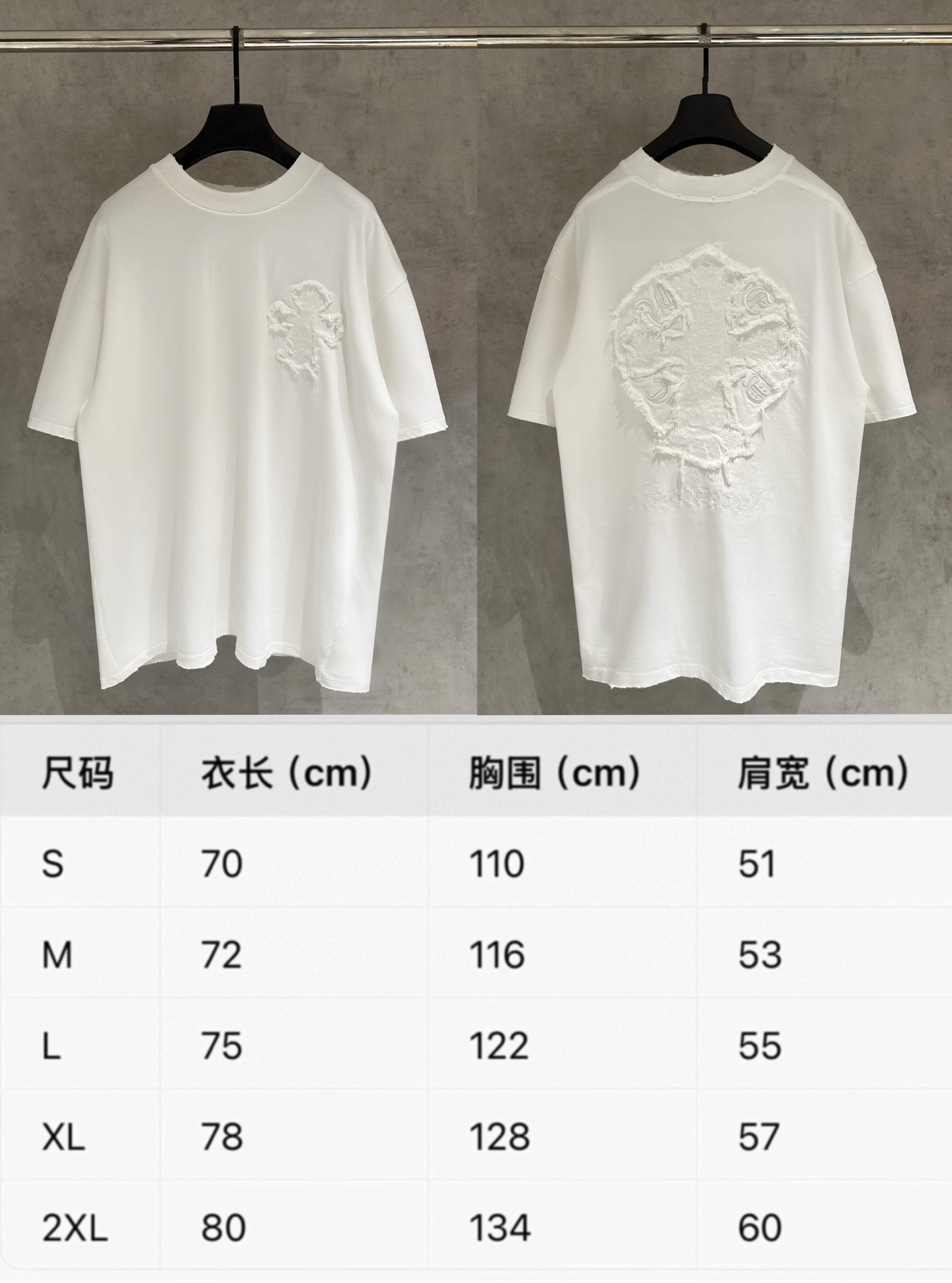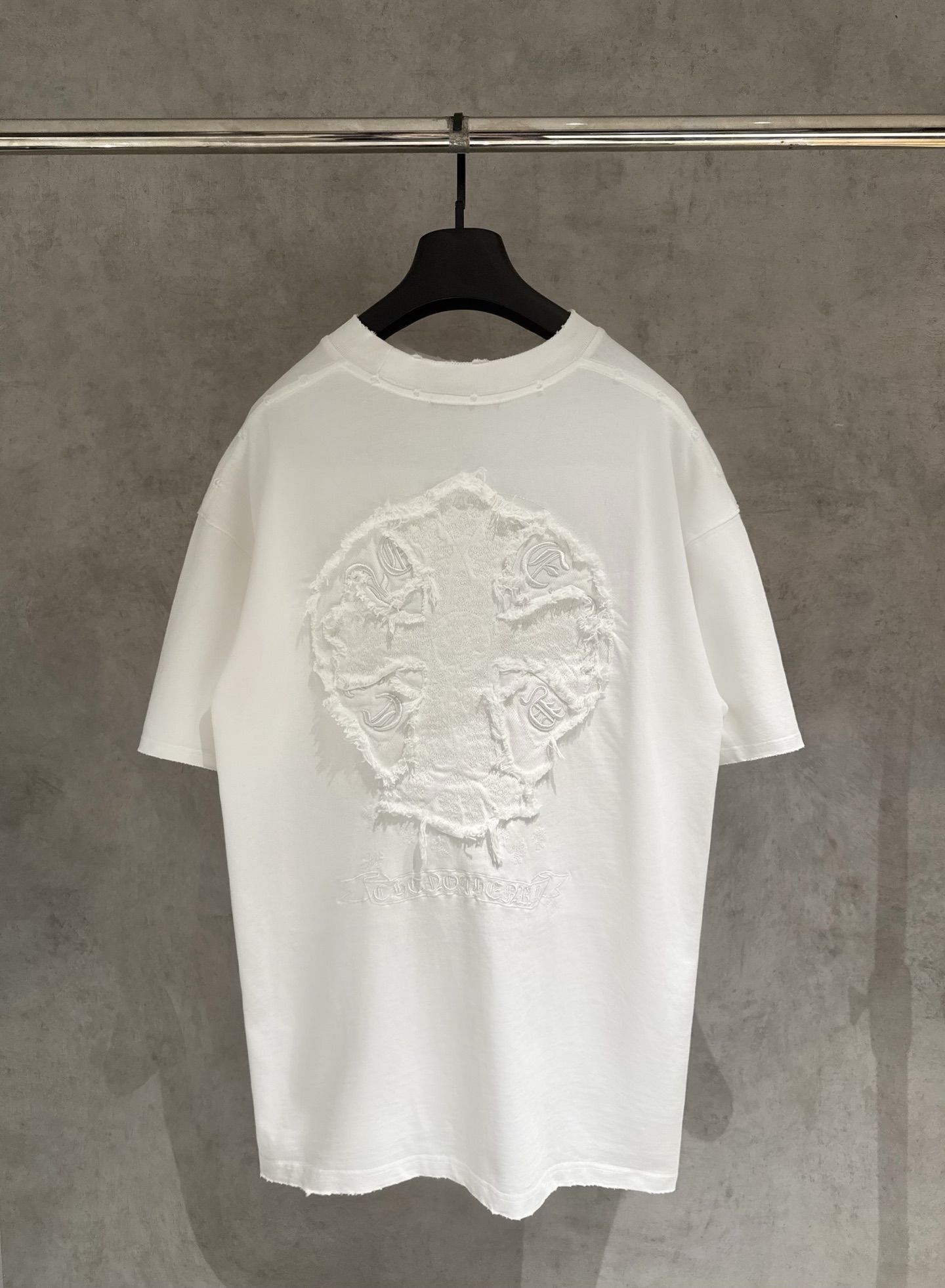 这款衣服是AAAAA 1:1 质量 (非常棒). 使用了和原版一模一样的材料. 商标部分也保持了和克罗心/Chrome Hearts一样. 图片拍摄是实物衣服拍摄, 您所收到的实物保证和我们图片一模一样.