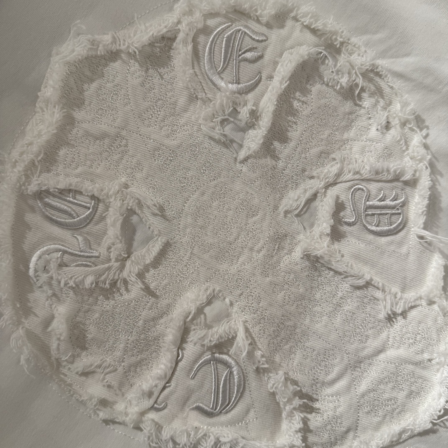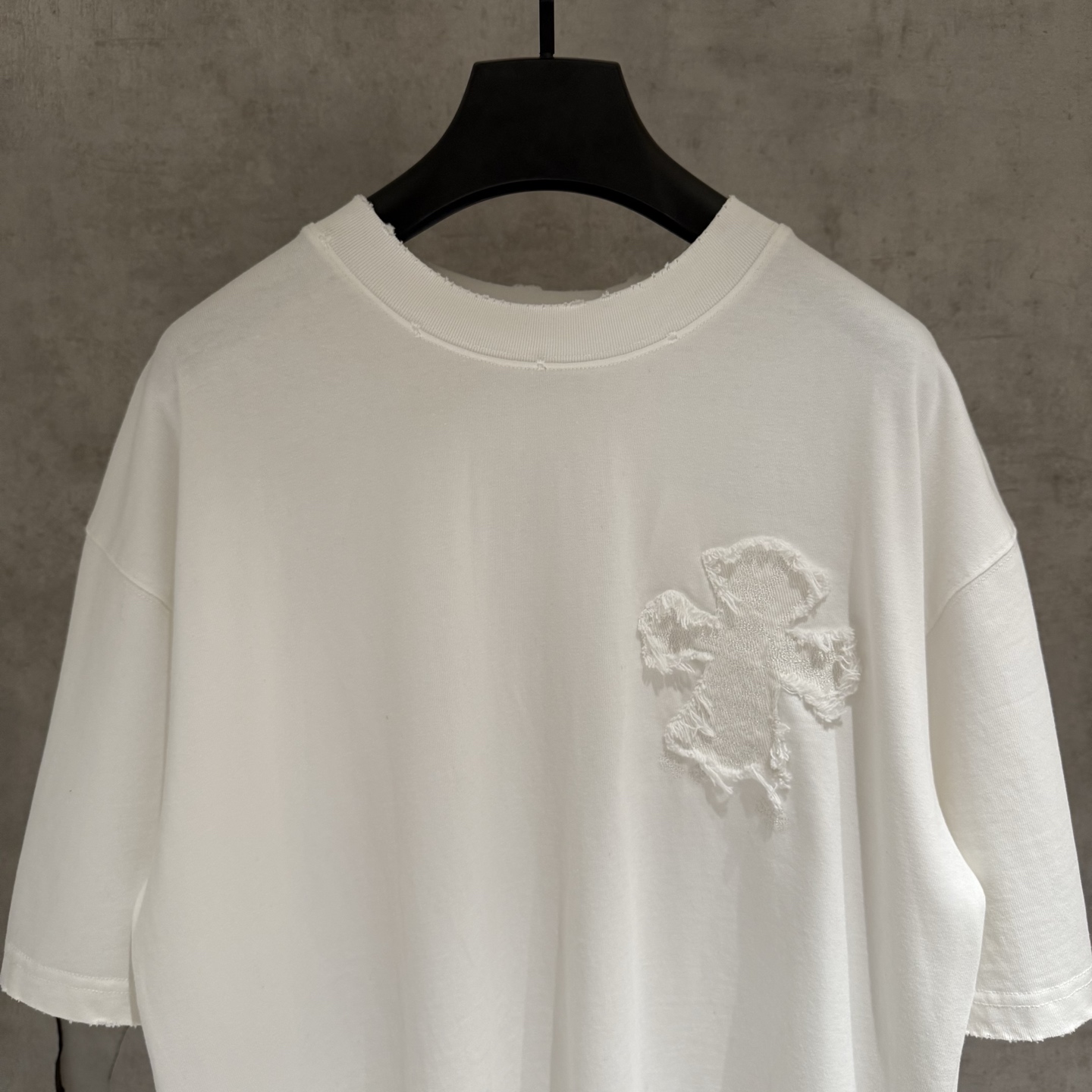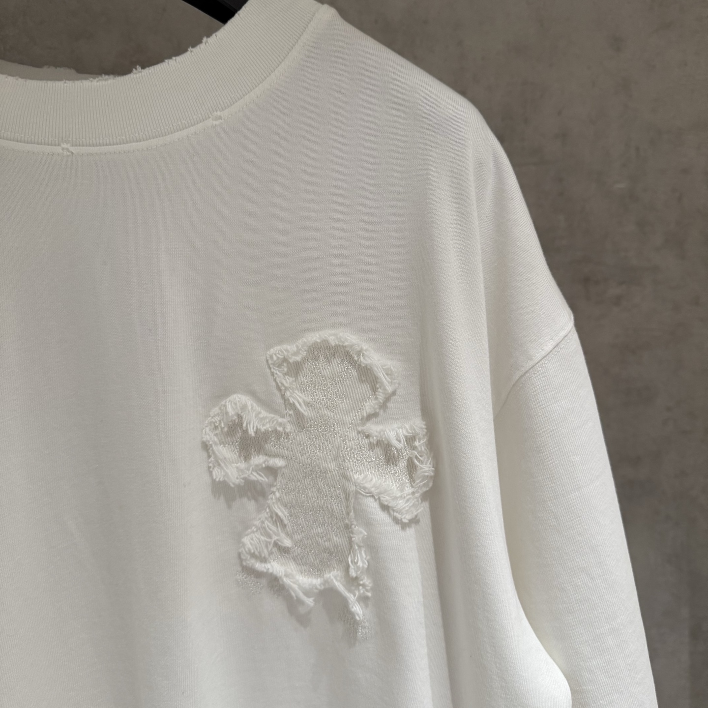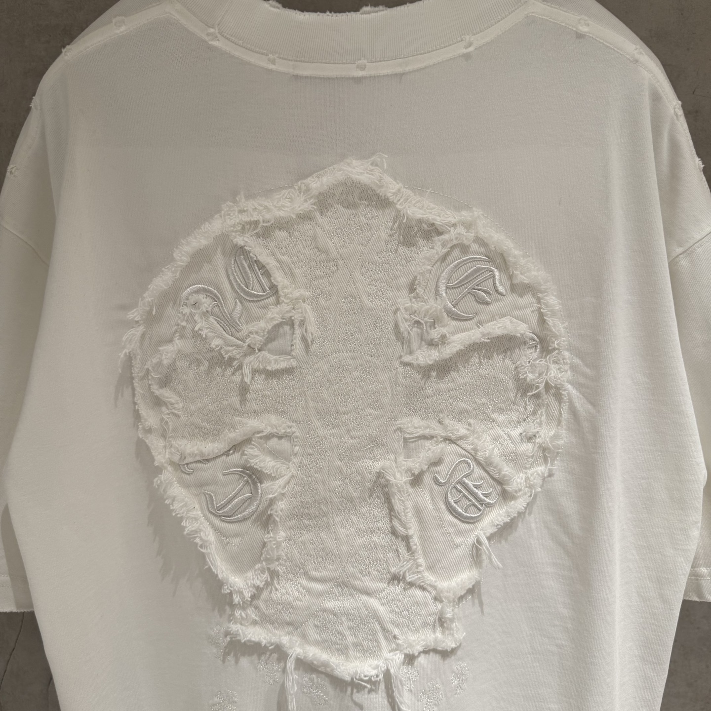 这款衣服是AAAAA 1:1 质量 (非常棒). 使用了和原版一模一样的材料. 商标部分也保持了和克罗心/Chrome Hearts一样. 图片拍摄是实物衣服拍摄, 您所收到的实物保证和我们图片一模一样.
