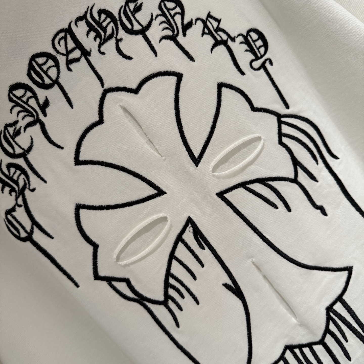 这款衣服是AAAAA 1:1 质量 (非常棒). 使用了和原版一模一样的材料. 商标部分也保持了和克罗心/Chrome Hearts一样. 图片拍摄是实物衣服拍摄, 您所收到的实物保证和我们图片一模一样.