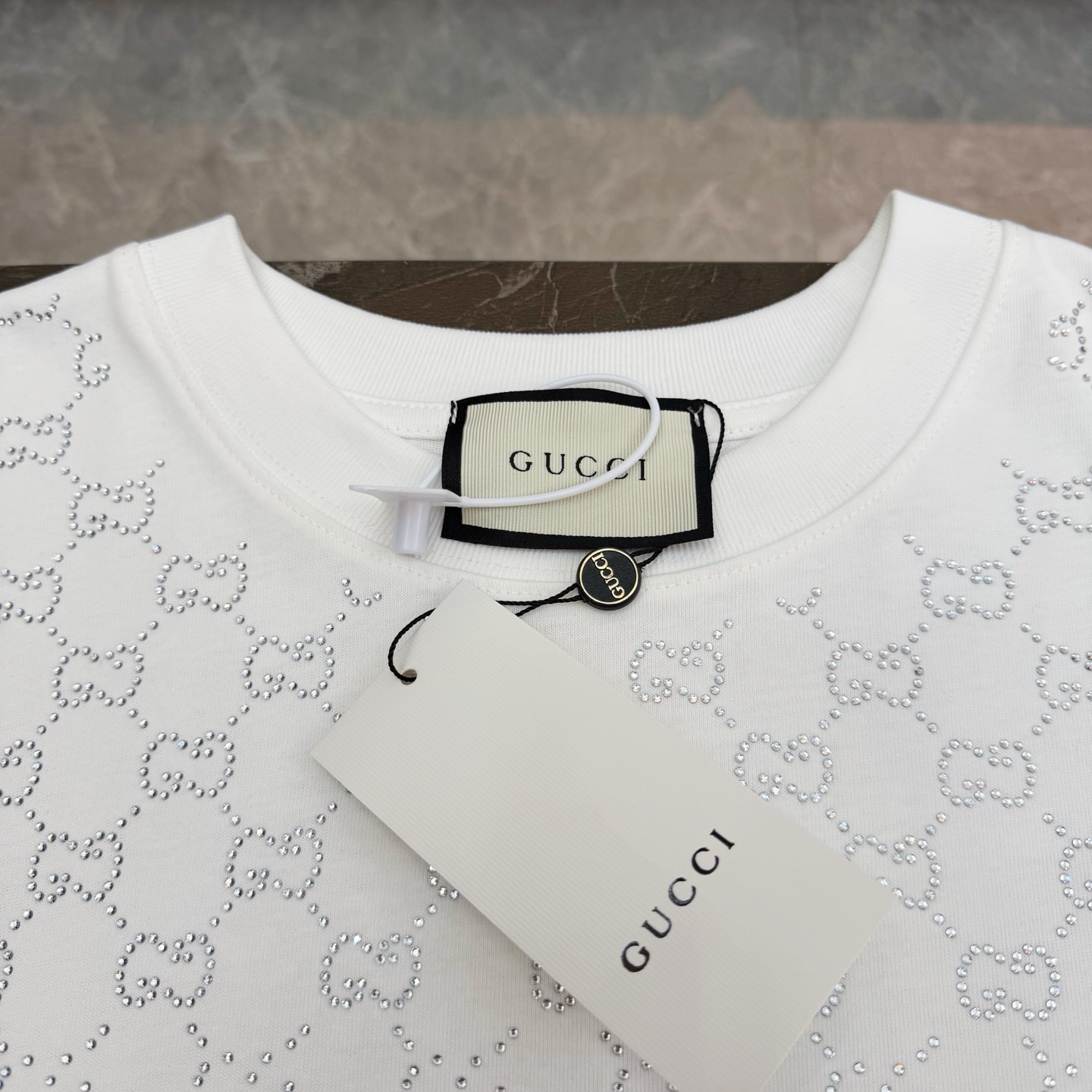 这款衣服是AAAAA 1:1 质量 (非常棒). 使用了和原版一模一样的材料. 商标部分也保持了和古奇/Gucci一样. 图片拍摄是实物衣服拍摄, 您所收到的实物保证和我们图片一模一样.