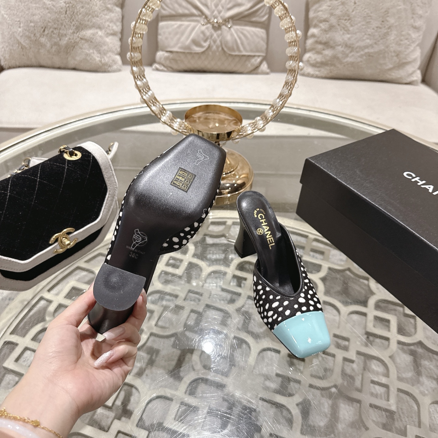 这款鞋子是AAAAA 1:1 质量 (非常棒). 使用了和原版一模一样的材料. 商标部分也保持了和香奈儿/Chanel一样. 图片拍摄是实物鞋子拍摄, 您所收到的实物保证和我们图片一模一样.