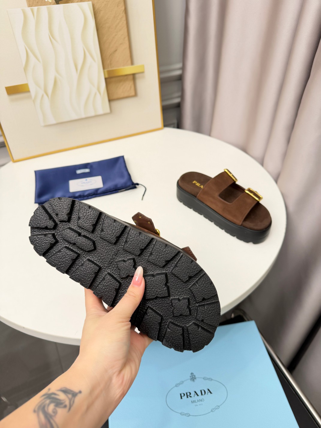 这款鞋子是AAAAA 1:1 质量 (非常棒). 使用了和原版一模一样的材料. 商标部分也保持了和普拉达/Prada一样. 图片拍摄是实物鞋子拍摄, 您所收到的实物保证和我们图片一模一样.