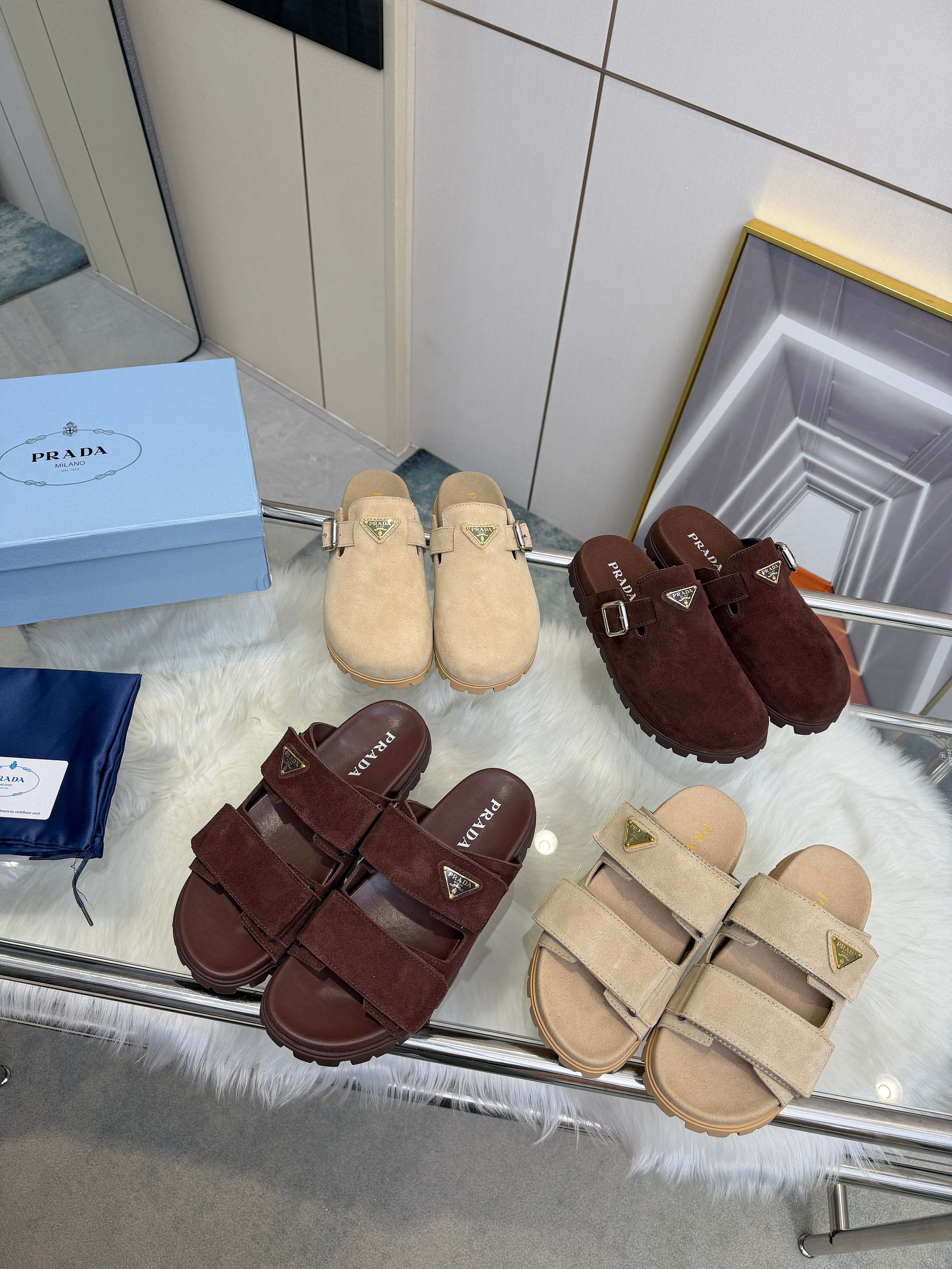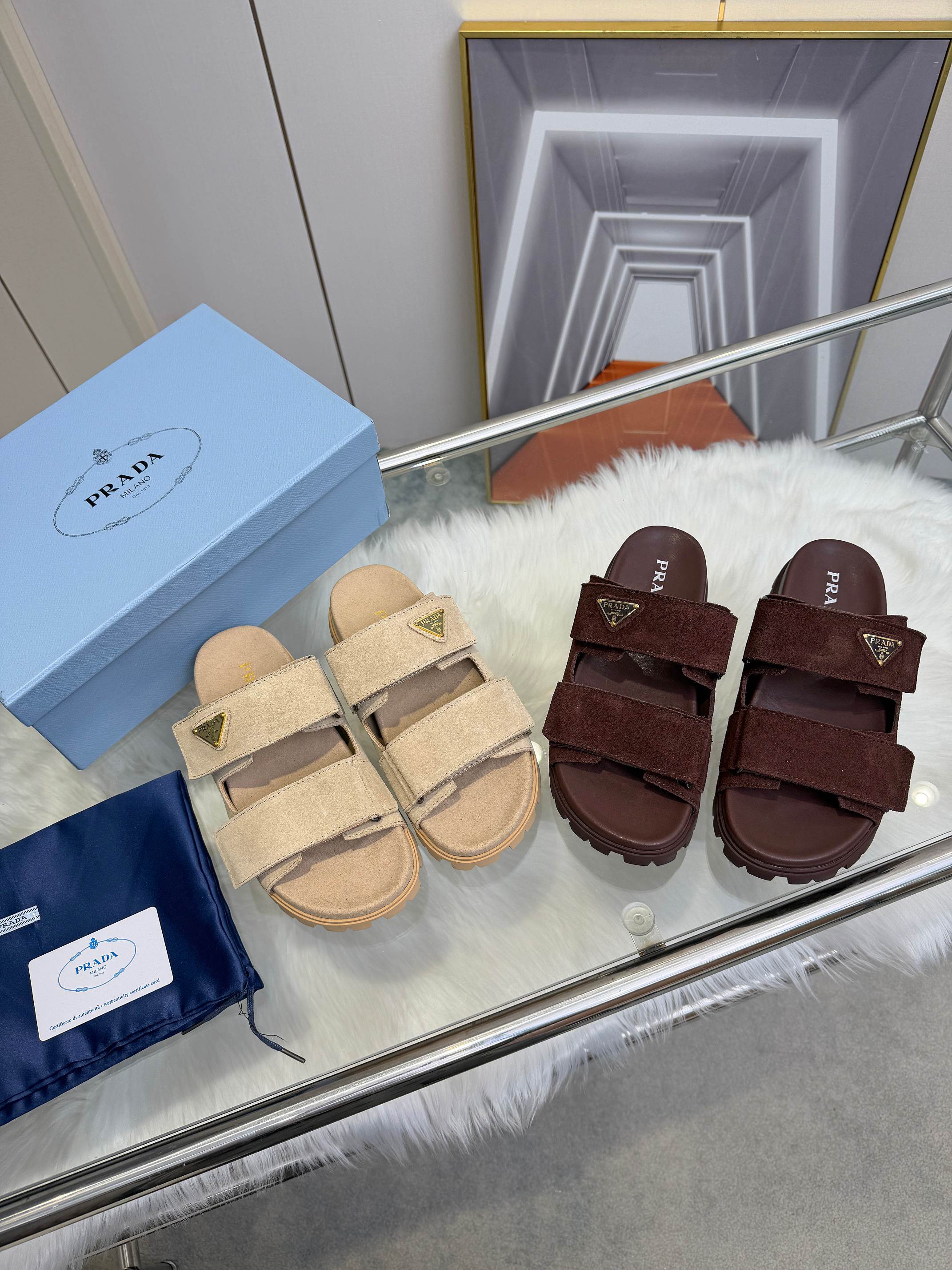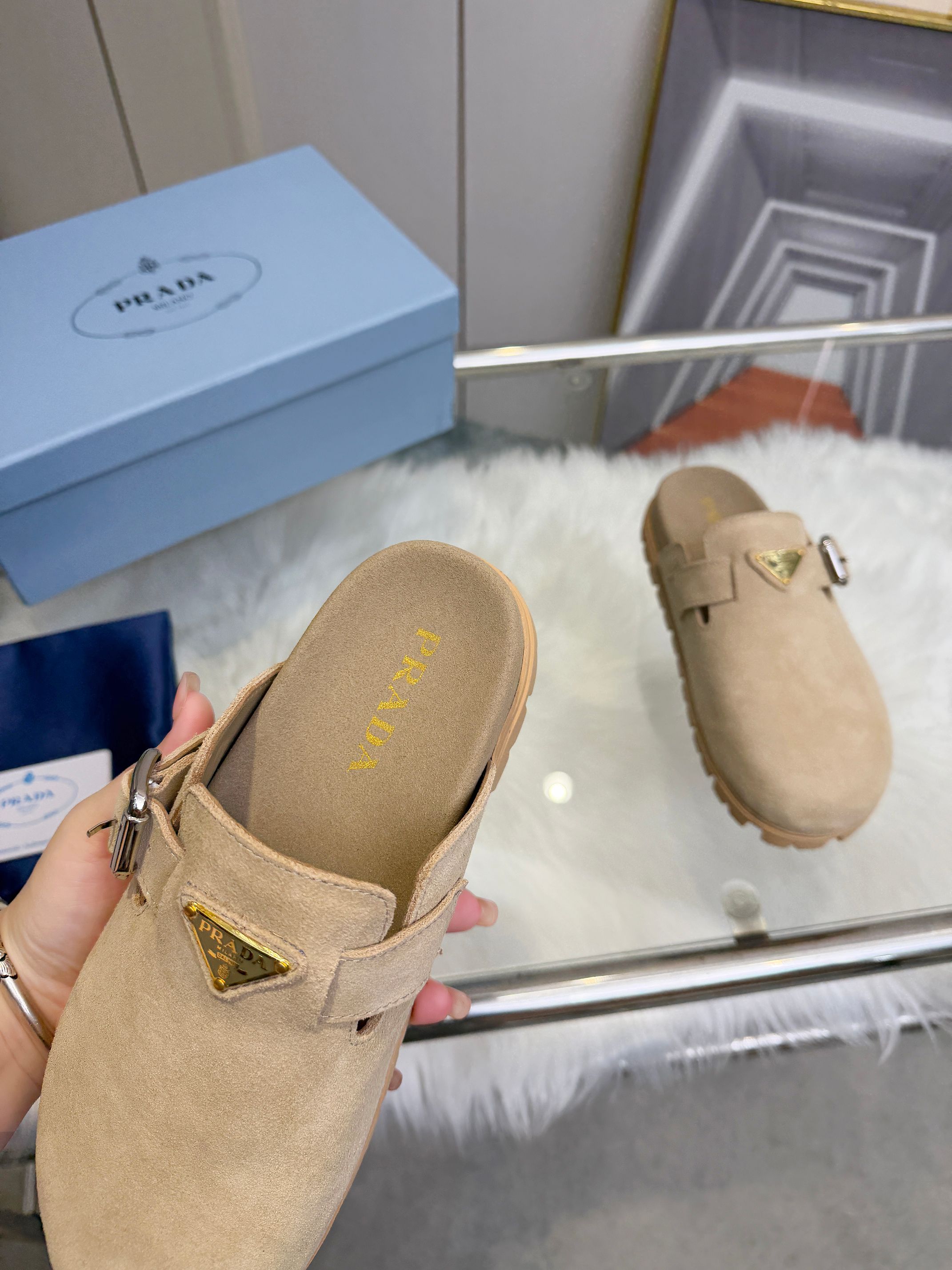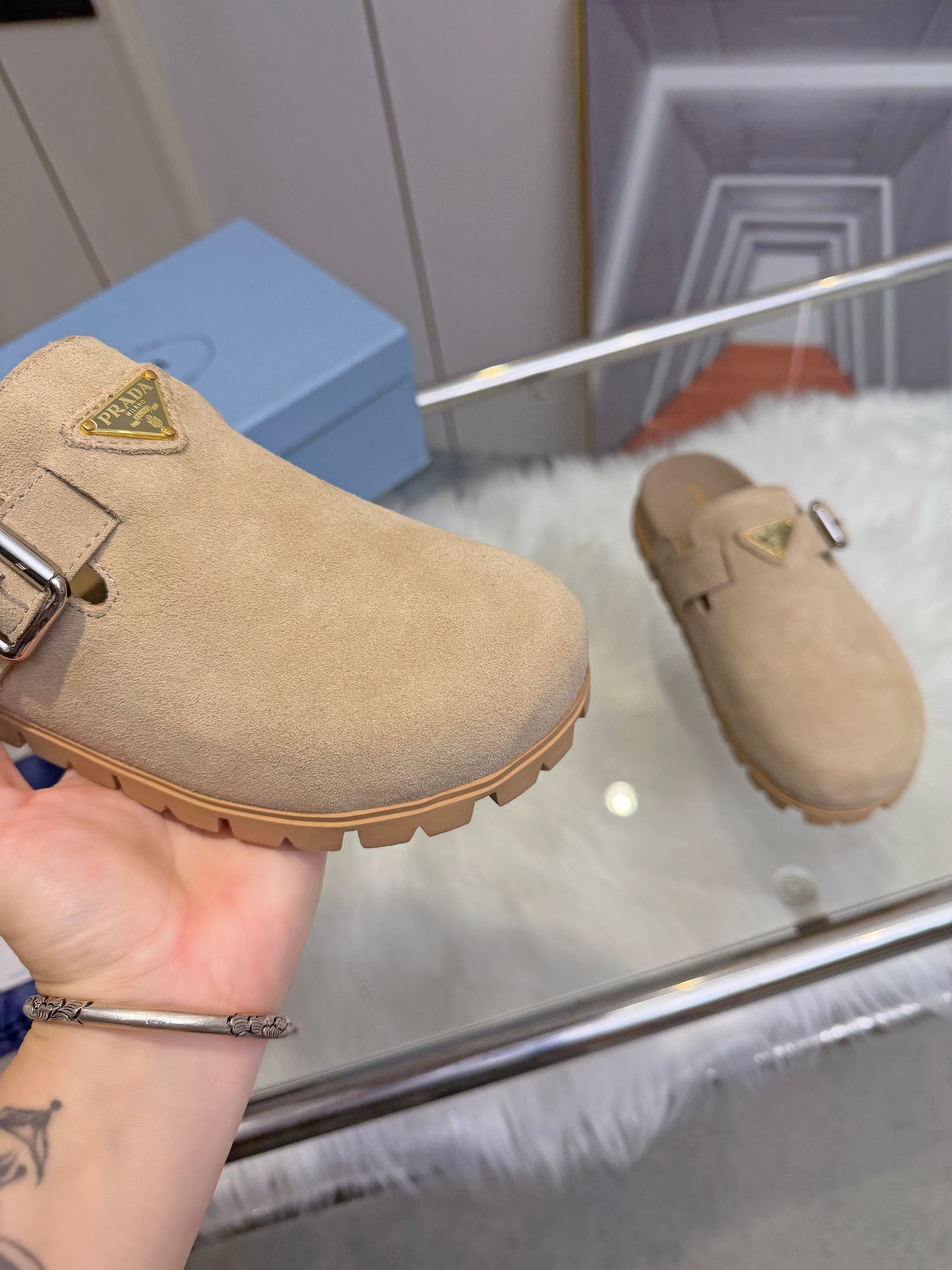 这款鞋子是AAAAA 1:1 质量 (非常棒). 使用了和原版一模一样的材料. 商标部分也保持了和普拉达/Prada一样. 图片拍摄是实物鞋子拍摄, 您所收到的实物保证和我们图片一模一样.