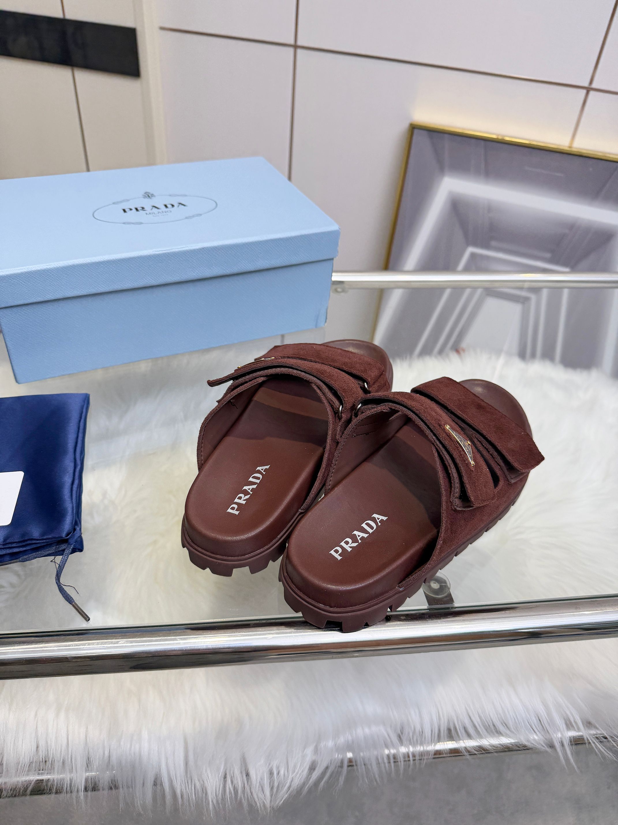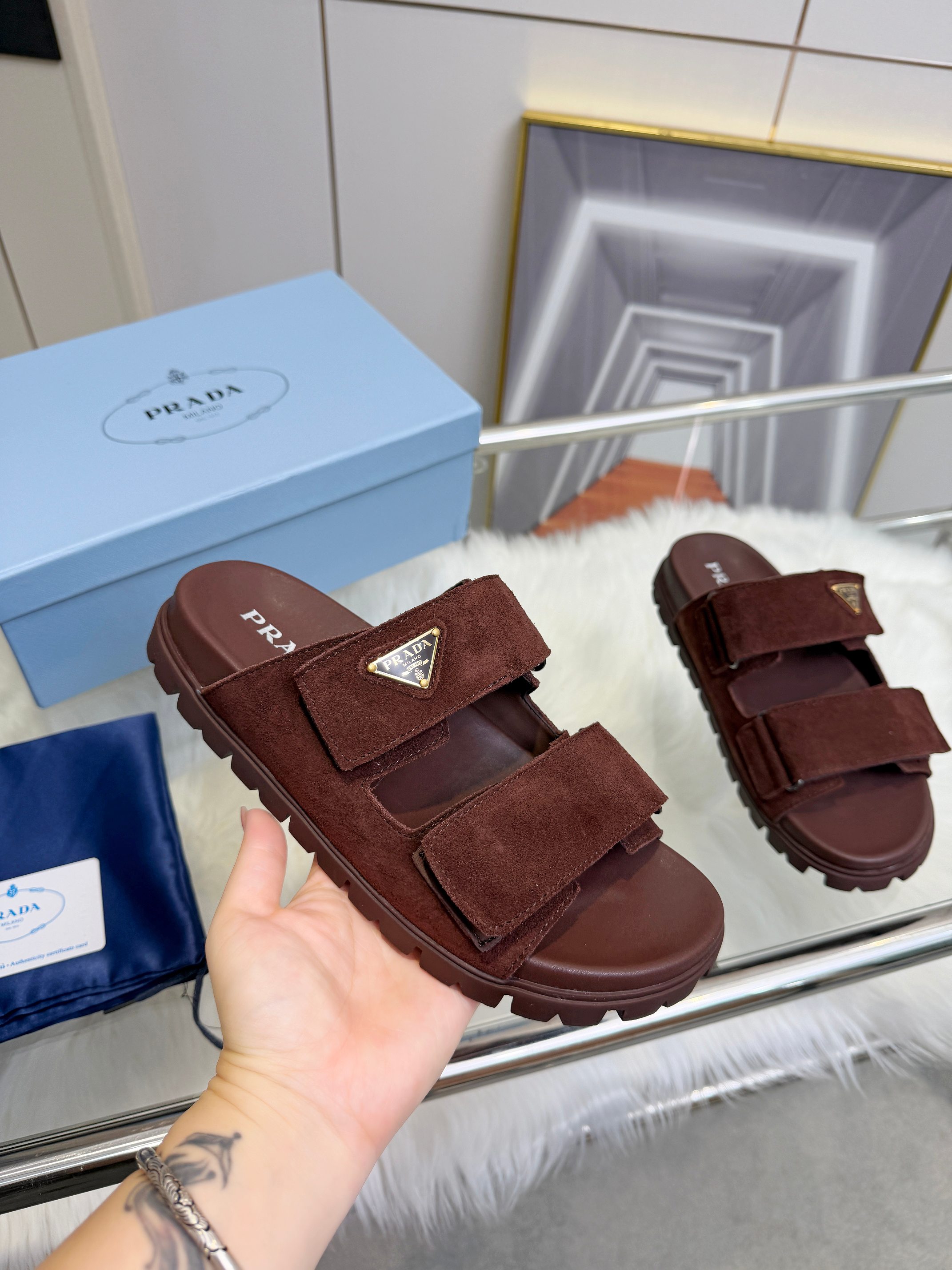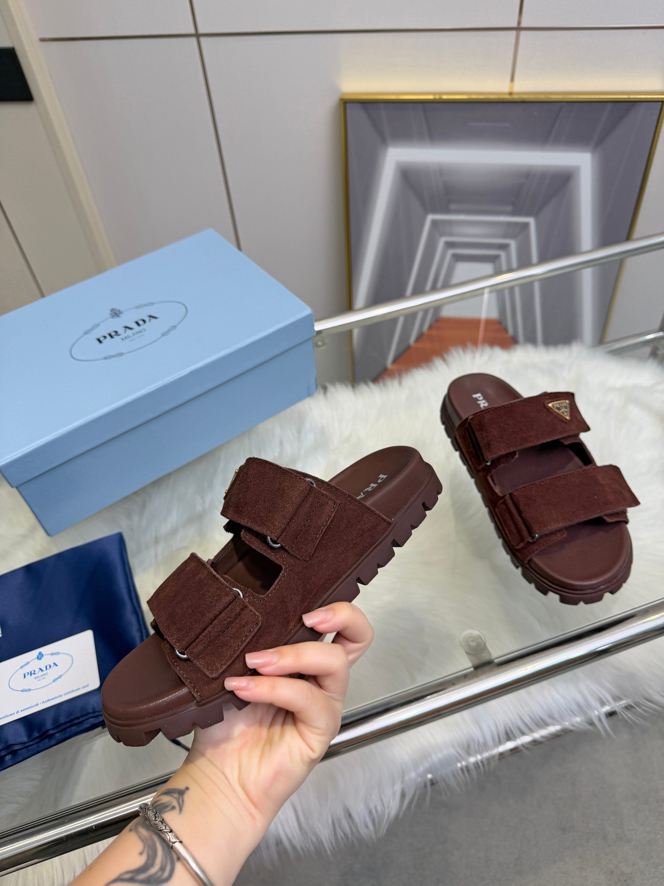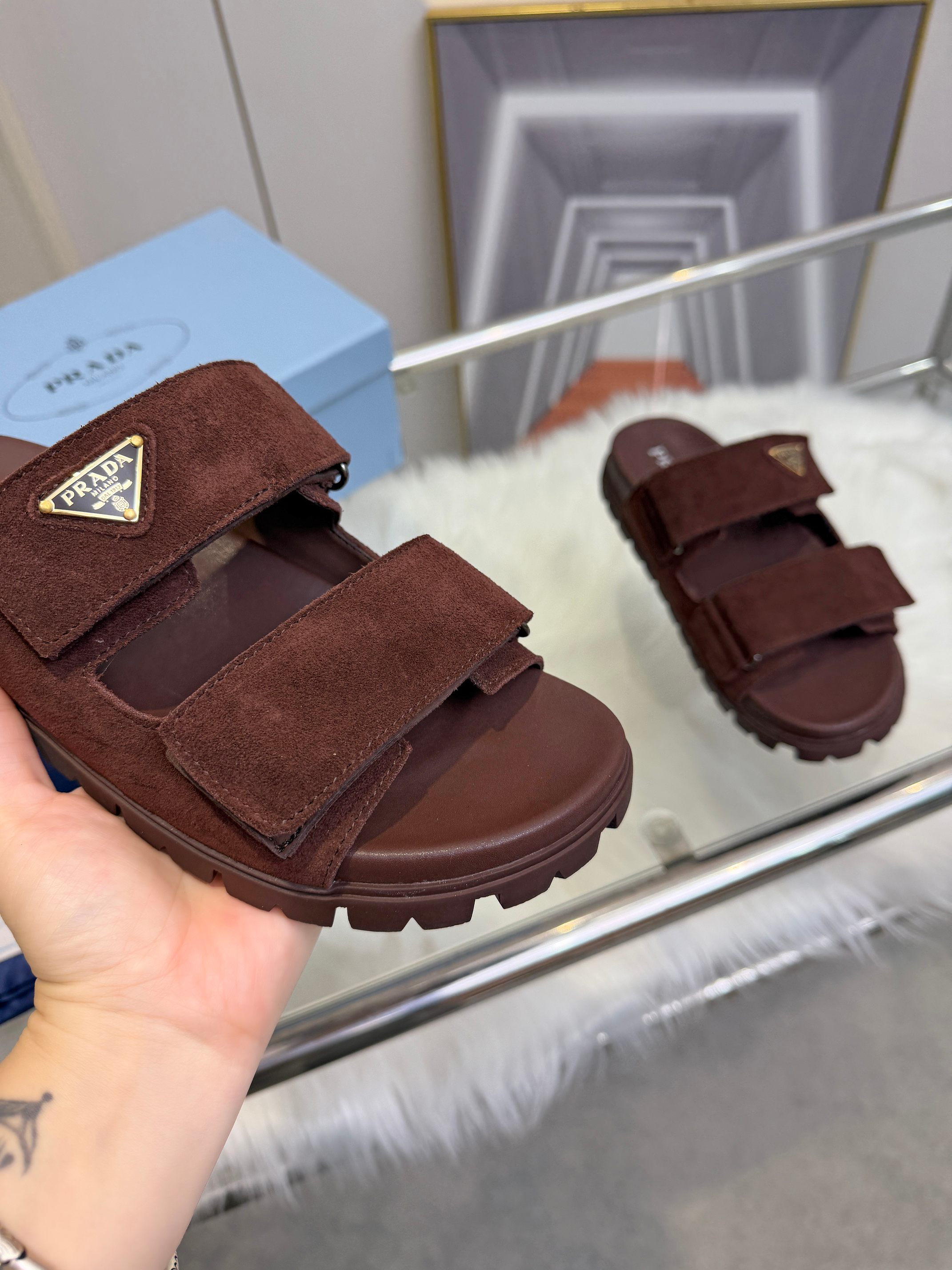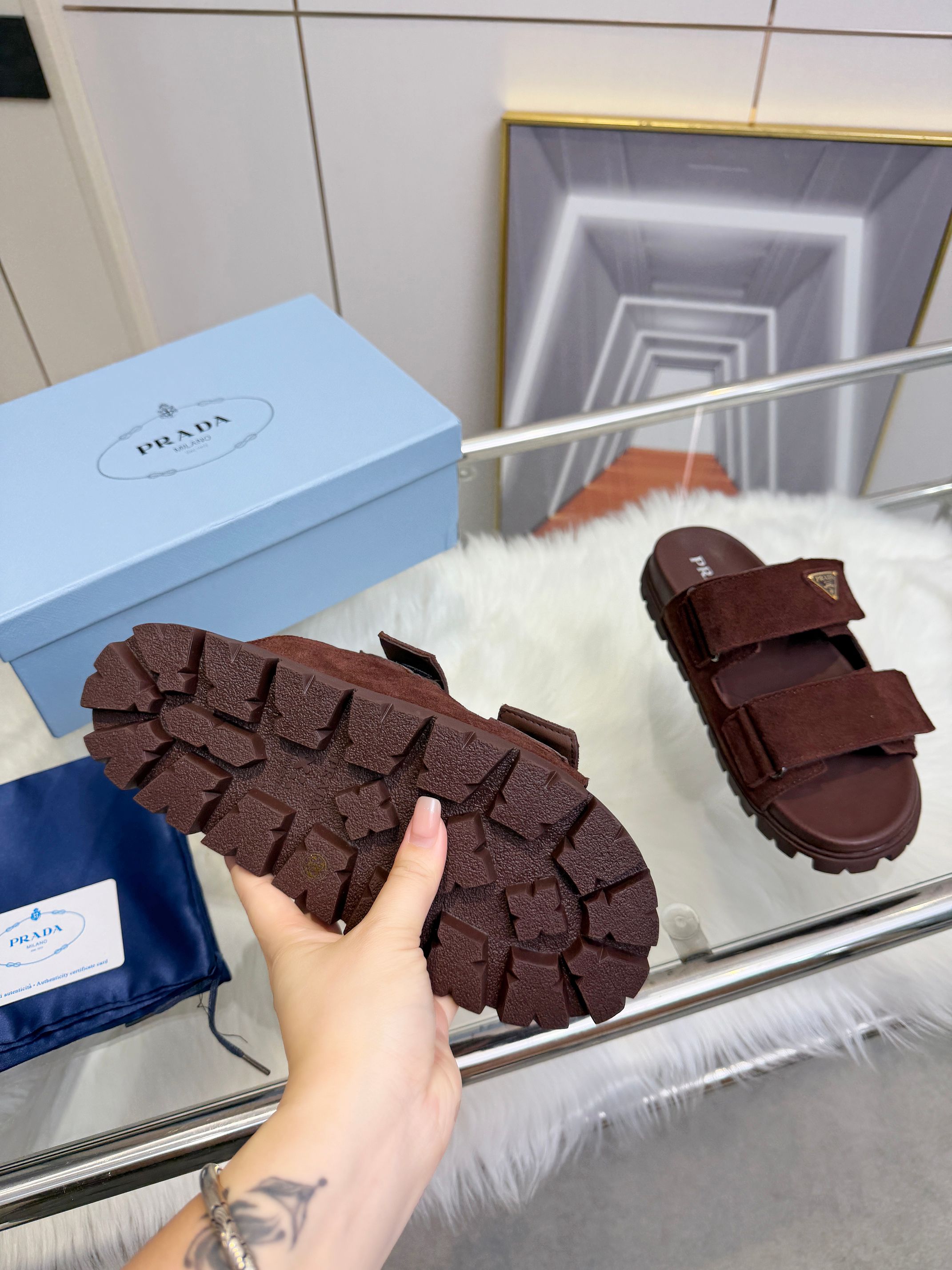 这款鞋子是AAAAA 1:1 质量 (非常棒). 使用了和原版一模一样的材料. 商标部分也保持了和普拉达/Prada一样. 图片拍摄是实物鞋子拍摄, 您所收到的实物保证和我们图片一模一样.
