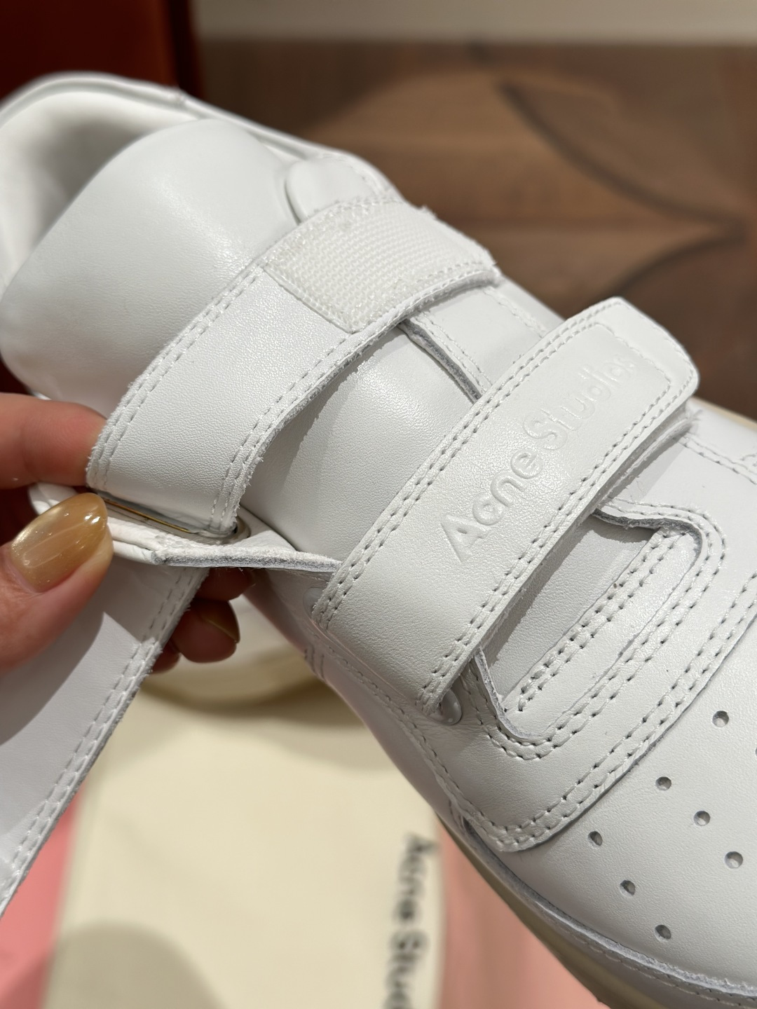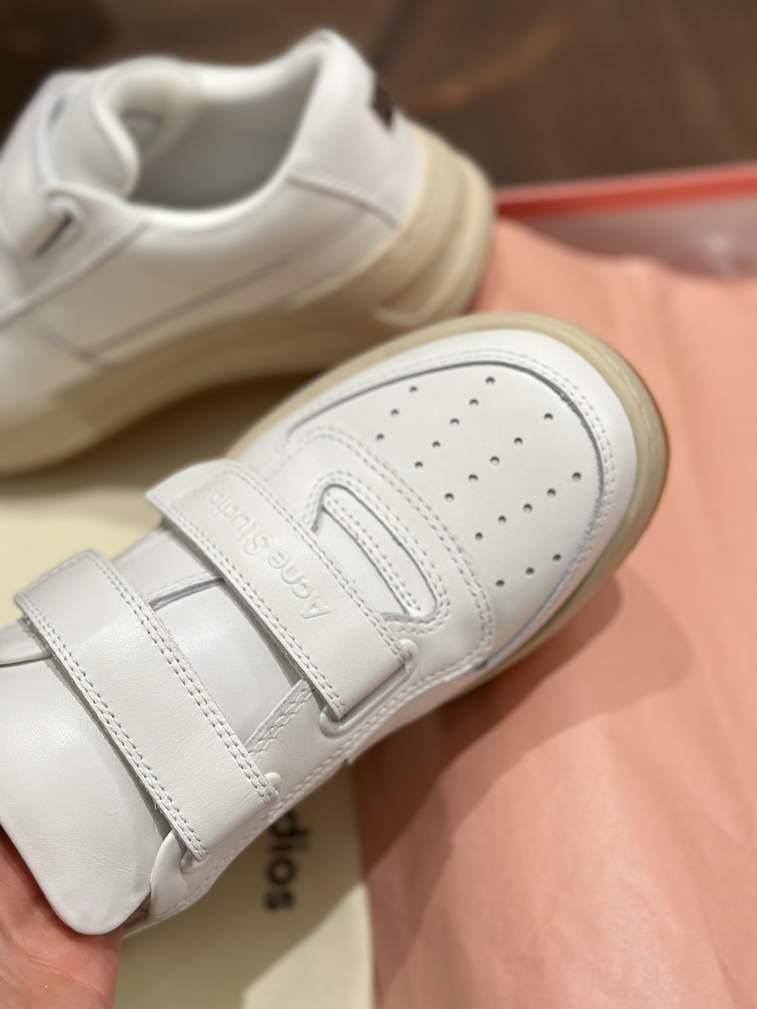 这款鞋子是AAAAA 1:1 质量 (非常棒). 使用了和原版一模一样的材料. 商标部分也保持了和Acne一样. 图片拍摄是实物鞋子拍摄, 您所收到的实物保证和我们图片一模一样.