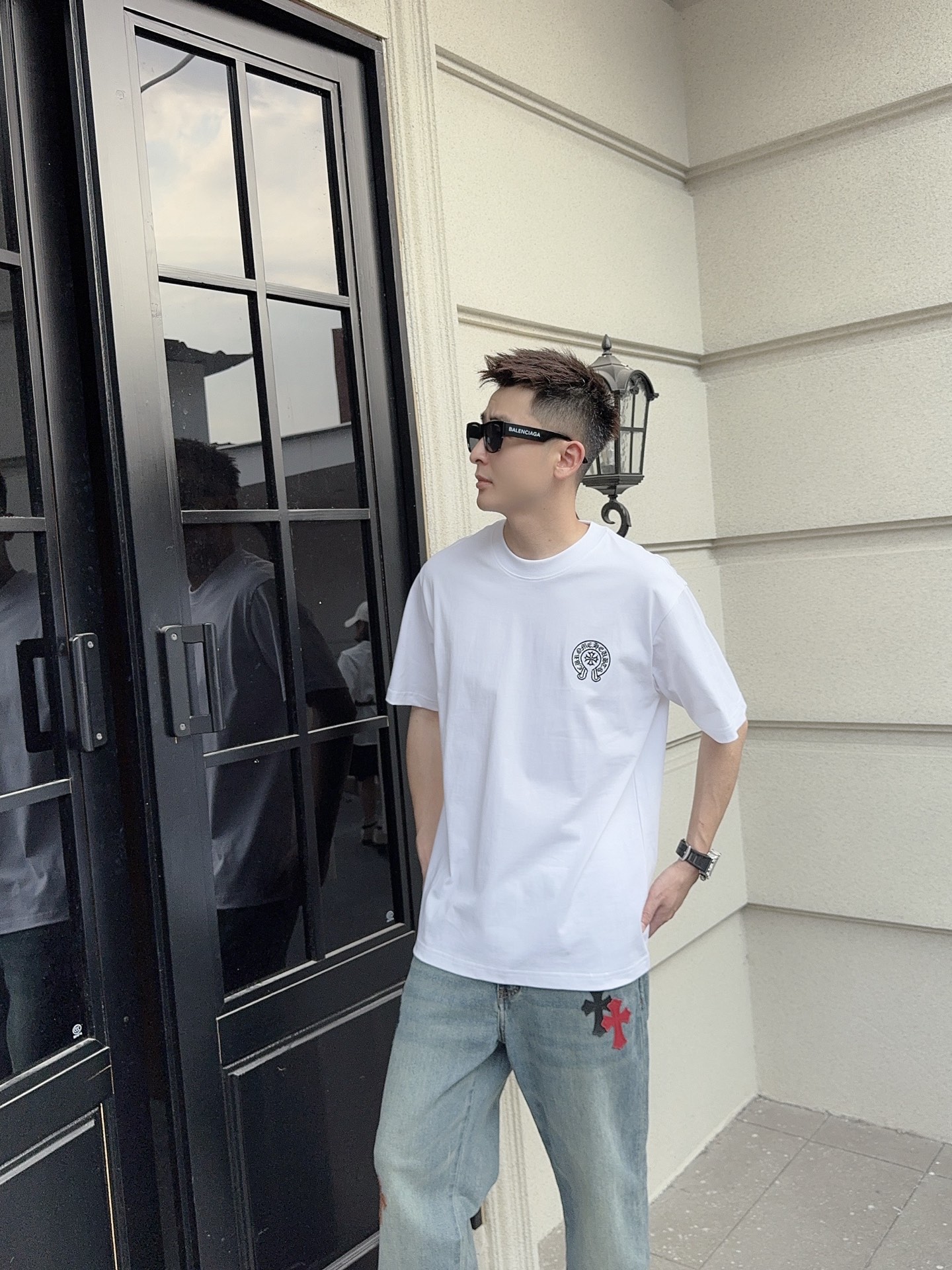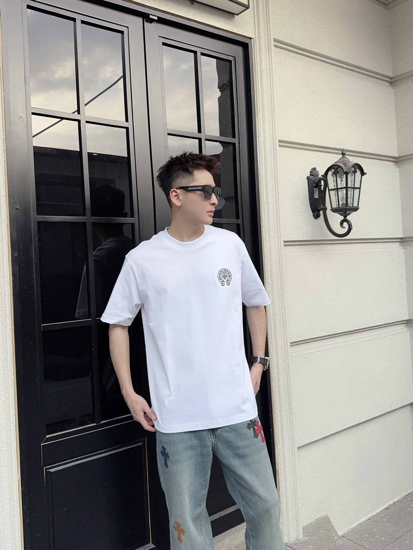 这款衣服是AAAAA 1:1 质量 (非常棒). 使用了和原版一模一样的材料. 商标部分也保持了和克罗心/Chrome Hearts一样. 图片拍摄是实物衣服拍摄, 您所收到的实物保证和我们图片一模一样.