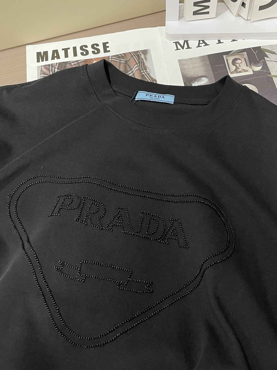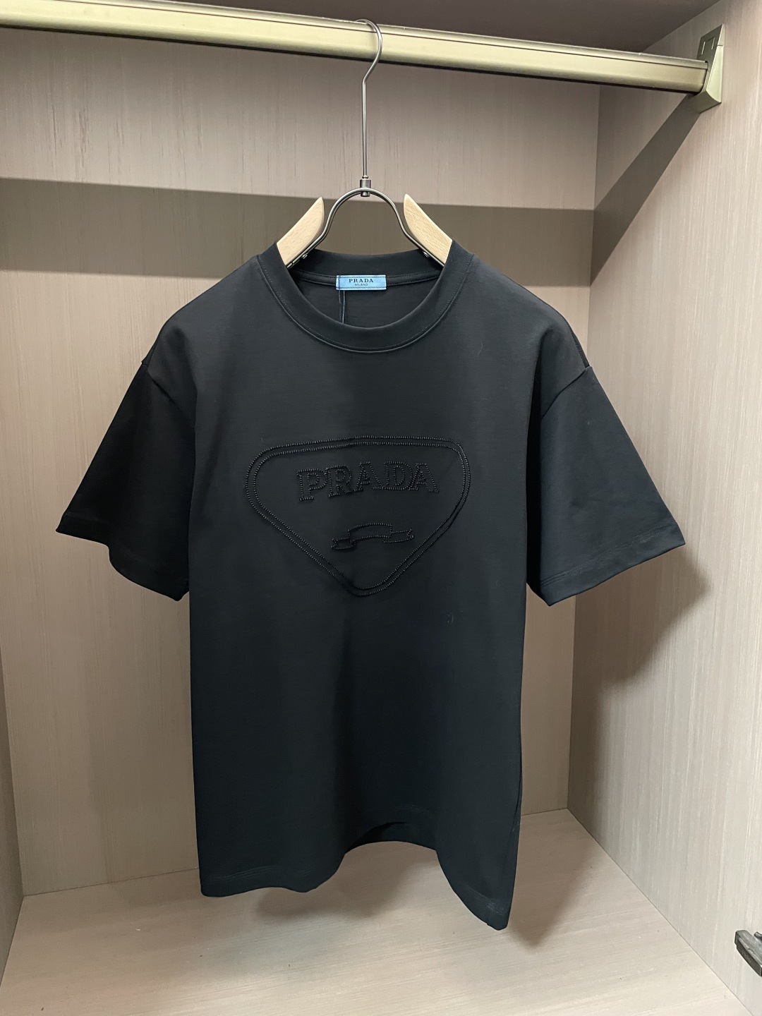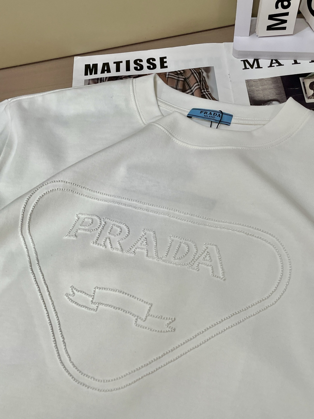 这款衣服是AAAAA 1:1 质量 (非常棒). 使用了和原版一模一样的材料. 商标部分也保持了和普拉达/Prada一样. 图片拍摄是实物衣服拍摄, 您所收到的实物保证和我们图片一模一样.