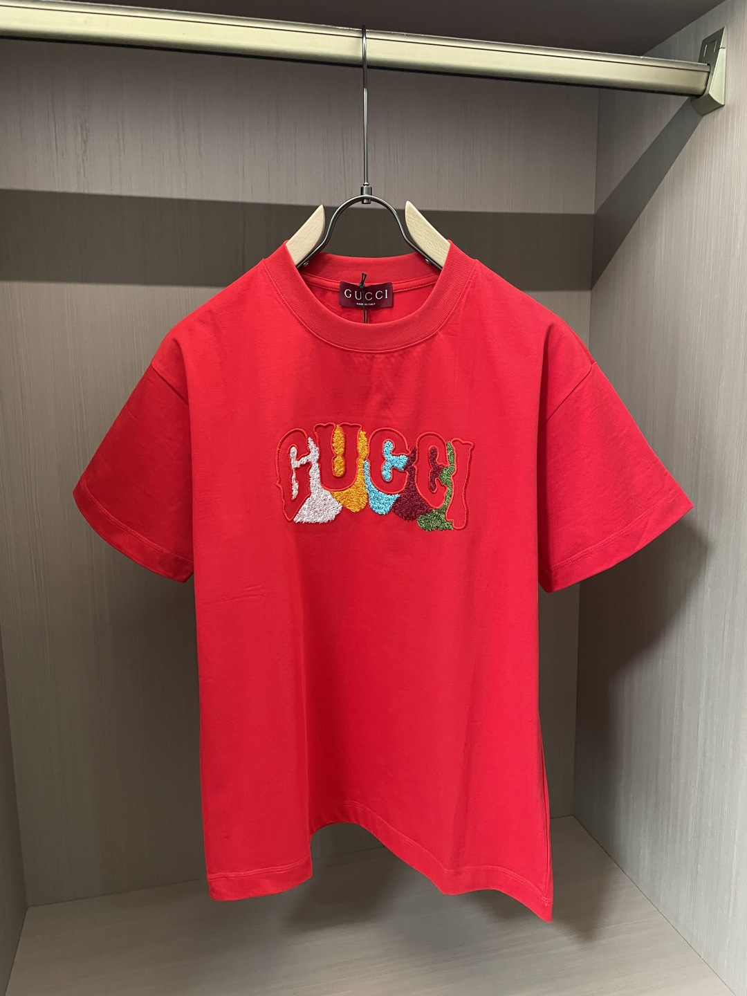 这款衣服是AAAAA 1:1 质量 (非常棒). 使用了和原版一模一样的材料. 商标部分也保持了和古奇/Gucci一样. 图片拍摄是实物衣服拍摄, 您所收到的实物保证和我们图片一模一样.