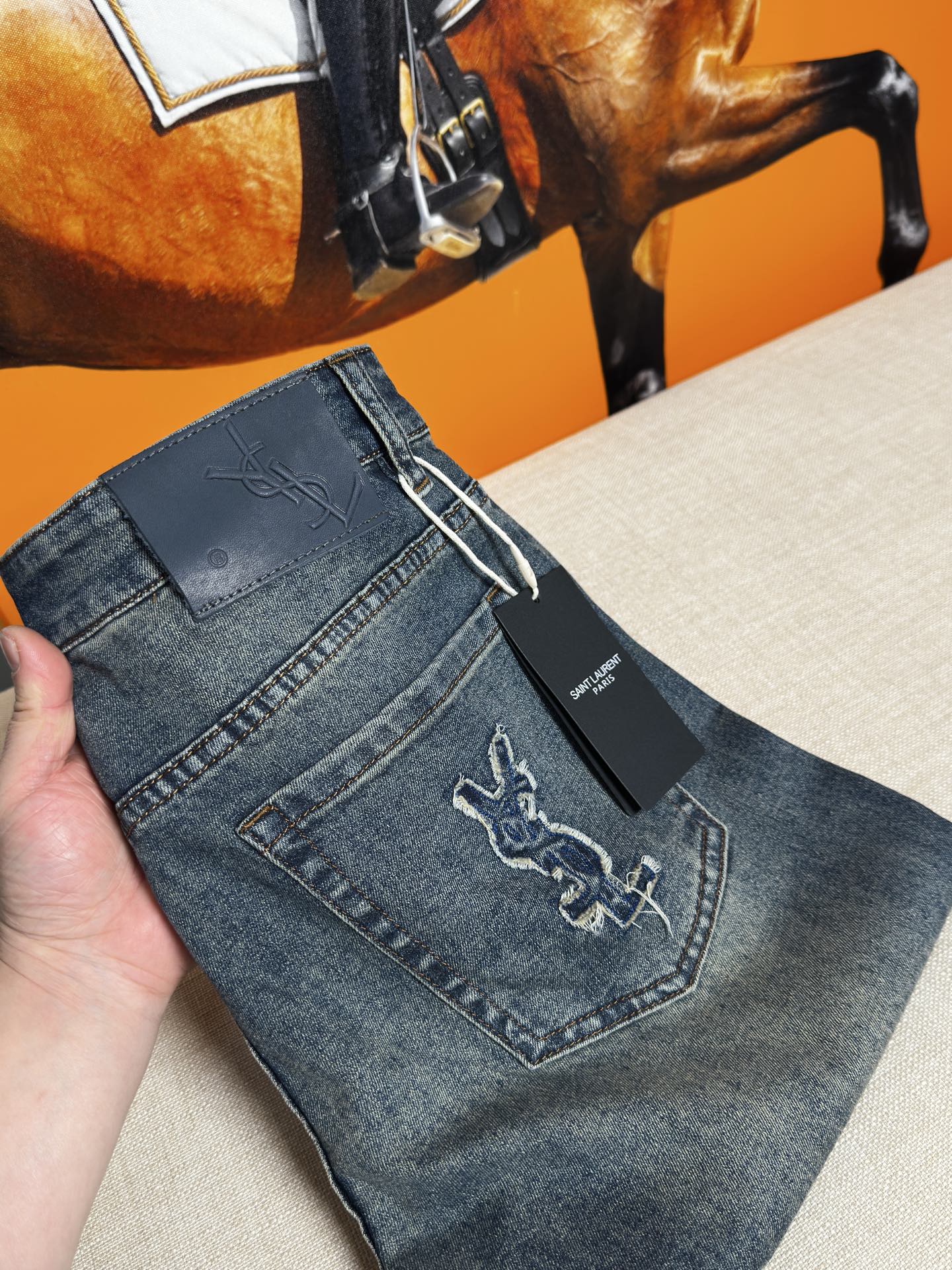 这款衣服是AAAAA 1:1 质量 (非常棒). 使用了和原版一模一样的材料. 商标部分也保持了和圣罗兰/Saint Laurent一样. 图片拍摄是实物衣服拍摄, 您所收到的实物保证和我们图片一模一样.