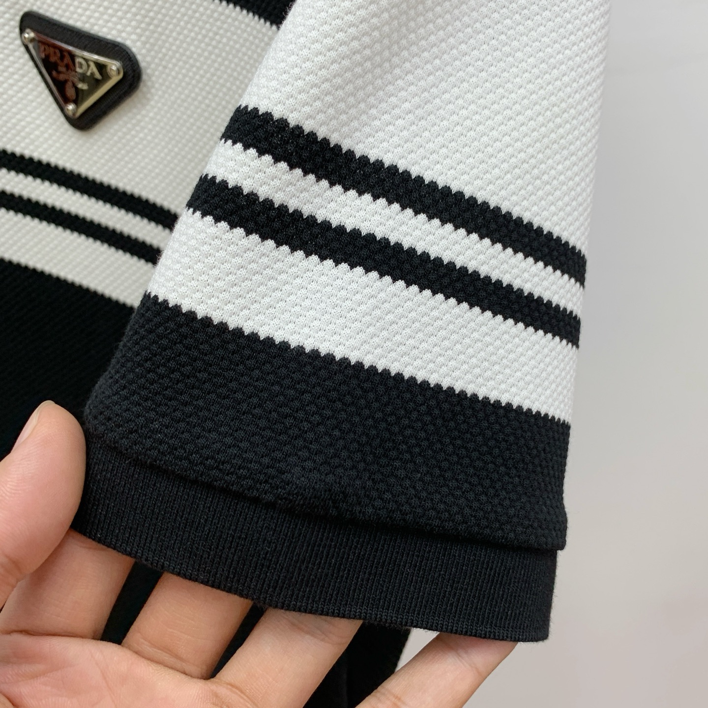 这款衣服是AAAAA 1:1 质量 (非常棒). 使用了和原版一模一样的材料. 商标部分也保持了和普拉达/Prada一样. 图片拍摄是实物衣服拍摄, 您所收到的实物保证和我们图片一模一样.