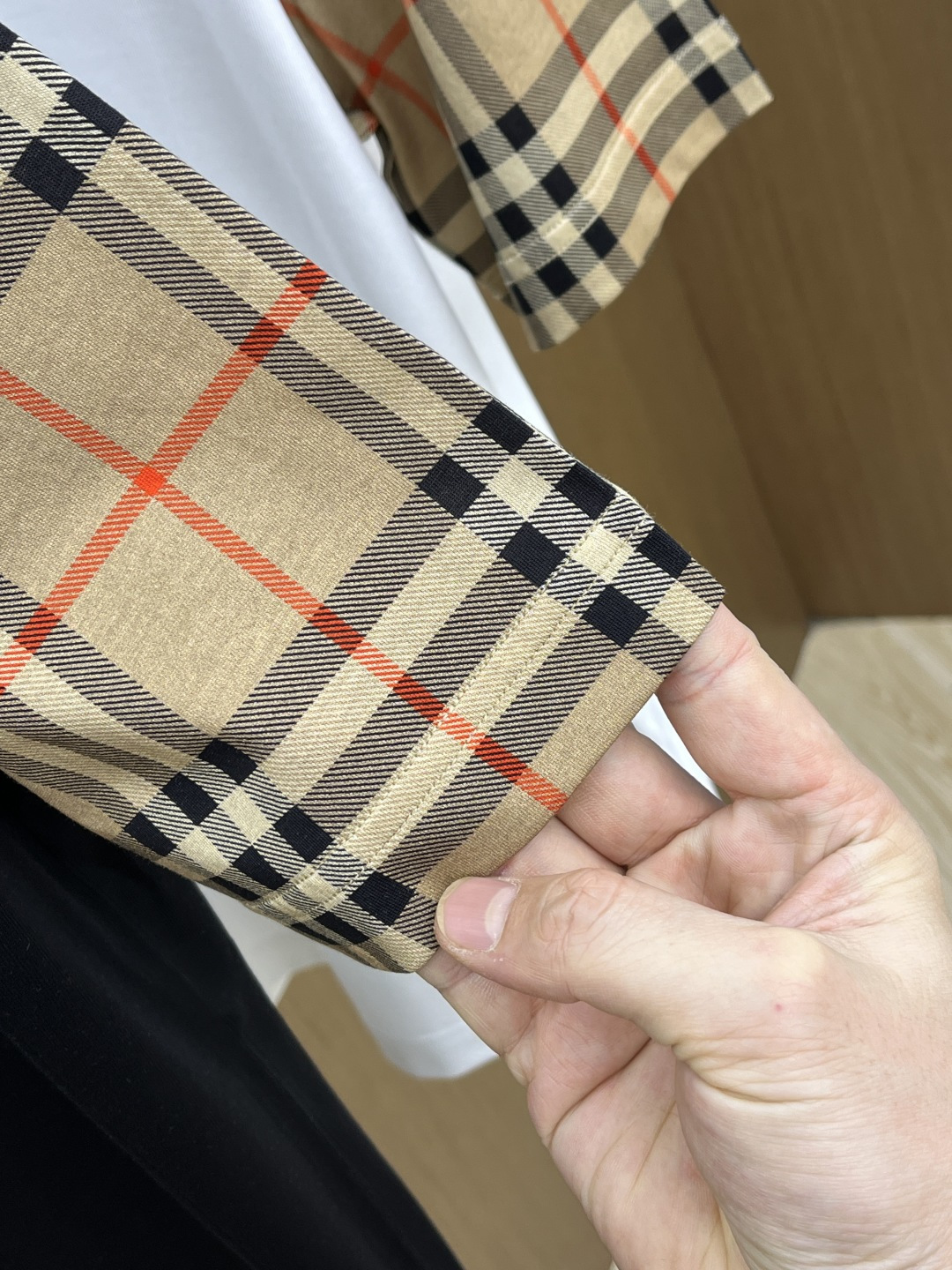 这款衣服是AAAAA 1:1 质量 (非常棒). 使用了和原版一模一样的材料. 商标部分也保持了和巴宝莉/Burberry一样. 图片拍摄是实物衣服拍摄, 您所收到的实物保证和我们图片一模一样.