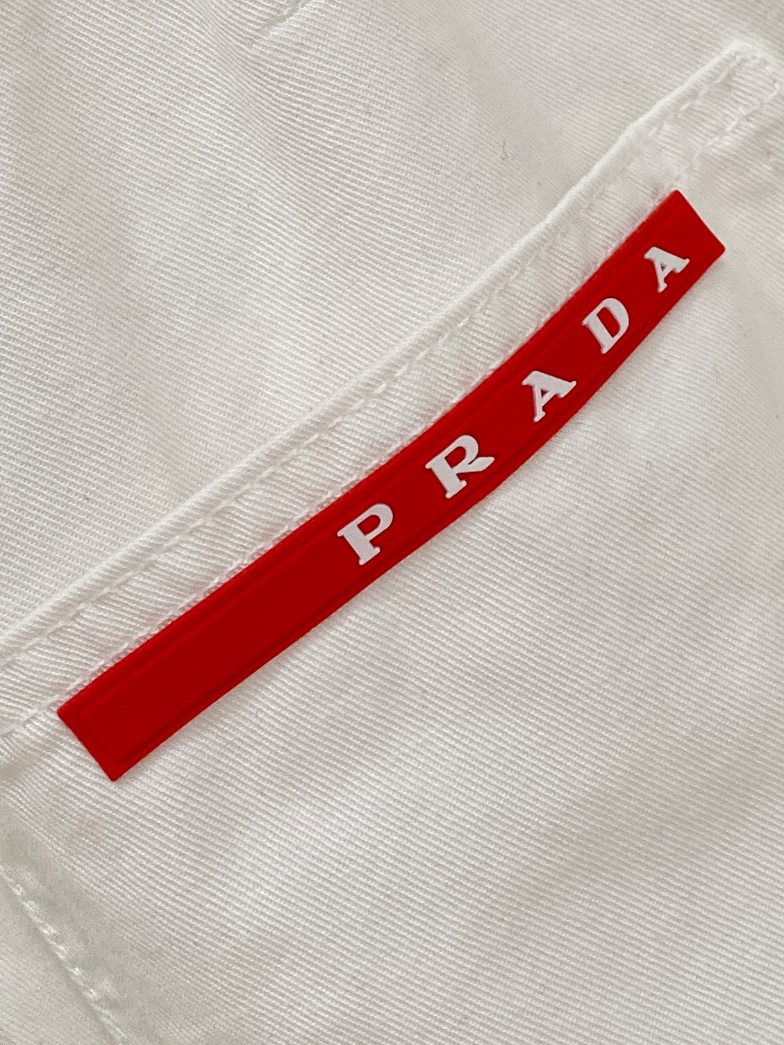 这款衣服是AAAAA 1:1 质量 (非常棒). 使用了和原版一模一样的材料. 商标部分也保持了和普拉达/Prada一样. 图片拍摄是实物衣服拍摄, 您所收到的实物保证和我们图片一模一样.