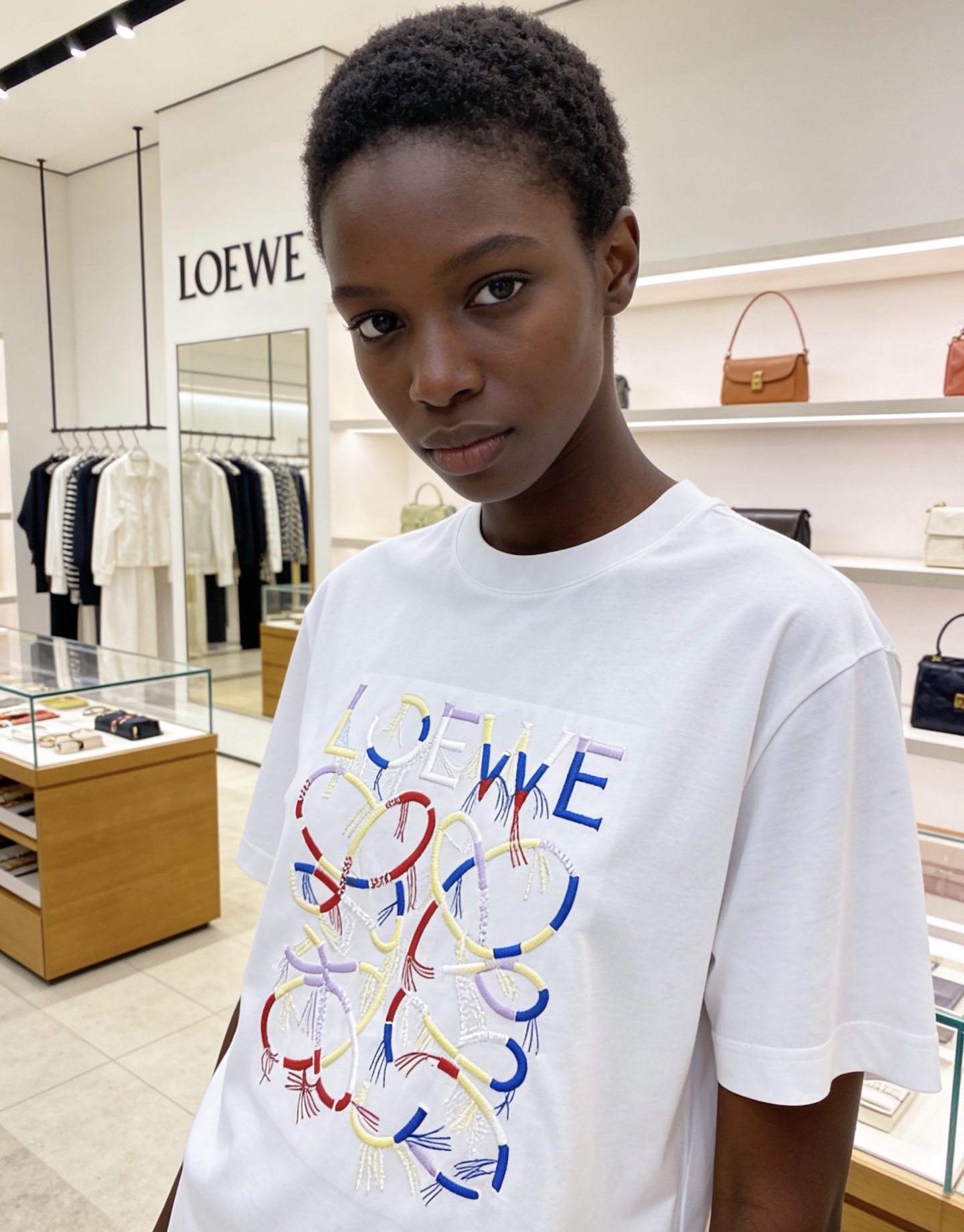 这款衣服是AAAAA 1:1 质量 (非常棒). 使用了和原版一模一样的材料. 商标部分也保持了和罗意威/Loewe一样. 图片拍摄是实物衣服拍摄, 您所收到的实物保证和我们图片一模一样.