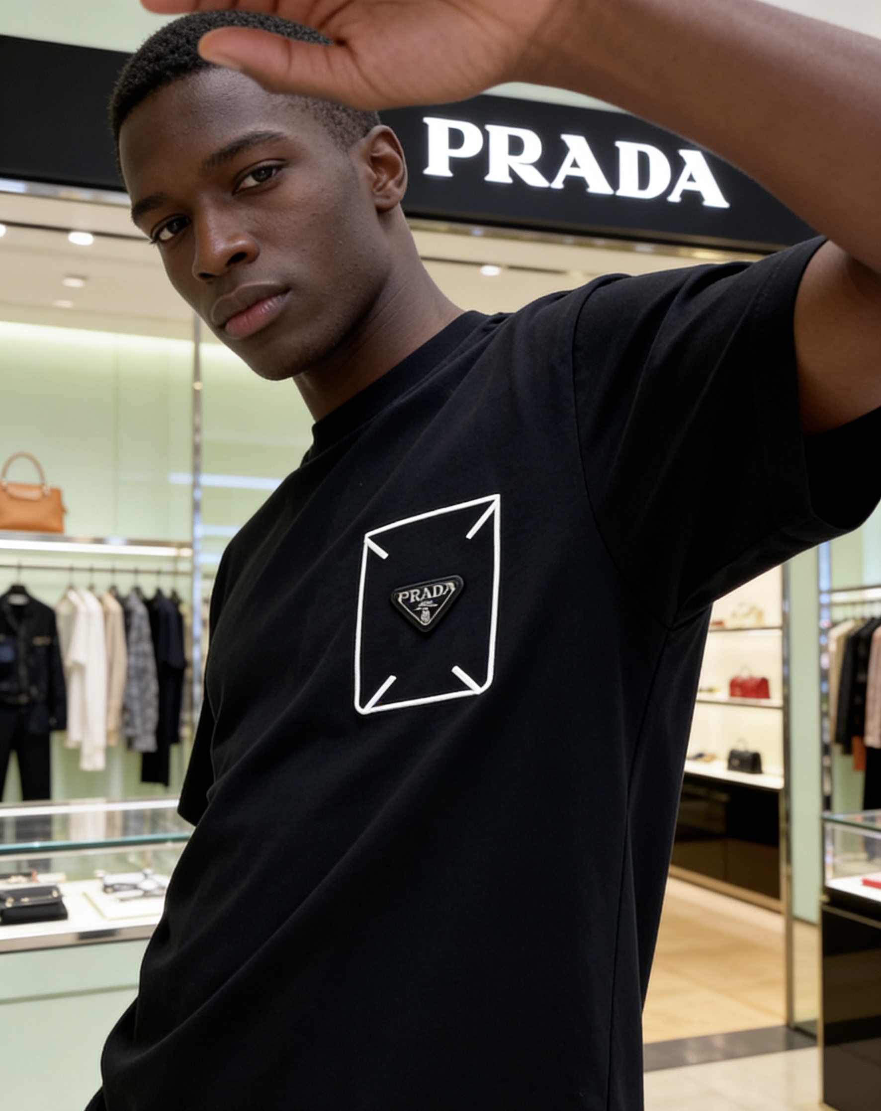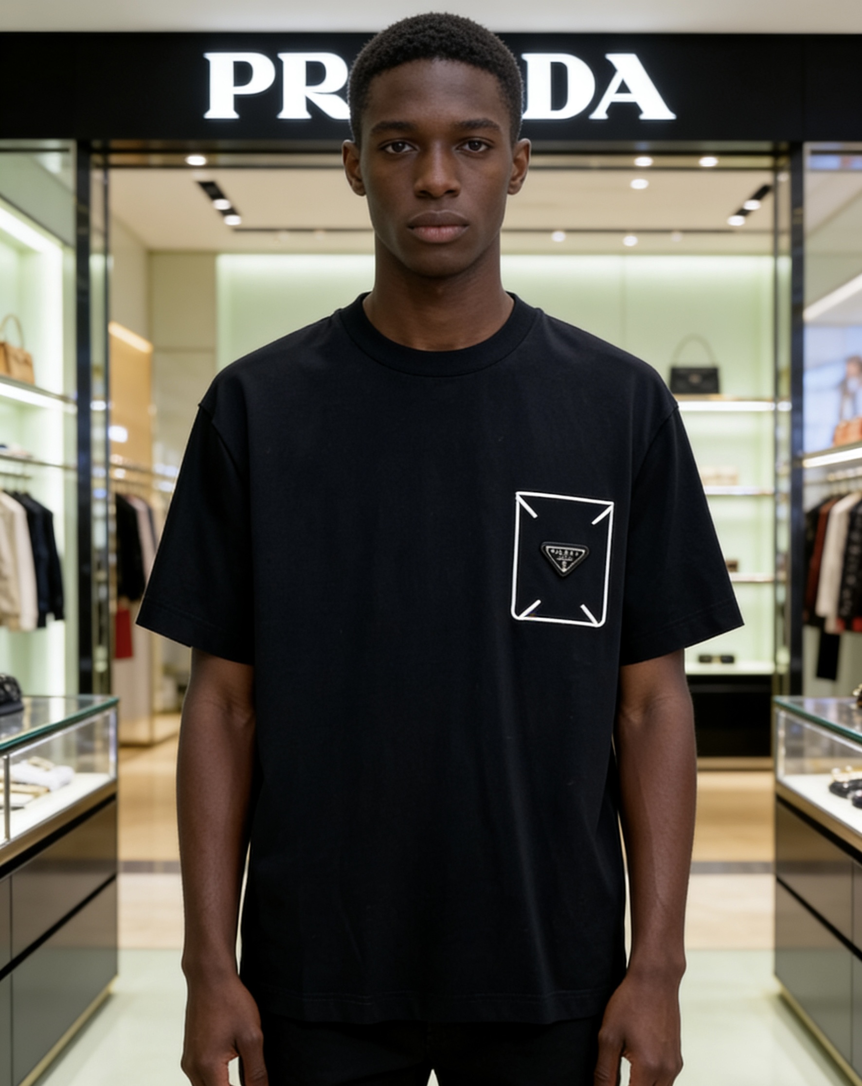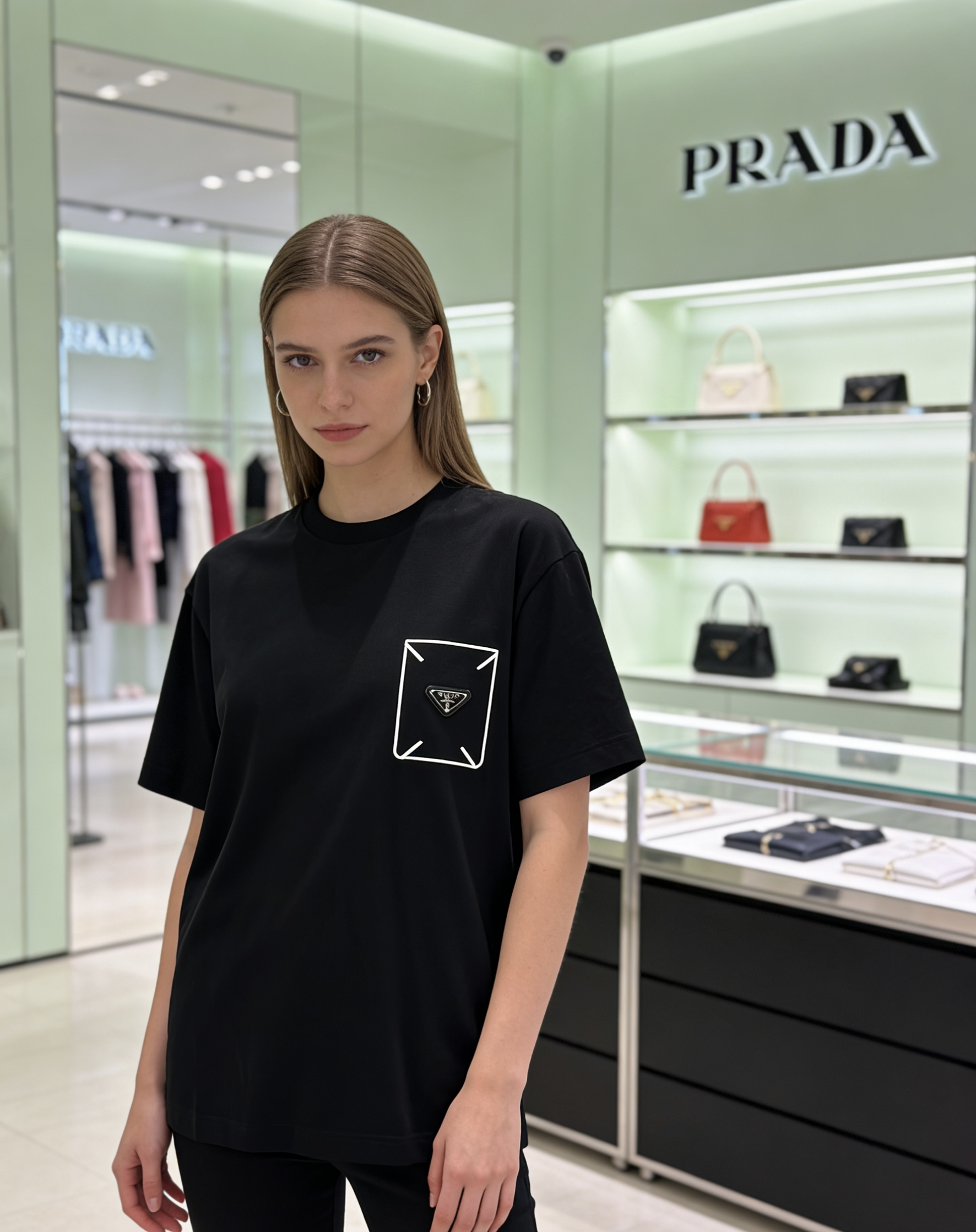 这款衣服是AAAAA 1:1 质量 (非常棒). 使用了和原版一模一样的材料. 商标部分也保持了和普拉达/Prada一样. 图片拍摄是实物衣服拍摄, 您所收到的实物保证和我们图片一模一样.