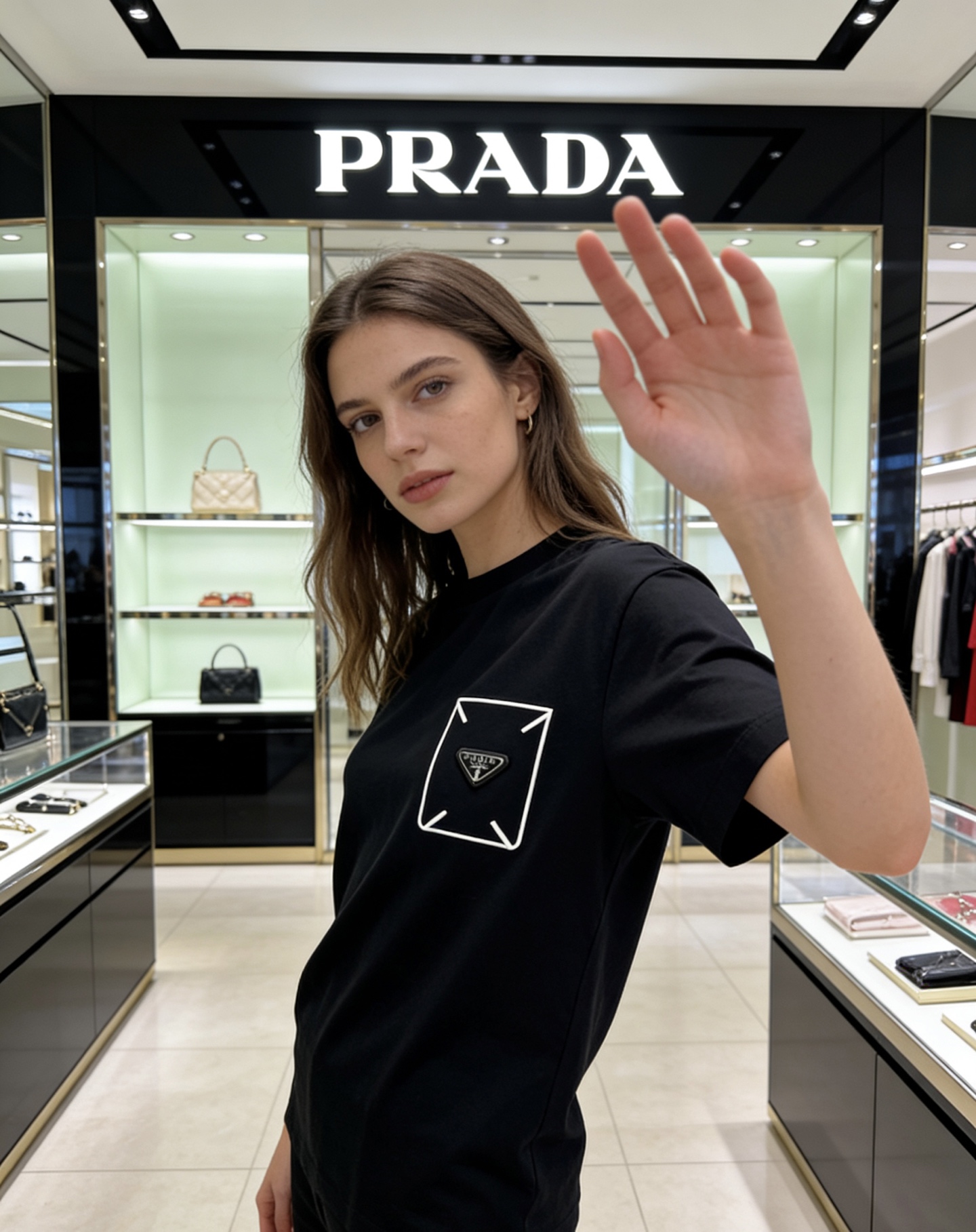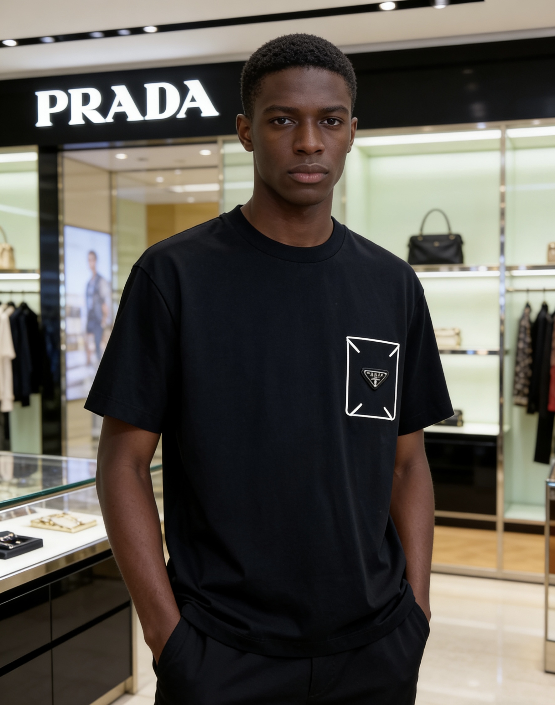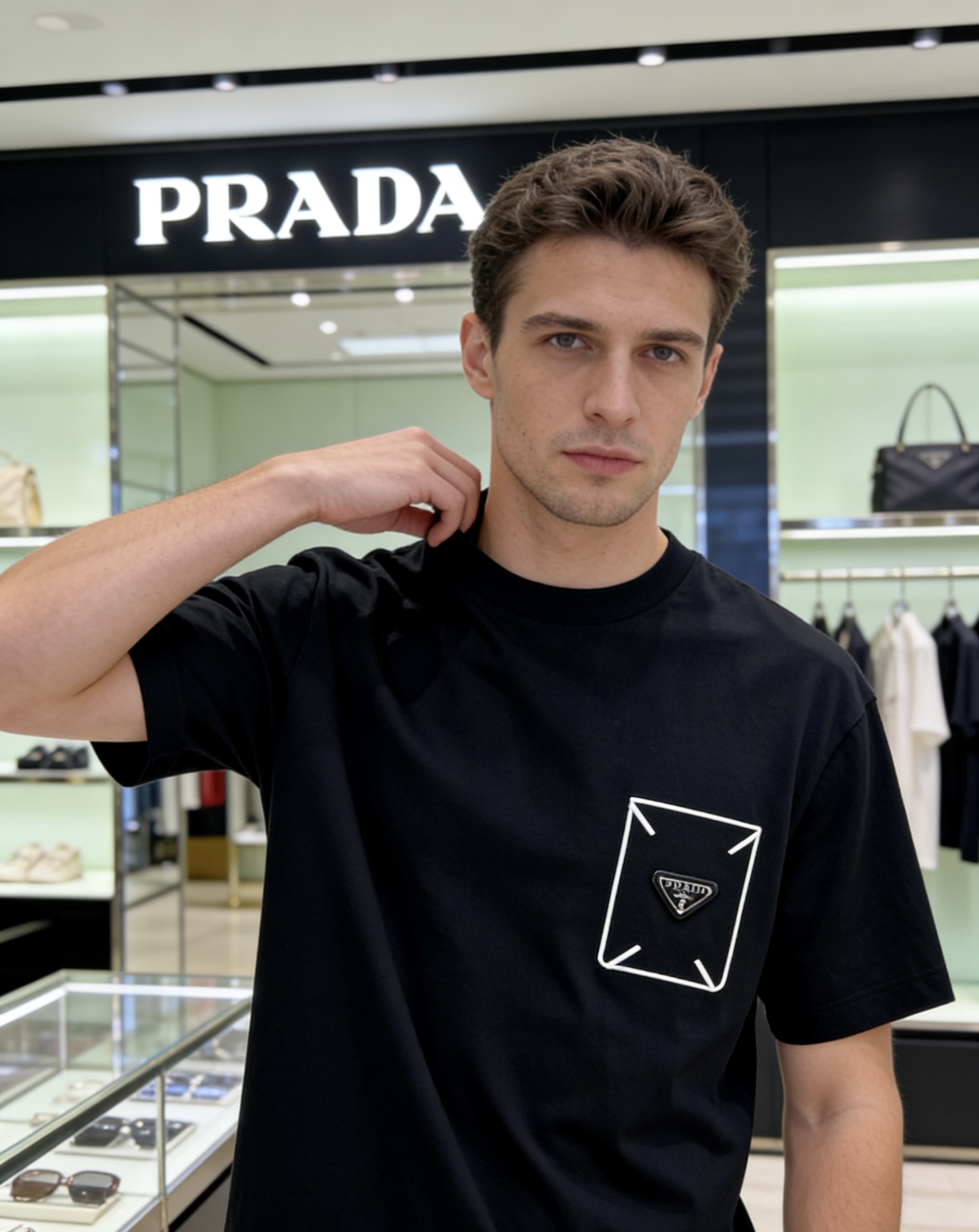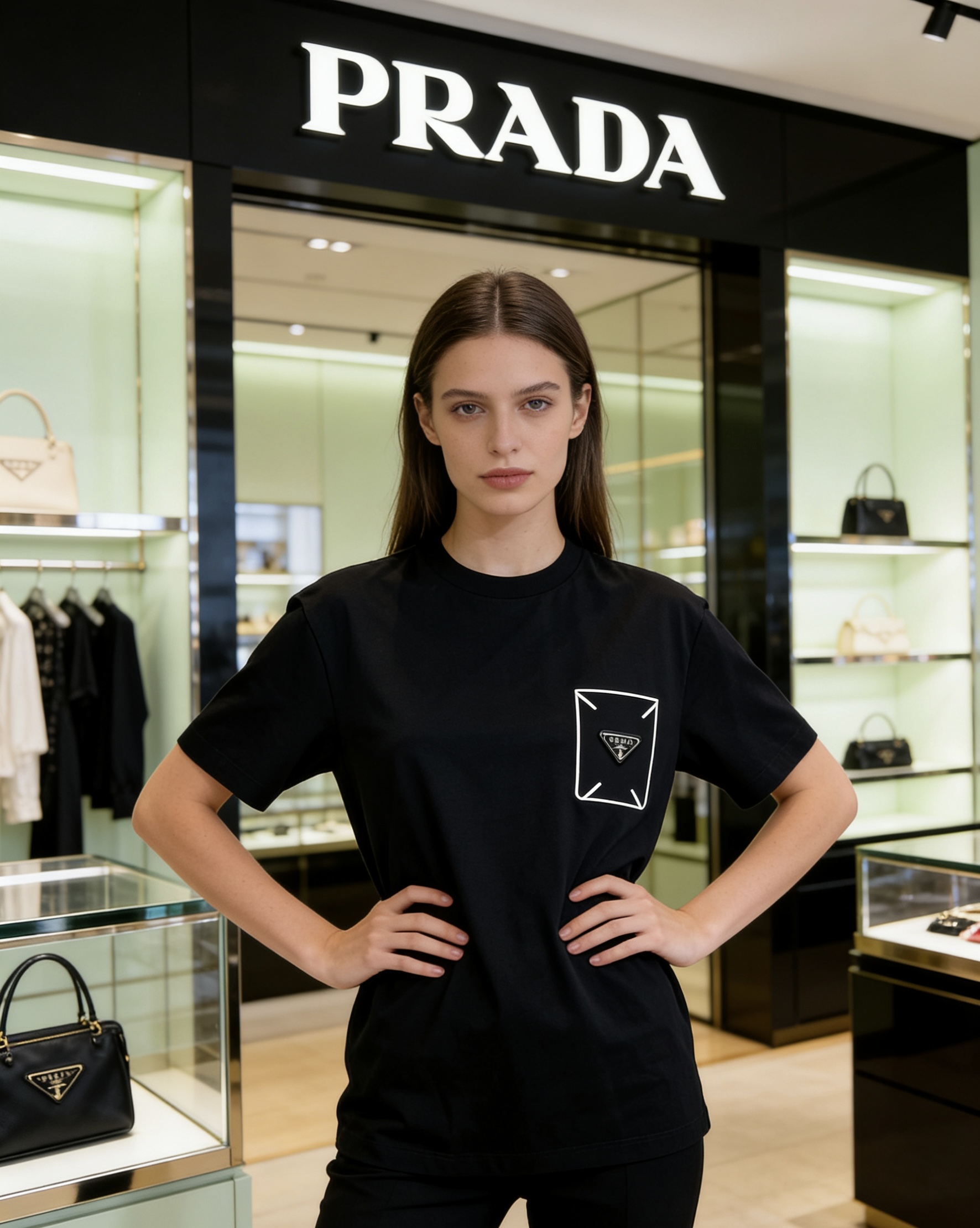 这款衣服是AAAAA 1:1 质量 (非常棒). 使用了和原版一模一样的材料. 商标部分也保持了和普拉达/Prada一样. 图片拍摄是实物衣服拍摄, 您所收到的实物保证和我们图片一模一样.