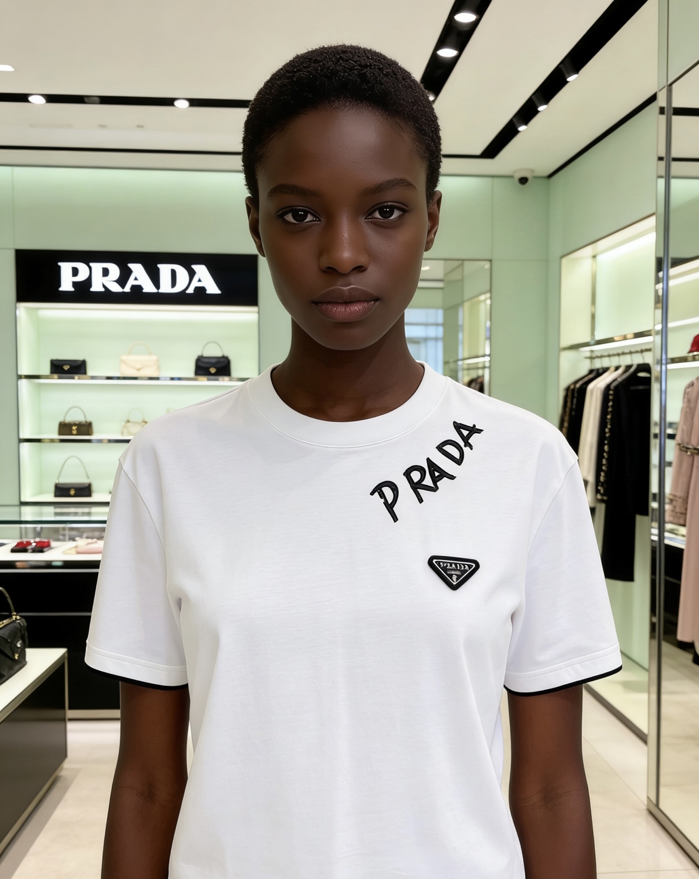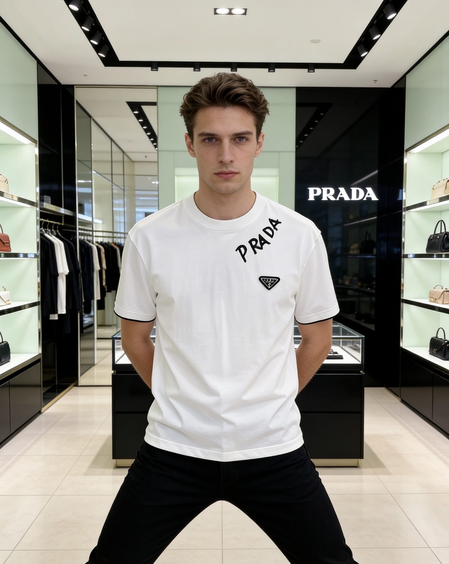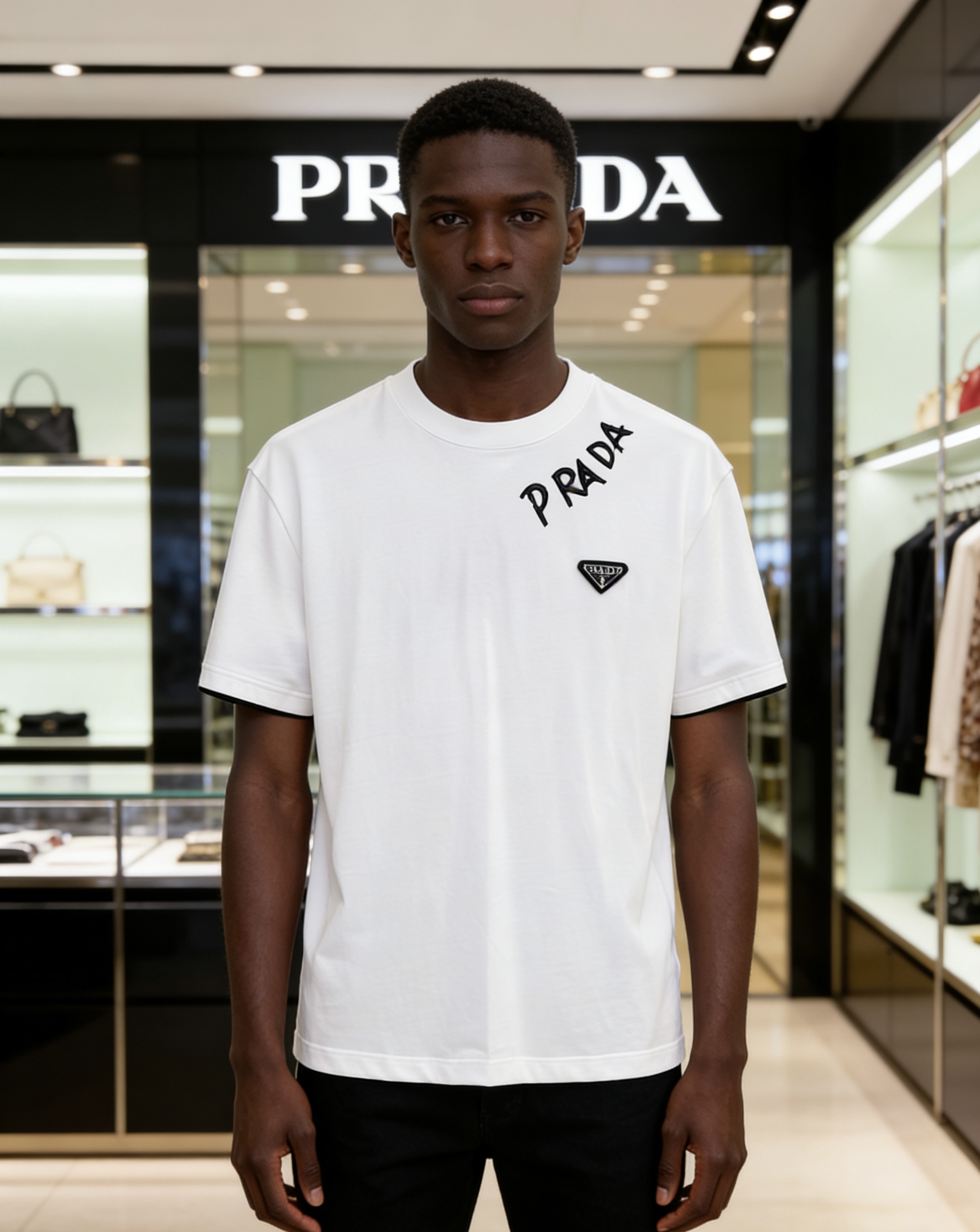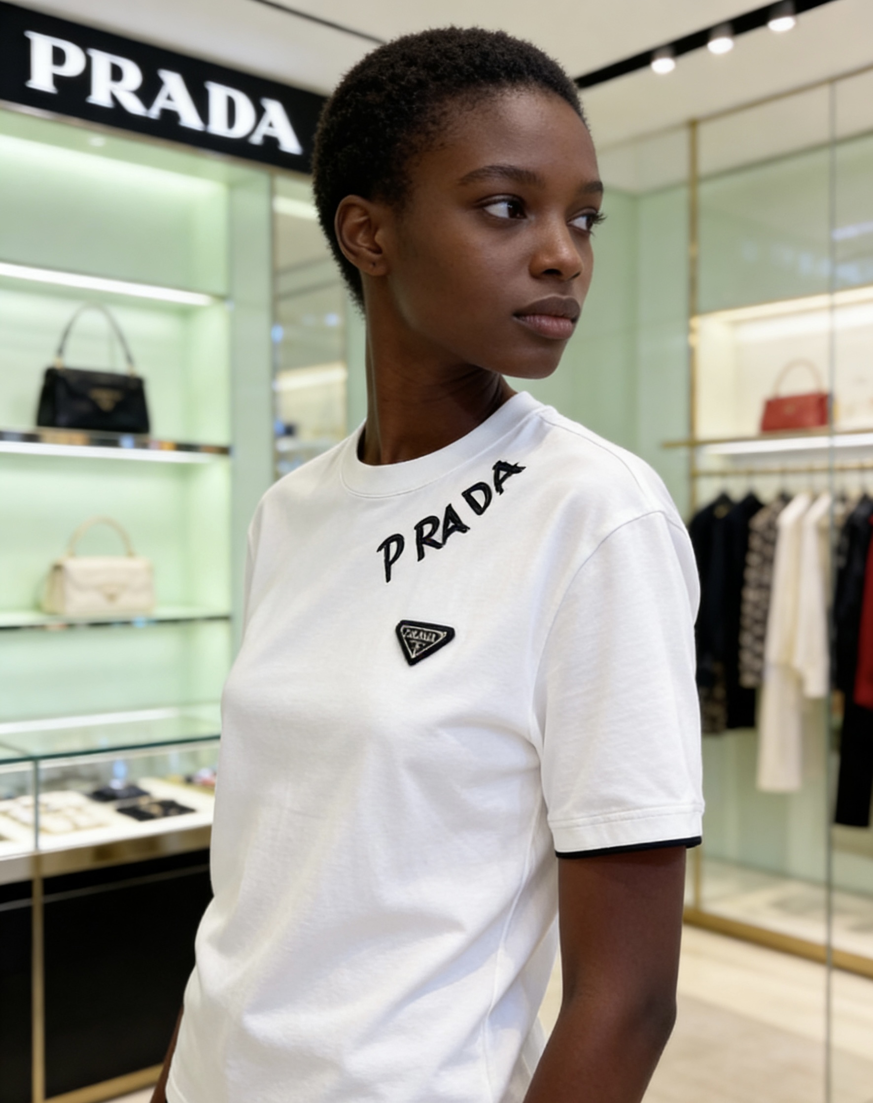 这款衣服是AAAAA 1:1 质量 (非常棒). 使用了和原版一模一样的材料. 商标部分也保持了和普拉达/Prada一样. 图片拍摄是实物衣服拍摄, 您所收到的实物保证和我们图片一模一样.